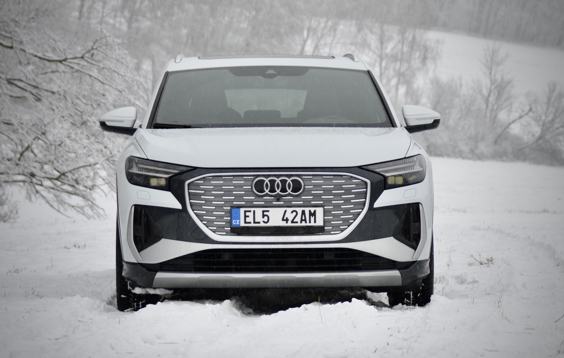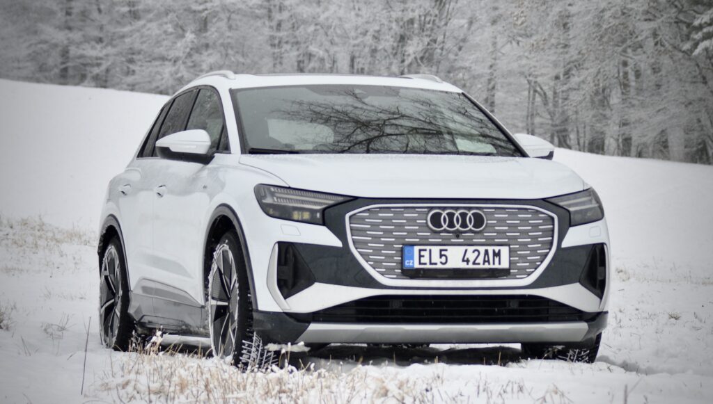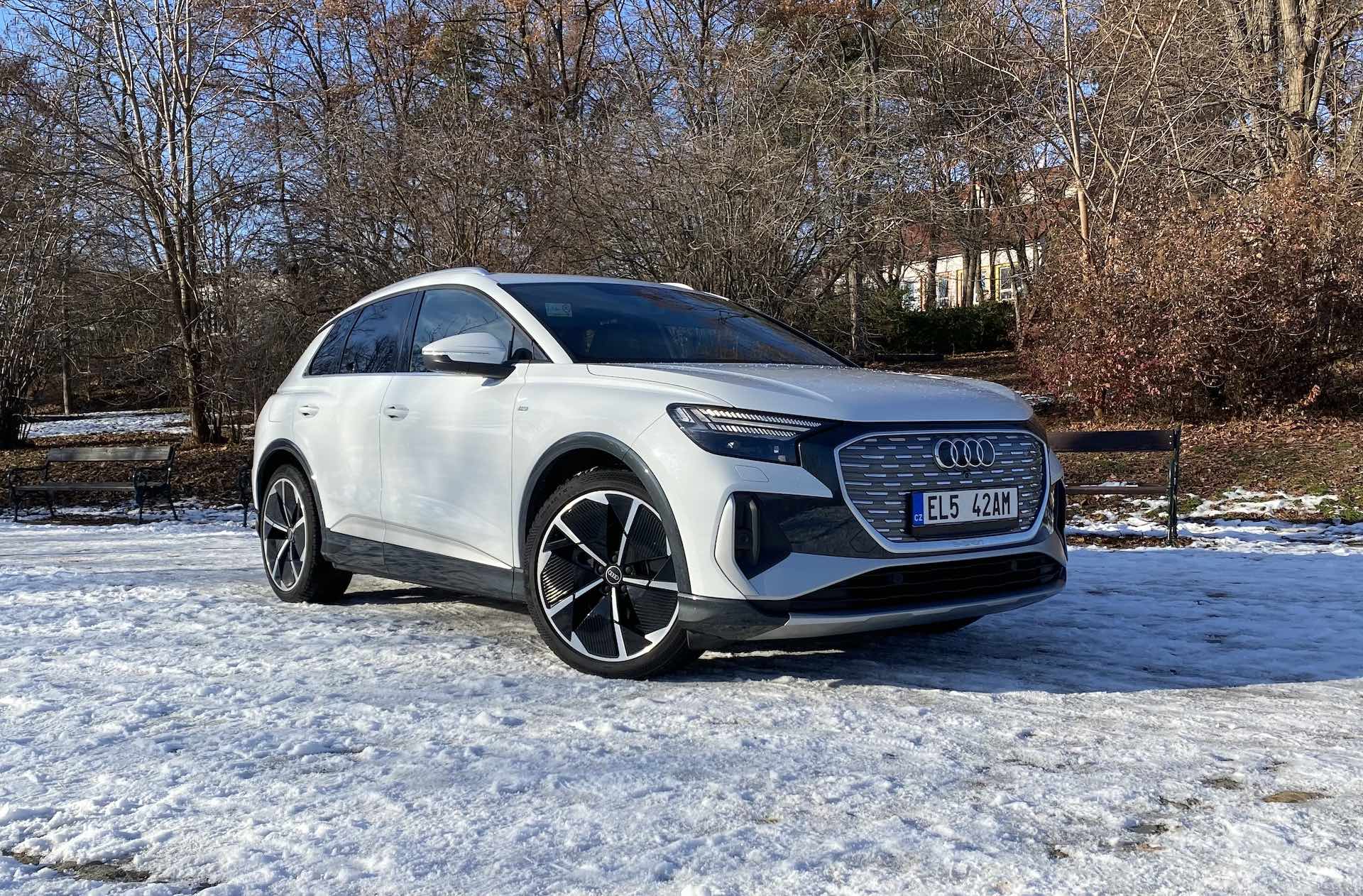Autor: Lukáš Jeřábek, Jan Novotný · Fotografie: Jan NovotnýMusím začít vysvětlením nadpisu, ale ještě před tím chci prozradit, že mě auto, o němž dnes bude řeč, velmi zaujalo. Troufnu si tvrdit, že v ideálních podmínkách bude možné jej hodnotit po všech stránkách jen a jen pozitivně. Proč zimní spánek? Protože BEV (neboli vůz poháněný čistě na elektřinu). V části s jízdními vlastnostmi se k tomu vrátíme, ale jak jistě všichni ví, jednou z největších překážek elektromobilů je jejich dojezd (a spotřeba) v zimním období. Vraťme se ale na začátek, kdy jsem si auto přebíral. Třeba hned loni jsem měl možnost jezdit v Enyaqu či novém IONIQu 5, dobu před tím pak i v dalších EV. Musím ale říci, že „náskok díky technice“ se dnes již projevuje jinak. Dříve to bylo primárně o hnacím ústrojí – že Audi dělalo neskutečně povedená auta po stránce řidičské, a to především díky povedeným motorům. Mohli jste si užít „záběr“ motoru, jeho celkový projev, zvuk apod. a poté jste se mohli spolehnout na vyladěné jízdní vlastnosti pramenící z práce na podvozku. Ano musím dodat, že si to Audi teď velmi vylepšila novou RS 3, která prý jezdí famózně. Teď se ale zřejmě domníváte, že budu Audi za elektromobily kritizovat. Jenže to v plánu nemám. V dnešní době se objevují modelu, které samozřejmě existovat musí, aby automobilka splnila emisní limity, naplnila svou korporátní odpovědnost a v neposlední řadě také prezentovala svůj „náskok díky technice.“ A to je přesně to, proč tu před námi dnes stojí další e-tron, Q4 50 e-tron. Pokud i vás zajímá, jaký „náskok“ Audi mezi elektromobily má, jak si stojí Q4 mezi moderními elektromobily a jak dobré je to auto jako celek, pak určitě pro příštích pár desítek řádků neodcházejte.