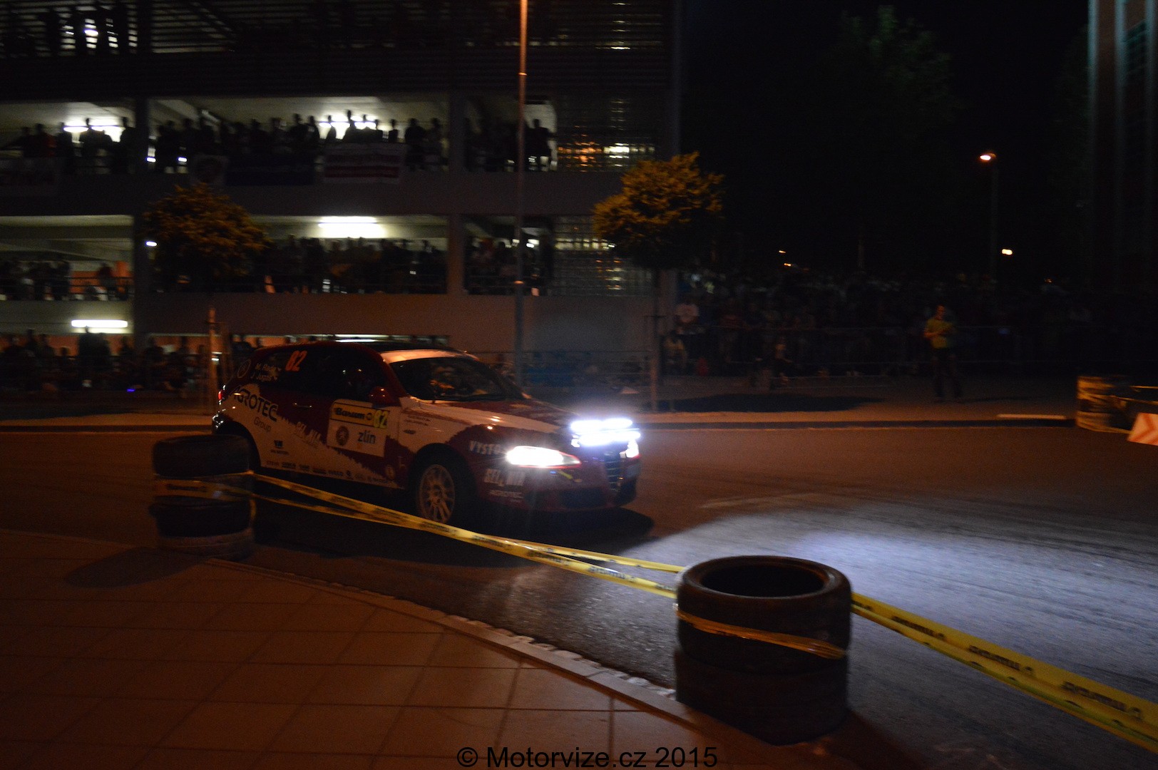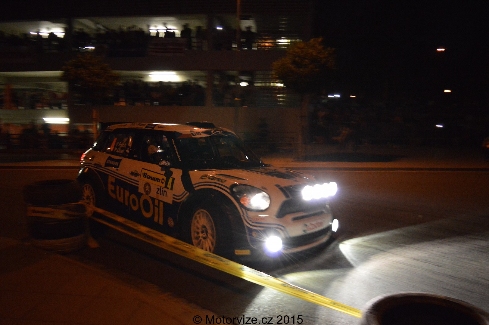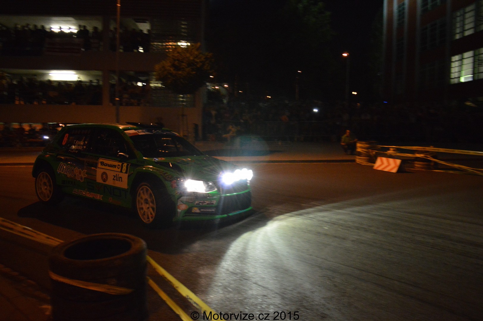 Ani při „zahájení“ nemůže být náš největší rally podnik nevýjimečný. Za oficiální začátek se dá považovat tzv. Shakedown neboli přejetí přes startovní rampu, zde se ale ani v nejmenším nejedná o závodění. Samotnému slavnostnímu ceremoniálu na zlínském Náměstí Míru předcházela kvalifikace. Na trati dlouhé bezmála pět kilometrů tak jezdci rozhodli o startovním pořadí do první etapy. Ostrý start nás pak čekal až v pozdně večerních hodinách přímo v prostorách bývalých Baťových závodů, kde se konala divácky jedna z nejatraktivnějších rychlostních zkoušek v celém světovém rally. Nevěříte? Zkusím své hodnocení odůvodnit. Vlastně celý „vtip“ divácké atraktivity je v atmosféře. Ta je tvořena denním i ročním obdobím, tedy krásného pozdě letního večeru, kdy je pořád poměrně teplo a ve tmě světla závodních vozů prostě dělají úplně jiný dojem než přes den. Atmosféra je umocněna přítomnými diváky. Těch bylo údajně na městské RZ přes 40 tisíc a celkově pak za celé tři dny přes 200 tisíc! A nejde jen o počet návštěvníků, jde obecně o přítomnost lidí, kteří jsou neuvěřitelně nadšeni celou událostí a vlastně s nadsázkou i celým městem, které již týden dopředu neřeší nic jiného. V poslední řadě náš dojem dotváří již zmíněný areál bývalých Baťových závodů, každý si jistě představí staré typicky cihlové budovy, ze kterých historie Zlína přímo srčí.