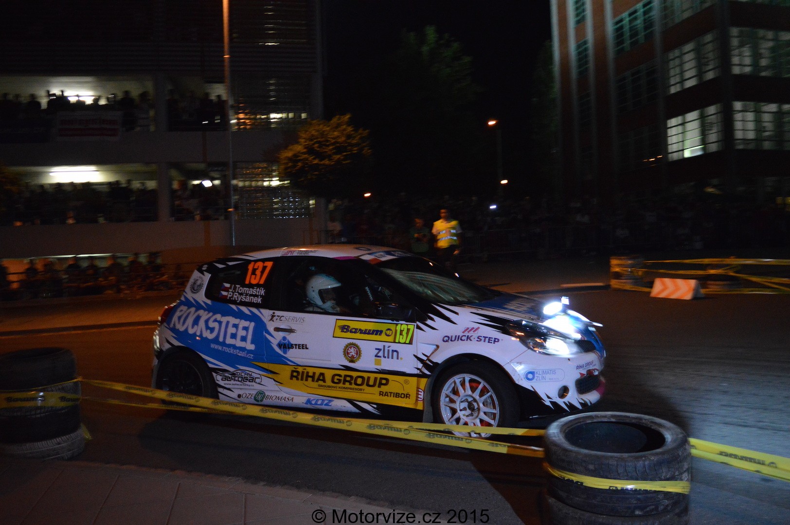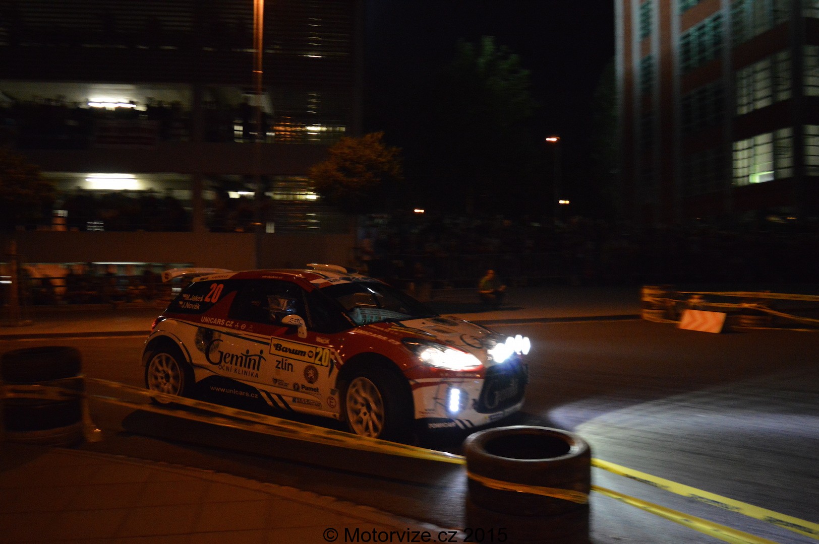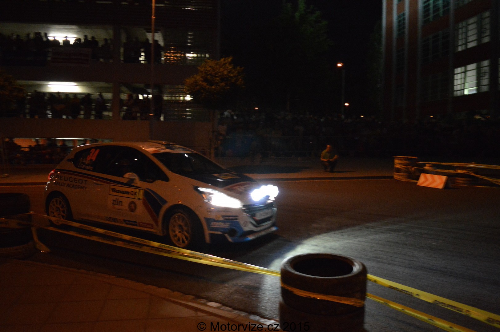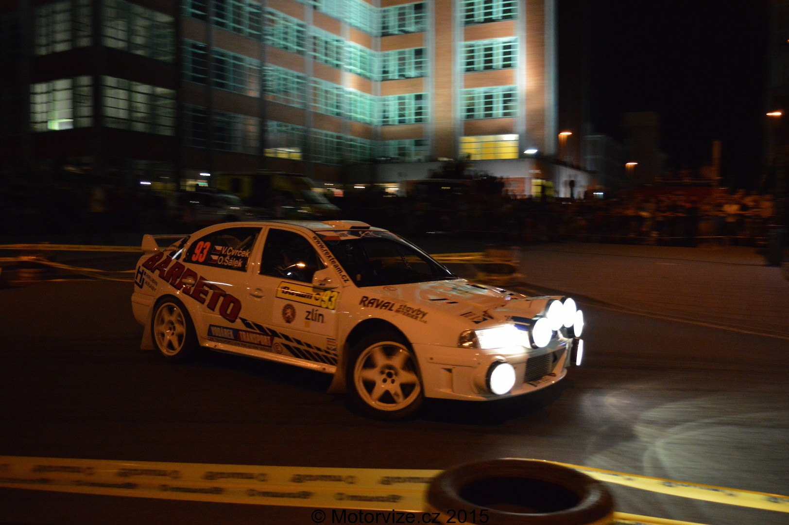 Ani při „zahájení“ nemůže být náš největší rally podnik nevýjimečný. Za oficiální začátek se dá považovat tzv. Shakedown neboli přejetí přes startovní rampu, zde se ale ani v nejmenším nejedná o závodění. Samotnému slavnostnímu ceremoniálu na zlínském Náměstí Míru předcházela kvalifikace. Na trati dlouhé bezmála pět kilometrů tak jezdci rozhodli o startovním pořadí do první etapy. Ostrý start nás pak čekal až v pozdně večerních hodinách přímo v prostorách bývalých Baťových závodů, kde se konala divácky jedna z nejatraktivnějších rychlostních zkoušek v celém světovém rally. Nevěříte? Zkusím své hodnocení odůvodnit. Vlastně celý „vtip“ divácké atraktivity je v atmosféře. Ta je tvořena denním i ročním obdobím, tedy krásného pozdě letního večeru, kdy je pořád poměrně teplo a ve tmě světla závodních vozů prostě dělají úplně jiný dojem než přes den. Atmosféra je umocněna přítomnými diváky. Těch bylo údajně na městské RZ přes 40 tisíc a celkově pak za celé tři dny přes 200 tisíc! A nejde jen o počet návštěvníků, jde obecně o přítomnost lidí, kteří jsou neuvěřitelně nadšeni celou událostí a vlastně s nadsázkou i celým městem, které již týden dopředu neřeší nic jiného. V poslední řadě náš dojem dotváří již zmíněný areál bývalých Baťových závodů, každý si jistě představí staré typicky cihlové budovy, ze kterých historie Zlína přímo srčí.