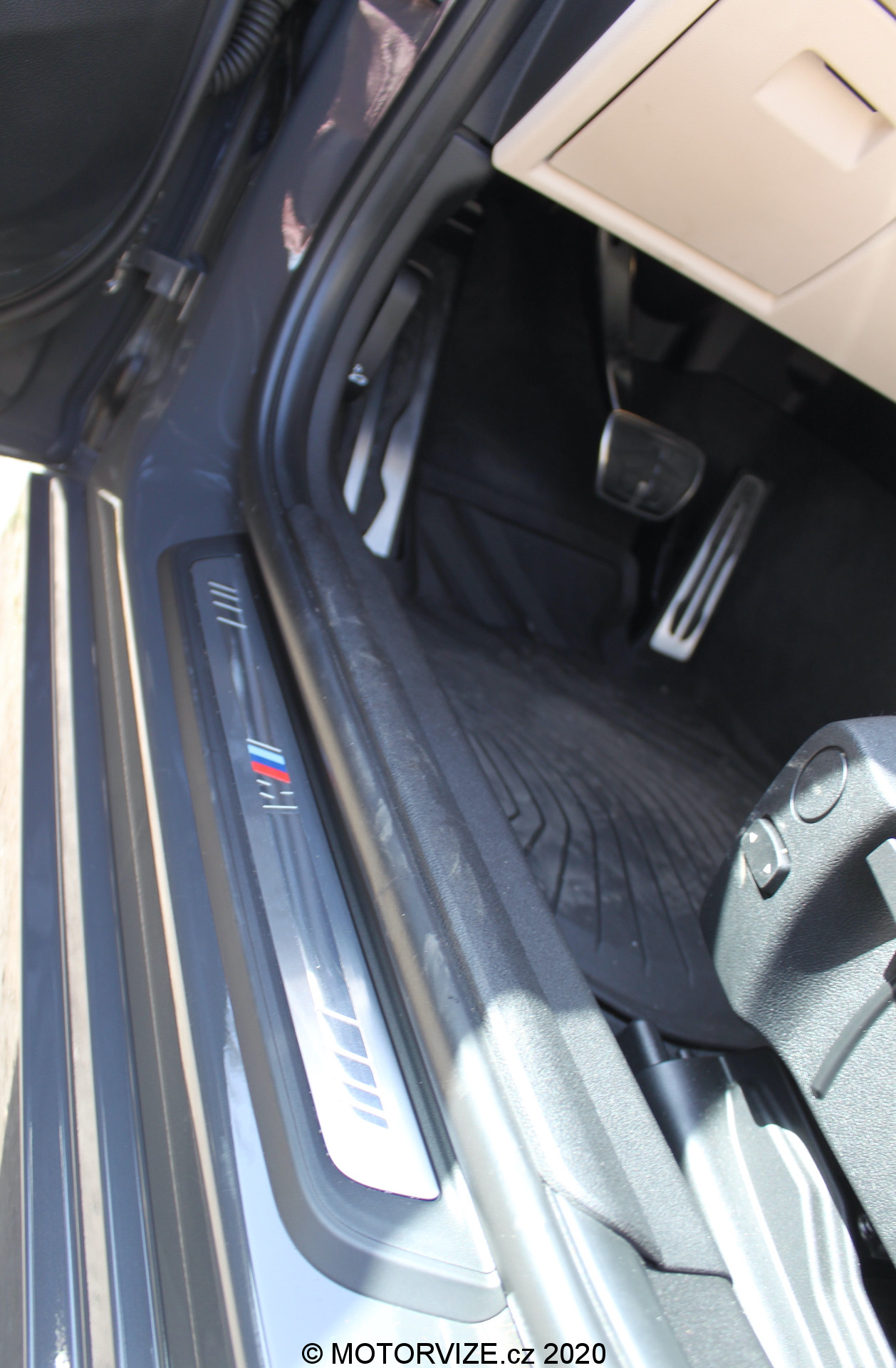 Oděn v šedém kabátku s lákavě černě lakovanými alu koly, která podtrhují naprosto bezchybnou kombinaci barev, stojí přede mnou vůbec poprvé testovaný exemplář. Na první pohled mne auto zaujalo hned několika body. U nedávného testování nové jedničky mne moc nezaujaly tzv. ledvinky, a proto jsem byla zvědavá, jak se s tímto poslední dobou velmi diskutovaným tématem páni vývojáři popasovali teď. K mému překvapení mi na nové trojce ledvinky sedí a v černé barvě skvěle doplňují agresivní předek auta. Zůstaneme-li u předku, další pozitivní bod vidím v LED světlometech, které již nemají klasický kulatý tvar, ale jsou směřována spíše do tvaru čtverce, díky čemuž pohled auta nabírá na přísnosti. Každému z nás je jasné, že jakmile má BMW M paket, je to hned jiné auto. Totéž platí i u nové trojky. Ačkoliv vypadá, že je při nejmenším v naší verzi velmi nízká a retardéry či vyšší chodníky budou problém, není tomu tak. Až jsem sama byla překvapena, kam všude se auto bezproblémově dostalo. V námi testované verzi si můžete všimnout označení ///M na boku auta a M Performance bočních lišt, které opticky zvětšují auto. I když se záď auta tolik nekasá originálností, stále ladí k jinak vyvedenému zbytku. Dojem pak dotváří sportovní černý difuzor s dvěma koncovkami výfuků, které jsou k poměrné robustnosti auta ideálně veliké, a tak není možné, že byste si jich nevšimli při prvním pohledu na zadek auta. Co si budeme povídat, za tímhle zadkem se nebudou otáčet jen chlapy, ale i ženský.