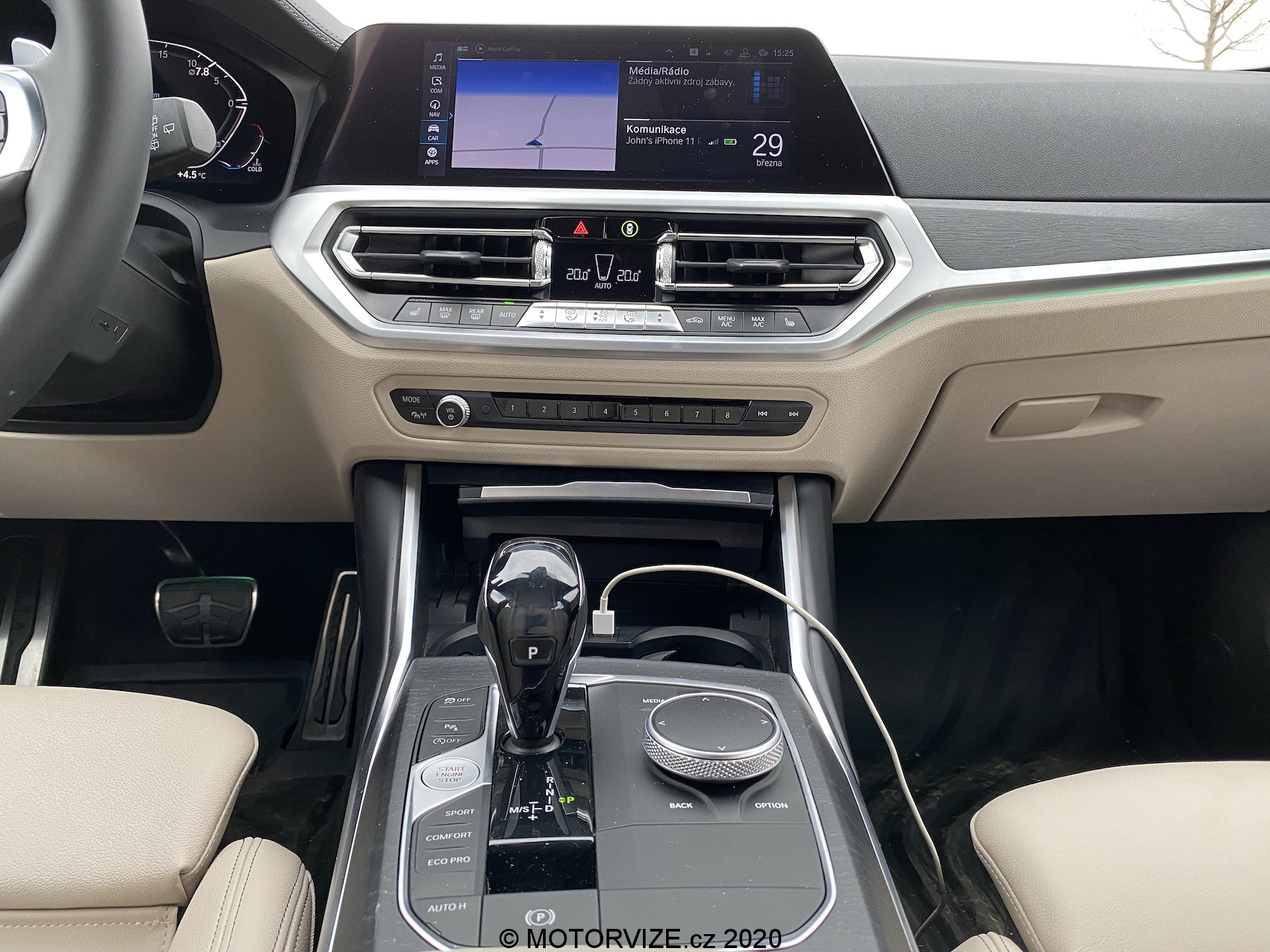 Jízda – kdyby mi někdo řekl, ať popíšu jízdu v nové trojce od BMW jedním slovem, bylo by to slovo ultramegaparáda. Ano, takový obrat v Češtině neexistuje, ale jistě jste pochopili, že pojezd s tímto mazlem byl naprosto parádní. Nebude pro vás asi žádným překvapením, když vám řeknu, že 80 % času jsem měla zapnutý sportovní režim. Toto auto ve mne evokuje hrozný adrenalin a i když jsem projížděla pomalu městem, ten sportovní režim tam prostě musel být. Díky poctivému třílitrovému šestiválci je lehké potřepání plynem pro svižnější jízdu naprosto dostačující a poslech vrnění šestiválce je pro mé uši sametový zvuk, a to drazí přátelé hovořím o dieselu. Jelikož jsem zvyklá na tvrdší auta, byla pro mne trojka podvozkově vyhovující a ani ne příliš tvrdá. Rozdíl podvozku napříč režimy jízdy nebyl příliš znatelný, charakter auta se ale například při skoku z režimu ECO PRO na SPORT změní prudce. Hnidopich by se mohl opírat právě do první ze zmíněných voleb, ale i jeho přítomnost záhy oceníte. Nemusíme chodit daleko, když chceme zjistit, jak že je to s tou čistou mobilitou tak, jak jí protlačuje legislativa EU. Přítomnost naftového šestiválce v moderním autě, jakým současné české auto roku jednoznačně je, tak lze považovat pomalu zázrak. I vzhledem k veškerým utlumením motoru – 190 kW sice vypadá skvěle, i tak ale kdesi v útrobách šlape filtr pevných částic i katalytická redukce s pomocí močoviny AdBlue či systém Start-Stop. To vše dohromady příliš nepřidává spotřebě. I ta je však spíše překvapením. Nebudu vám lhát, s využitím dynamiky, které je téměř vždy více než dostatek, a v režimu sport za 5 jezdit nebudete, já se nejčastěji pohybovala mezi 7 a 8 l/100 km. Na delších trasách se pak především díky dobře zpřevodované a skvěle fungující 8st. automatické převodovce od ZF dostanete ještě o kus níže, dle zkušeností kolegů i k hranici 6 l/100 km. To vše navíc platí i přes přítomnost pohonu všech čtyř kol, který ekonomice jízdy taktéž příliš nedodá. Ačkoliv jsem zastánkyní klasické koncepce BMW (motor vpředu, náhon vzadu), xDrive mi tady vůbec nevadí. Jak bývá zvykem, preferován je náhon zadní nápravy a při rychlejší jízdě tak potěší pocit, jako kdyby byl vůz vyloženě tlačen ven ze zatáčky a nikoliv tažen. Díky xDrive tak bylo každé projetí zatáčkou jako krájení měkkého másla. Základem příjemného svezení je podvozek a ten bez pochyb BMW odladit umí. Konkrétně v naší verzi jde o naprosto ideální kompromis mezi komfortním a dynamickým naladěním. Na BMW s prvky M Performance bych asi i čekala vyšší než-li 18“ kola, i ta ale na autě vypadají skvěle a právě díky rozumné velikosti auto dokáže skvěle tlumit nerovnosti a zároveň umožní i ostřejší průjezdy. Líbí se mi i lehkost, s jakou se do zatáček nová trojka vrhá. Ač řídím verzi Touring (rodinné kombi), auto se vůbec nekroutí a stačí jen zvolit režim SPORT+ či vypnout trakci a trojka ochotně za to velmi jemně ukáže, kam je primárně směřován výkon – na zadek. Slovy laika, i s tímhle „rodinným vozem“ se dá lehce sklouznout, což potěší nejednoho z nás. Možná bychom se mohli pustit do diskuze, do jaké míry je dnešní BMW tím ortodoxním výrobcem aut pro radost, jakými ještě před lety bývalo. Zmínit bychom mohli třeba 2 Active Tourer, možná i většinu modelů s písmenem X, elektrické nebo plug-in hybridní vozy, či novou řadu 1, která přechází na platformu s předním náhonem. Pokud by se mě ale někdo zeptal, jak má vypadat novodobá radost z jízdy, odpověď by zněla naprosto jednoznačně – tak jako v novém BMW řady 3.