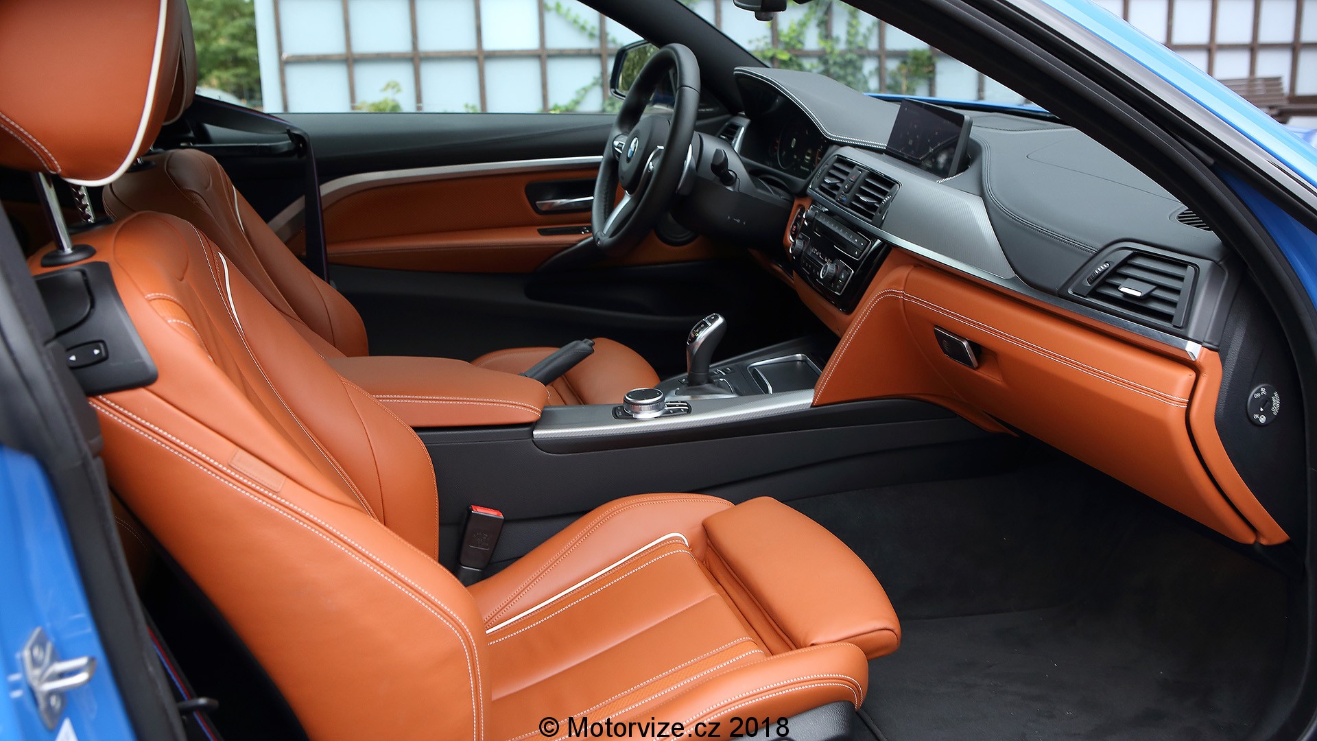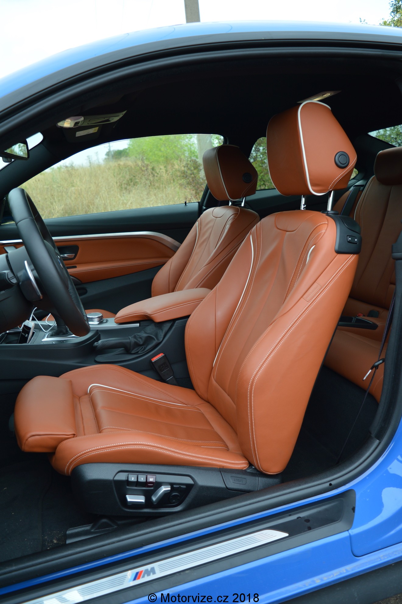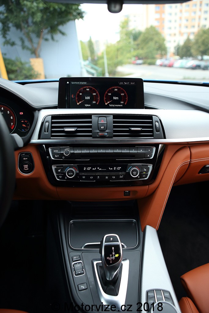 Uvnitř vás na první dobrou upoutá barva interiéru – světle hnědá v kombinaci s černou. Přiznám se, že pro sportovně laděný vůz bych čekal spíše celočerný interiér. Nicméně stejně jako u venkovního laku zde najdeme jakési spojení asociací. Světle hnědé sportovní sedačky s jemným prošíváním bílou nití svou barvou připomínají koňské sedlo… Snad proto, abyste při krocení divokého stáda 360 koní měli ten správný pocit. Důležitější ale je, že do sedačky zapadnete jakoby vaše tělo bylo vzorem. A kdyby ne, je možné boční vedení stejně jako bederní opěrku pneumaticky upravit. Nechybí samozřejmě ani paměť pro nastavení. Příjemným doplňkem, který dodnes nabízí BMW jako vůbec jediná automobilka, je individuální nastavení teploty výdechů klimatizace ve středovém panelu.