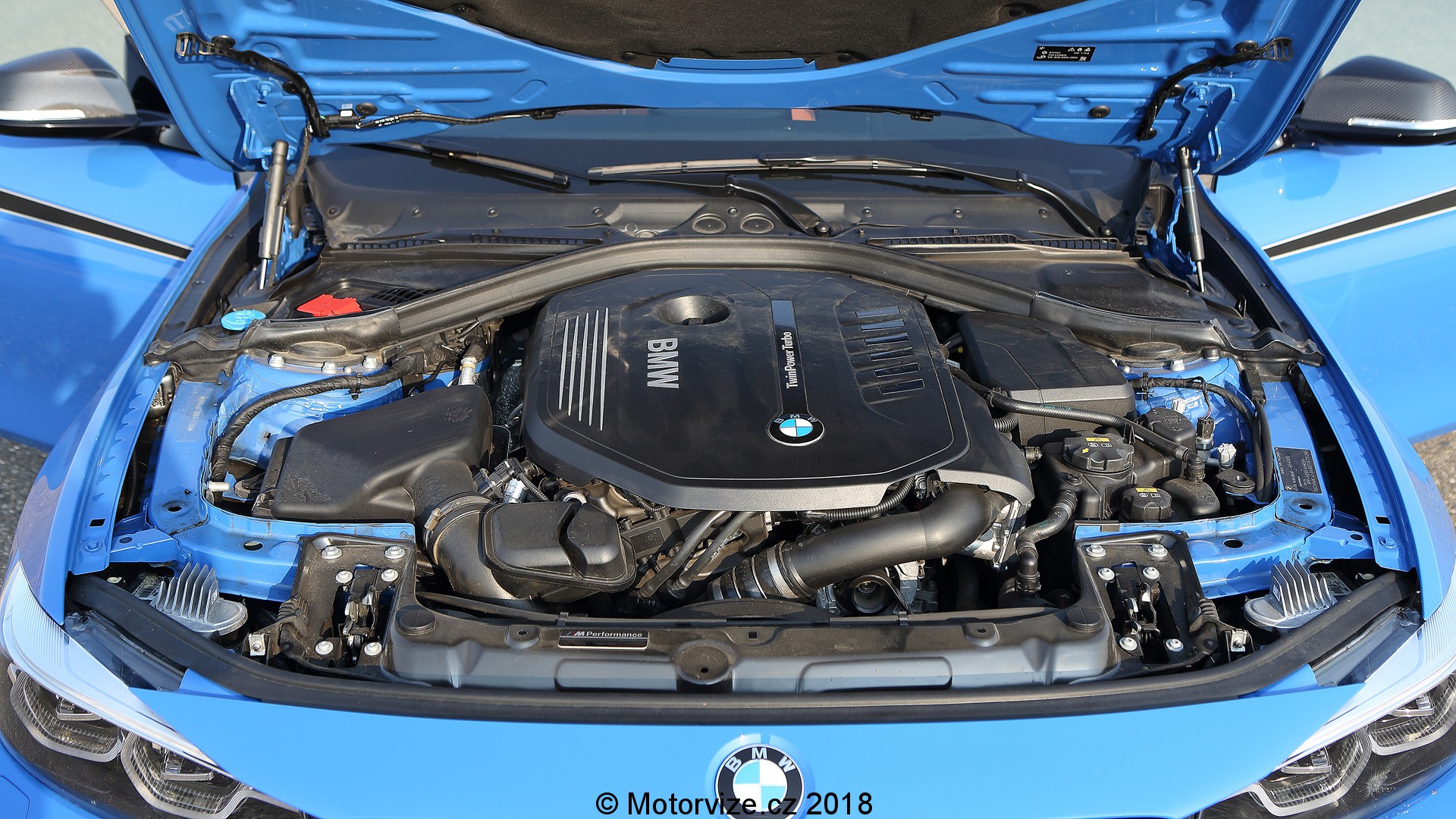 Siluetu tohoto elegána krásně podtrhuje zvolená barva, kterou ve fabrice pojmenovali Santorini Blue a opravdu připomíná barvu Středozemního moře kolem proslulého řeckého ostrova. Chybí jen tradiční bílé střechy kostelíků. Až agresivní je vizáž předního nárazníku, který doplňuje karbonový spoiler, na nějž budete myslet pokaždé, při přejíždění zvýšených přechodů pro chodce nebo v naší zemi četných příčných prahů. Při pohledu z boku nelze přehlédnout černá devatenáctipalcová kola. I když se u takových aut výrobci i zákazníci kloní k větším kolům, zvolený rozměr perfektně spojuje stabilitu, vedení v zatáčkách a zároveň komfortní pocit z jízdy. Jednoduše řečeno nevytřesou z vás duši. Nechybí zde ani tradiční výdechy v blatníku a typické znaky M nad nimi. Pohled zezadu upoutá difuzor s dvěma koncovkami výfuku nebo pozměněná grafika zadních lamp. Své samozřejmě hrají i přední světlomety, tady samozřejmě s technologií FULL LED Matrix, o nich ale až za chvíli.