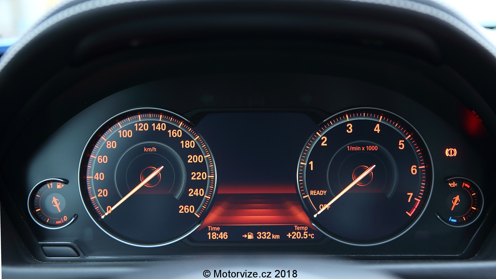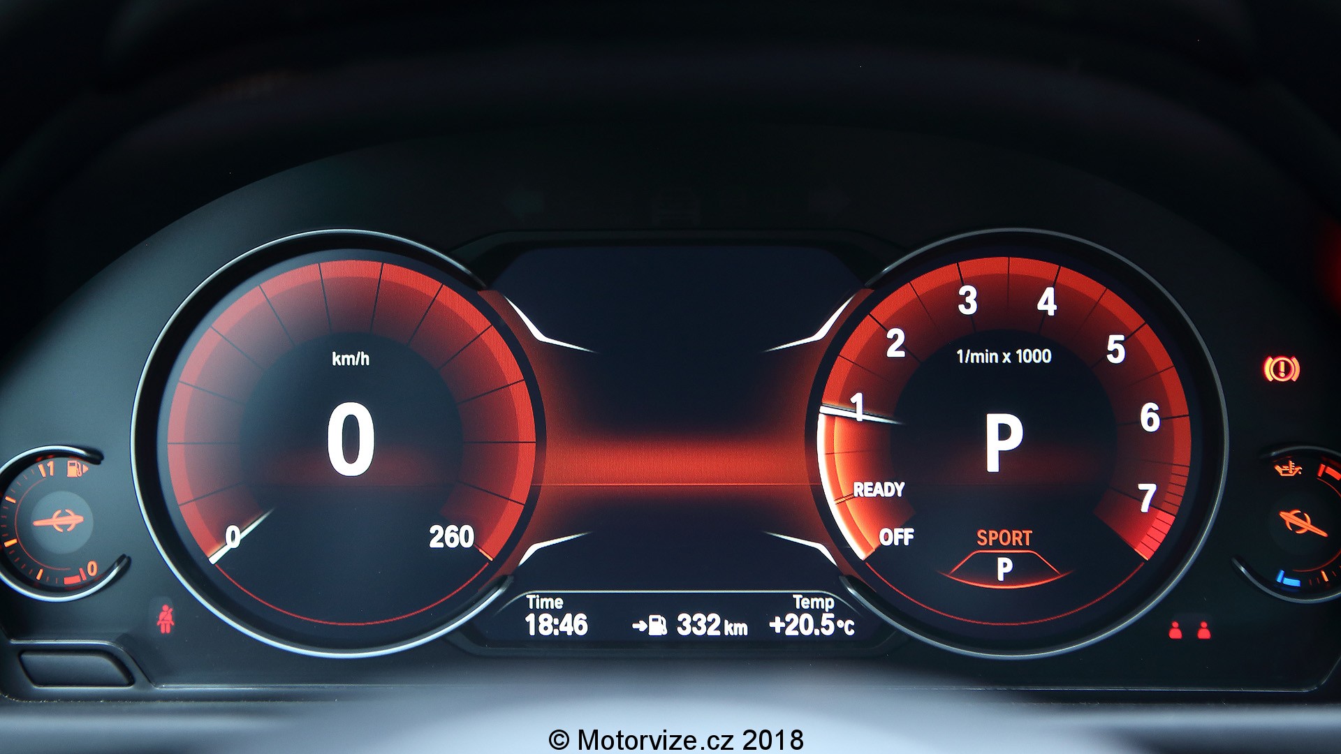 Ergonomii lze málo co vytknout. Vše je tam, kde má být. Ovládání asistenčních systémů je ovšem stejně jako například hlídání jízdy v pruzích nebo hlídání mrtvého úhlu zpětných zrcátek umístěno kdesi vlevo dole pod ovladačem světlometů. Stejné umístění měl i nedávno testovaný Jaguar E pace. Infotainmentu je možné podávat informace prostřednictvím joysticku, který je umístěn ve středovém panelu u opěrky nebo přes dotykový displej. Ten je ale bohužel umístěn relativně daleko a řidič se k němu musí předklonit a hodně natáhnout ruku, aby na něj dosáhl. Dá se předpokládat, že konstruktéři počítají spíše s ovládáním přes již zaběhlý a léty odzkoušený otočný ovladač iDrive doplněný o možnost psaní písmen v případě potřeby na dotykovou plochu zeshora. Luxus interiéru doplňuje obšití kůži nebo třeba jemné modro červené prošití bezpečnostních pásů. Dokonale vám do ruky padne také eMkový volant s přiměřeně objemným věncem. Nechybí head-up displej, který se promítá přímo na čelní sklo, čili žádný štítek v palubní desce. Co musím pochválit, to jsou adaptivní LED Matrix světla. Při jízdě v noci fungují perfektně. Jednotlivé segmenty se zapínají a vypínají tak, aby neoslňovaly ostatní. Citlivost a rychlost odezvy je mnohem přesnější než u konkurenčních obdobných řešení. Samostatnou kapitolou je pak jejich svítivosti, intenzita a s tím spojený maximální dosvit, troufl bych si jej označit za opravdu dechberoucí.