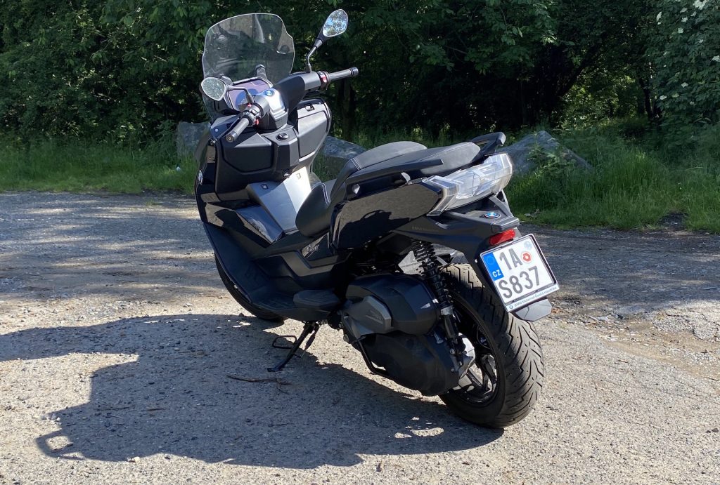 Z mého poměrně rozsáhlého povídání k představení C 400 GT by se mohlo zdát, že snad považuji jízdní vlastnosti za vedlejší vlastnost skútru. Z části by to byla pravda, neboť u městského jednostopého vozítka považuji za důležitou především jednu schopnost – mrštnost (pro městský provoz). Testovat skútr je tak možná trochu nevděčná činnost, nemáte totiž možnost vypsat tisíce slov o jízdním projevu tak, jak je tomu u řidičsky zaměřených strojů zvykem. Zpět ale k dnes testovanému stroji. Nebudu zastírat, že mě BMW tentokrát poměrně zaskočilo. Připravilo opravdu plnohodnotný stroj, a to se vším dobrým i zlým. Kdo mě zná, ví, že ani na skútr nesednu bez patřičné výbavy – páteřáku, solidní helmy a motorkářské bundy. Ačkoliv u některých menších skútrů bych váhal a snažil přemluvit sám sebe v zapomnění alespoň části výbavy (třeba bundy nebo rukavic), tady jsem byl za svou opatrnost opravdu rád. Hned po prvním rozjezdu zjišťuji, že překračovat rychlostní limity není vůbec těžké. A co víc. Vzhledem k chybějící nutnosti řazení je to nesmírně jednoduché. V městském provozu tak C 400 uhání opravdu parádně. To vše ale jen do té doby, než dojde na kolony. Zbystřím a začínám přemýšlet, jestli „to mohu pustit“ mezi dvě auta. Teď čekáte velké ale a ono tak úplně nepřichází. Pravda, bojím se, neboť část českých řidičů osobních aut na průjezdy motorek není úplně zvyklá a skulinky mezi nimi jsou tak pro tohle BMW kolikrát opravdu moc malé. Když pak jednou zkouším dálnici, během mžiku se dostávám na limitních 130 a cítím, že má tenhle stroj chuť pokračovat dále. Pak, když zastavím doma, usadím se a chvilku přemýšlím, na čem to vlastně jezdím a tady se vlastně bere myšlenka prezentovaná v nadpise. Byť jde o skútr, jehož řízení je stále poměrně jednoduché a v zásadě i velmi příjemné, je potřeba se mít hodně na pozoru. Velcí motorkáři často namítají něco ve stylu „skútrismus je nemoc.“ Ač tuhle nemoc chápu úplně maximálně, nejsem si jist, zda si její definici zkušení motorkáři představovali právě tak, jako zástupci BMW. A já tak jen začínám nahlas přemýšlet, jestli bych radši místo velkého skútru nechtěl malého cesťáka.