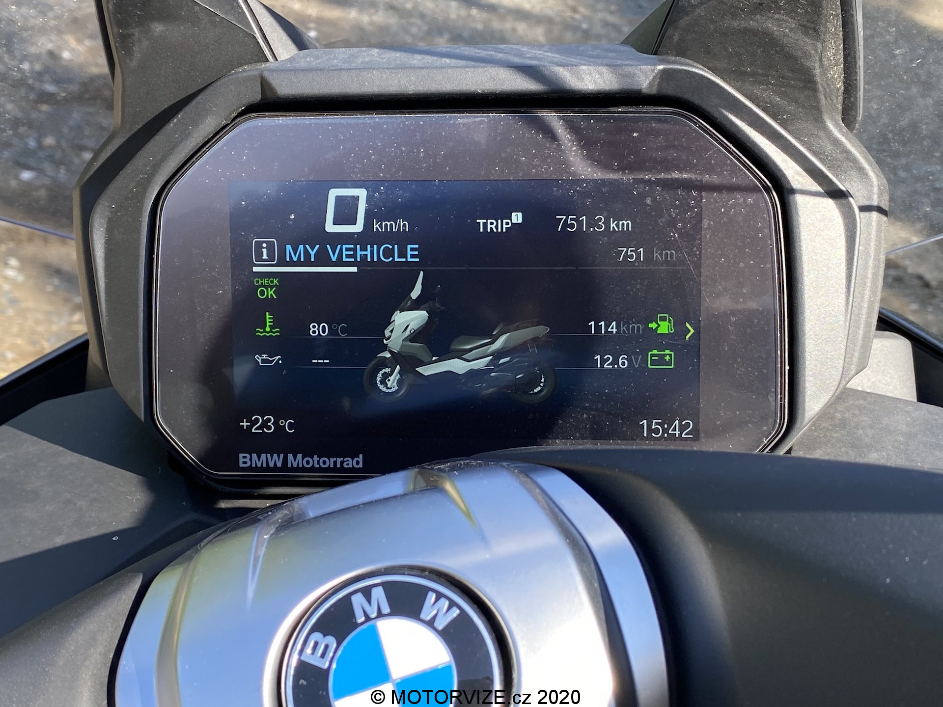 Když se mi nechtělo rozepisovat o tom, jak vypadá „céčtyřstovka“ zezadu a z boku, rozhodl jsem se svůj čas věnovat naopak praktické stránce – tedy výbavě určené ke každodennímu zpříjemnění života majitele. Začnu asi tím nejdůležitějším. Naznačil jsem, že jde o poměrně velký stroj, a to platí úplně na 100 % v dobrém i zlém. V tom dobrém lze pochválit dostatek prostoru i komfortu všemi směry. Skoro bych řekl, že se za sebe vejdou nejen dva urostlí dospělí, ale skoro i celá rodina (což samozřejmě není dovoleno). Příjemně potěší i vyvýšené sedlo pro spolujezdce, který tak má nejen dostatek místa, ale i široký rozhled. A teď přichází objev století (alespoň pro mě). To, že mají skútry poměrně objemné úložné prostory schované právě pod sedlem, je obecně známo. To, že jich má BMW opravdu přehršle, nikoho asi jen tak nepřekvapí. Mě osobně ale úplně uchvátila inovace přezdívaná „Flexcase“. Právě pod spolujezdcem se totiž schovává místo pro uložení mé helmy. Stačí jen vysunout jakýsi vak směrem dolů (skoro až k zadnímu kolu) a přilba takřka jakékoliv velikosti je uložena. A objem úložného prostoru asi ani nemusím nějak podrobněji definovat – pod sedlo jsem zkrátka vždy dostal vše, co jsem potřeboval. Praktické jsou i schránky před řidičem, obě dvě jsou rozumně velké a hlavně zamykatelné. Do této chvíle nejde o nic výjimečného (úložný prostor má každá motorka), zastavil bych se na chvilku ale právě u zamykání, to totiž probíhá výhradně bezklíčově. Skoro bych si dovolil použít známou filmovou hlášku „Rozmohl se nám tady takový nešvar.“ Mít klíčky v kapse a nestarat se o ně ani při startování ani při zamykání / otevírání schránek, to je řekl bych skoro snová představa už v autě. U motorek to ale platí hned dvojnásob, neboť právě na ně povětšinou nasedáme s řadou bezpečnostních doplňků, které komfort jinak spíše snižují a nutnost hledání klíčků či jejich obsluhy v rukavicích není zrovna nejpříjemnější. To vše (pozitivní) platí ale snad jen do té doby, než zjistíte, že si se systémem prostě nerozumíte. Přiznejme si, že je jeho obsluha u motorek poněkud náročnější než u aut, kde stačí jen zatáhnout za kliku nebo zmáčknout tlačítko na startování. Po čase třeba zjistíte, že odemknout přihrádku lze jen s polohou zapalování „ON“ (logicky nestačí, že mám klíčky v kapse, musím se k motorce ještě „autorizovat“), což pro změnu není kompatibilní se zamknutými řídítky. To vše alespoň u mě vyústí v zuřivost na benzínce, kde se horlivě snažím dostat do nádrže. Ta samozřejmě nemá zámek, do něhož by se musel strkat klíček. Přijíždím na benzínku, zhasínám motor a tahám za krytku víčka, pomocí níž bych se měl dostat do nádrže. Marně. Motorku několikrát vypínám, zapínám, zkouším všemožné kombinace a nic… Ptáte se, jak tenhle příběh může skončit? Jednoduše, tady se k odemknutí dostanete právě ve chvíli, kdy je vše vypnuté (a naopak nejsou zamčená řídítka). Je to jednoduché? Nemyslím si. Na druhou stranu jde v každém případě o inovaci, na níž je potřeba si zvyknout a věřím, že si zvyknete. Já osobně jsem však v rozpacích, zda neupřednostnit osvědčený systém startování / odemykání s klíčkem. A podobné názory mám i ke kompletně digitálním budíkům. Jejich ovládání probíhá pomocí několika tlačítek u levé rukojeti. Animace, pomocí níž vás BMW vítá, napovídá, že jste si opravdu koupili prémiový stroj. Vypadá efektně a dodává pocit luxusu. V zásadě jsem ale po týdnu používání z obrazovky nedostal nic více, než v případě klasických budíků s jedním displejem zobrazujícím aktuální data o jízdě. Shodou okolností jsem třeba nepřišel ani na to, jak se nuluje počítadlo kilometrů / aktuální spotřeby. Určitě to jde, ale chce se v dnešní době novému majiteli pečlivě číst manuál? Mně osobně by se nechtělo… I tak ale BMW nabízí ve výbavě prvky, které stojí za povšimnutí a ocenění. Zmínit musím vyhřívané sedlo a vyhřívané rukojeti – efektní, působivé a funkční. Po praktické stránce oceňuji už jednou zmíněné LED světlomety, které svítí opravdu skvěle – do dálky a hlavně v širokém rozptylu, což ještě před pár lety nebylo u motorek běžné. Klobouk dolů. Tady se inovace potkaly s úspěchem. Po stránce výbavy tak nová C 400 nabízí v podstatě vše, co si u motorky dokážete jen představit. Občas však intuitivita pokulhává a já jen doufám, že příští generace nebo modelový rok posune uživatelskou přívětivost na o trochu vyšší level.