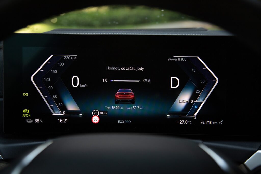 No,tak už tenhle nadpis je pro mě trochu nezvyk – co k tomu vlastně napsat? BMW i4 je k dispozici ve třech výkonových variantách a mezi nimi je možné zvolit i pohon všech kol. i4 eDrive35 je tedy základní verzí, která zároveň nabízí i pohon pouze zadní nápravy. To mi „chutná“, a tak jsem byl velmi zvědavý, jak se bude tohle elektrické BMW chovat v provozu. 210 kW, nebo chcete-li 286 koní se zdá ve světě elektromobilů jako relativně málo. Reálně je to však naprosto vyhovující výkon a osobně bych neměl potřebu pokukovat po výkonnějších modelech, což ještě rozvedu. V každém případě pro mnoho lidí je blokem v hlavě při uvažování o elektromobilech údaj o dojezdu, který u tohoto testovaného vozu činí 483 kilometrů podle WLTP. Jaká je ale realita? Realita je taková, že jsem se k autu nechoval nutně jako k elektromobilu, a i tak jsem dosáhl na průměrnou spotřebu 18,5 kWh/100 km. Pohyboval jsem se většinou ve městě, ale také jsem ho občas zrovna nešetřil. Jednoduchá matematika tedy říká, že bych na jedno nabití bez obtíží ujel okolo 350 km, a to už osobně považuji za naprosto dostatečný dojezd běžnou cestovní rychlostí. Udávaný maximální nabíjecí výkon je 180 kW – což je jednoduše dostatečně rychlé. V našich končinách jsou zatím asi nejobvyklejší nabíjecí stojany s výkonem 50 – 75 kW, ale okolo dálnic už není problém nabíjet i 150 kW. O každodenní použitelnosti i4 tedy opravdu nemám pochyb, i když stále trvám na tom, že pro komfort, na který jsme zvyklí ze spalovacích motorů, je nutné mít vlastní dům a domácí nabíjení. Pak už v takhle funkčním elektromobilu nevidím problém, i když osobně bych si ho stále nevybral.