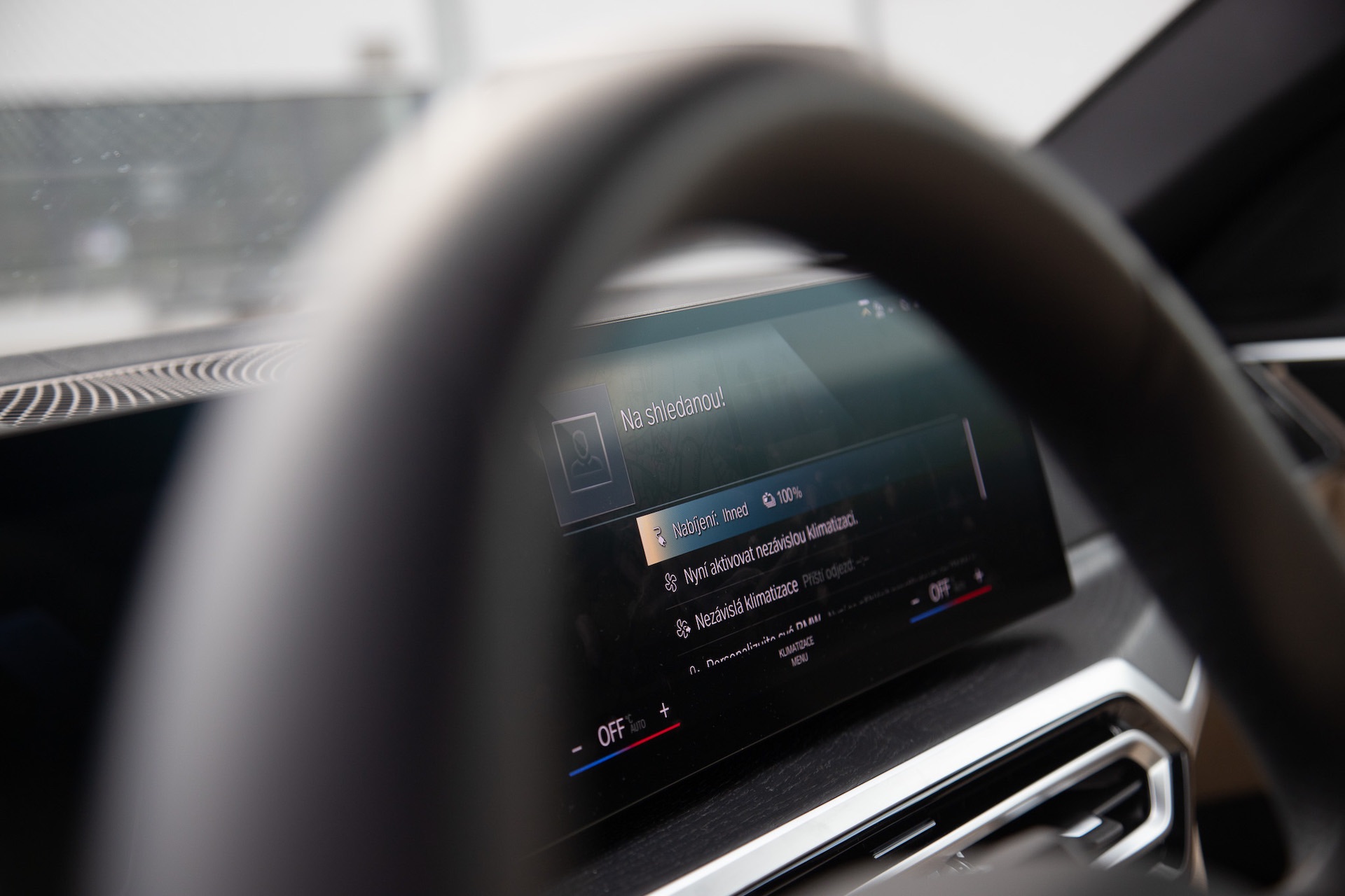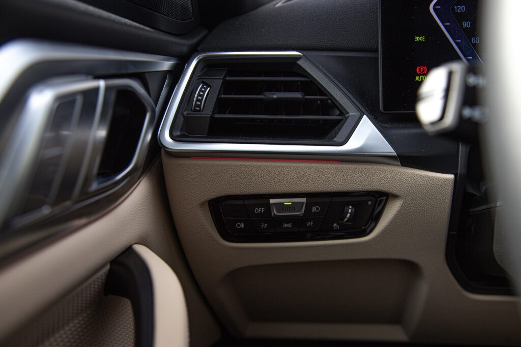 Výbava i4 je přesně taková, jakou u BMW očekáváte. Bavíme se o elektrifikovaném modelu současné 4 GC, takže naprosto současného vozu. Shrnu to tedy v bodech, jen pro pořádek. Více zónová klimatizace, adaptivní tempomat včetně asistované jízdy v pruzích. Reálně dokáže zastavit a znovu se pak aktivuje při rozjezdu. V BMW i4 funguje pěkně a tunel Blanka projedu v podstatě bez zásahu do řízení za předpokladum že mám ruce na volantu, i4 celou cestu vyřeší bez mých zásahů – tedy za mě funguje dobře. Vyhřívaná a odvětrávaná přední sedadla, vyhřívaný volant, prémiové audio a infotainment plnou mobilní konektivitou, a to včetně Apple Car Play a Android Auto – bezdrátově. Bezklíčový přístup a startování, aplikace k autu… Je zde prostě vše, co moderní zákazník od prémiového vozu očekává.