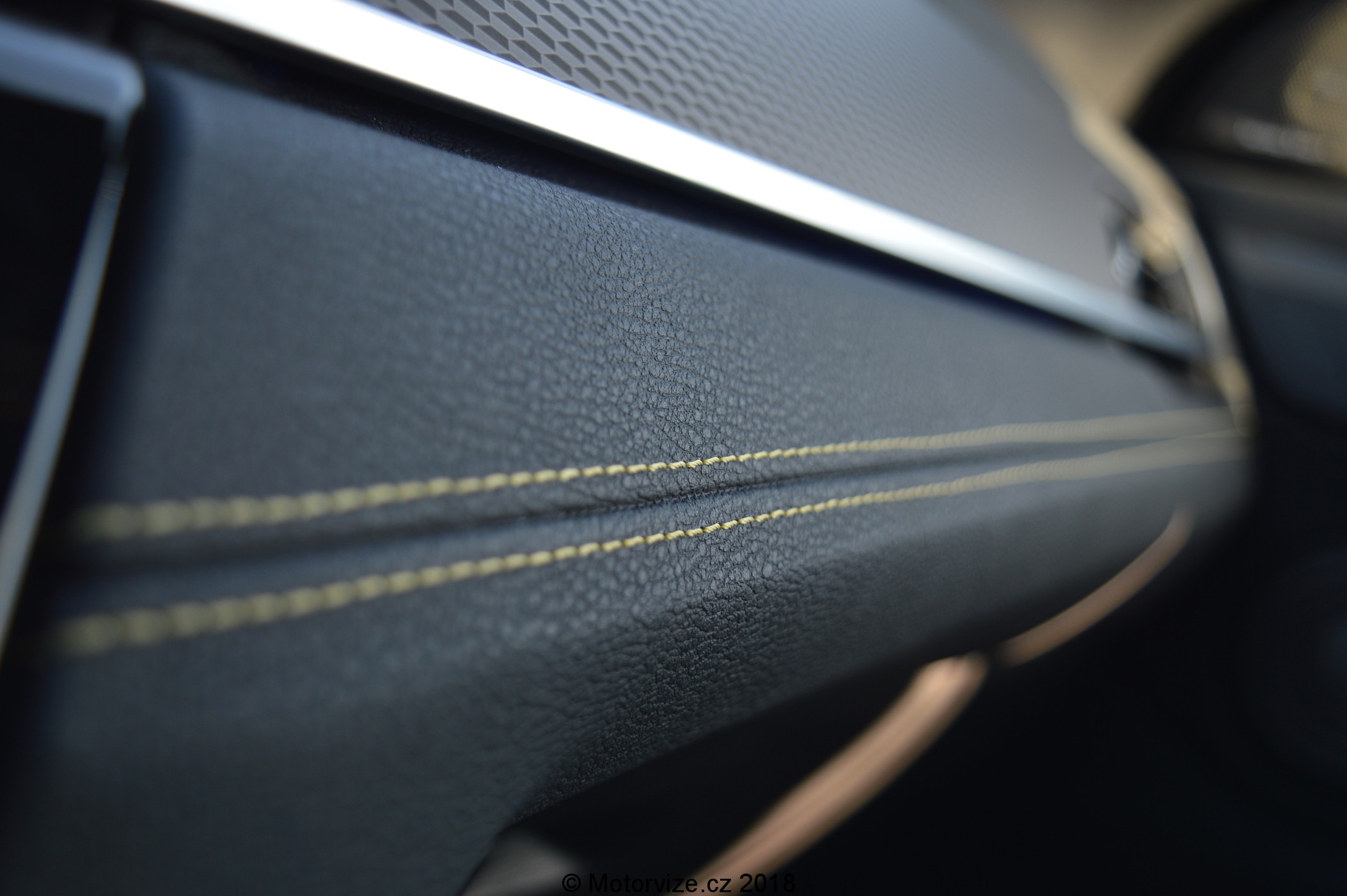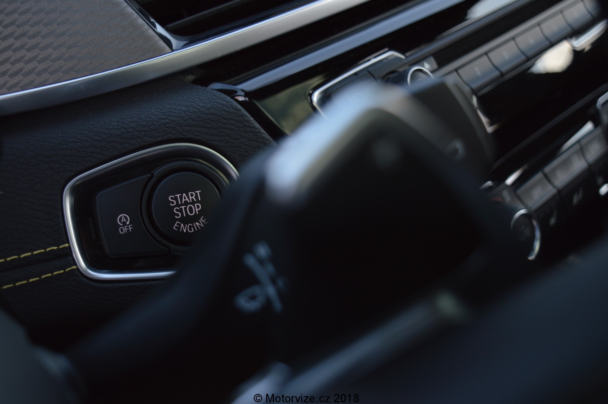 Z interiéru je znát, že tento model cílí celkově na mladší klientelu. Dostupné jsou různé barevné varianty kůže a i pokud zůstanete při zemi a zvolíte černou, můžete mít i prošívání v barvě karoserie, a to kromě sedadel, take koberečků a dveří i na palubní desce. Možností individualizace dle vkusu je hodně, a to včetně barevně nastavitelného ambientního osvětlení. Ani použitým materiálům není co vytknout – plasty jsou měkčené a kvalitně zpracované. Hezký a zároveň funkční je i volant, který díky tlustšímu věnci pěkně sedí do ruky a umožňuje intuitivně ovládat funkce vozu, kde je vše domyšleno do detailu – třeba rychlost na tempomatu lze přidávat ve dvou úrovních, tedy o 1km/h i o 10km/h a mohl bych pokračovat dále. Co mi do jinak moderně zpracovaného interiéru úplně nesedí je řadící páka automatu, jež trochu působí jak z jiné dekády i segmentu, což je nejspíše daň za dvouspojkovou převodovku místo klasického ZF s hydrodynamickým měničem. Celkem úsměvně také působí v interiéru CD mechanika jakožto příplatková výbava, na druhou stranu je to zajímavý designový prvek – proč ne.