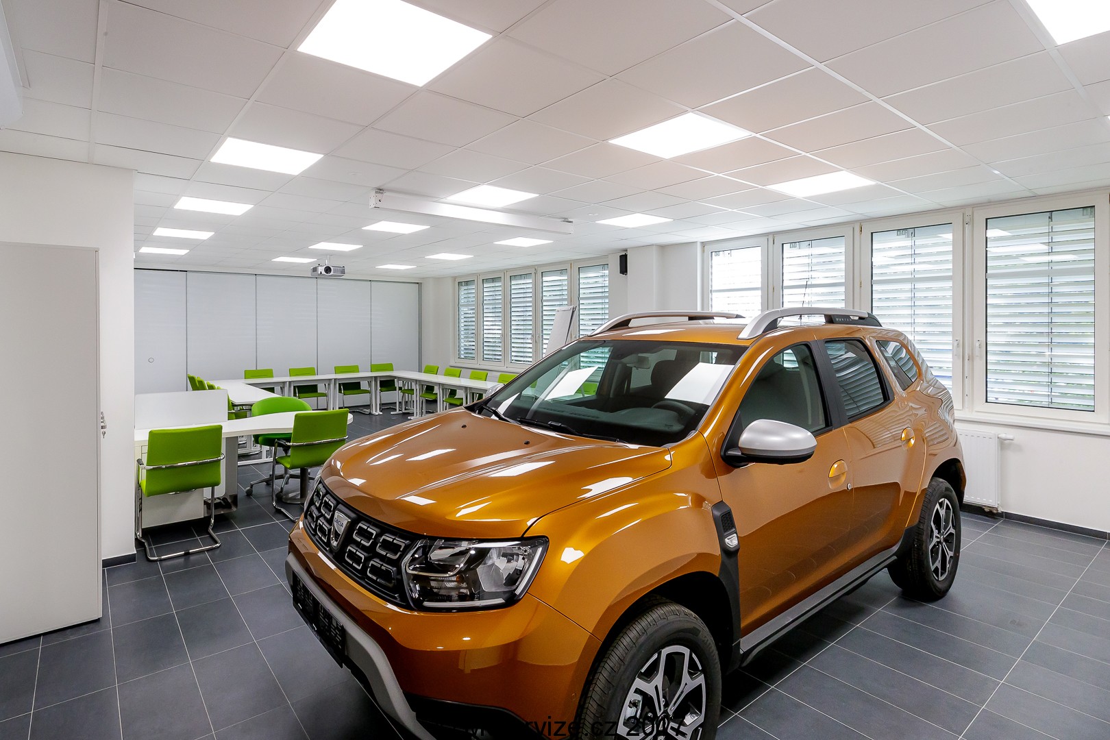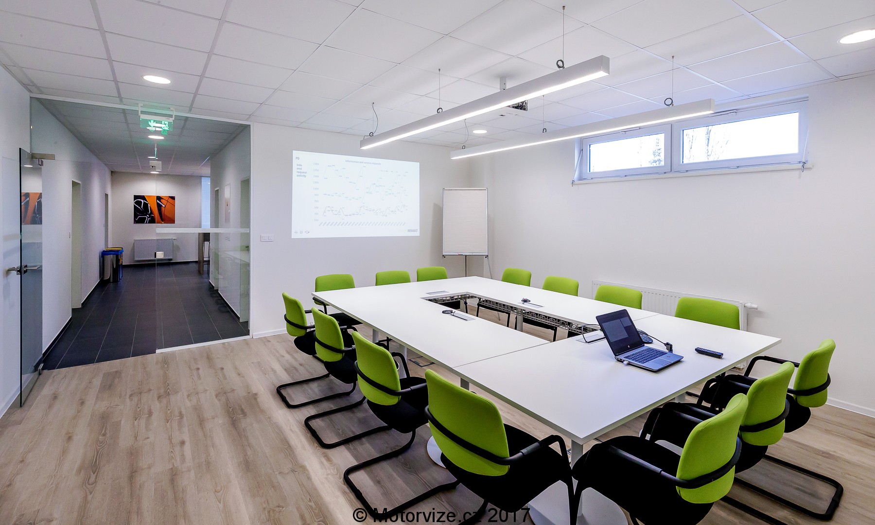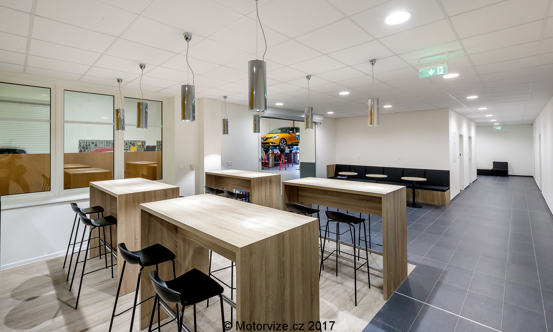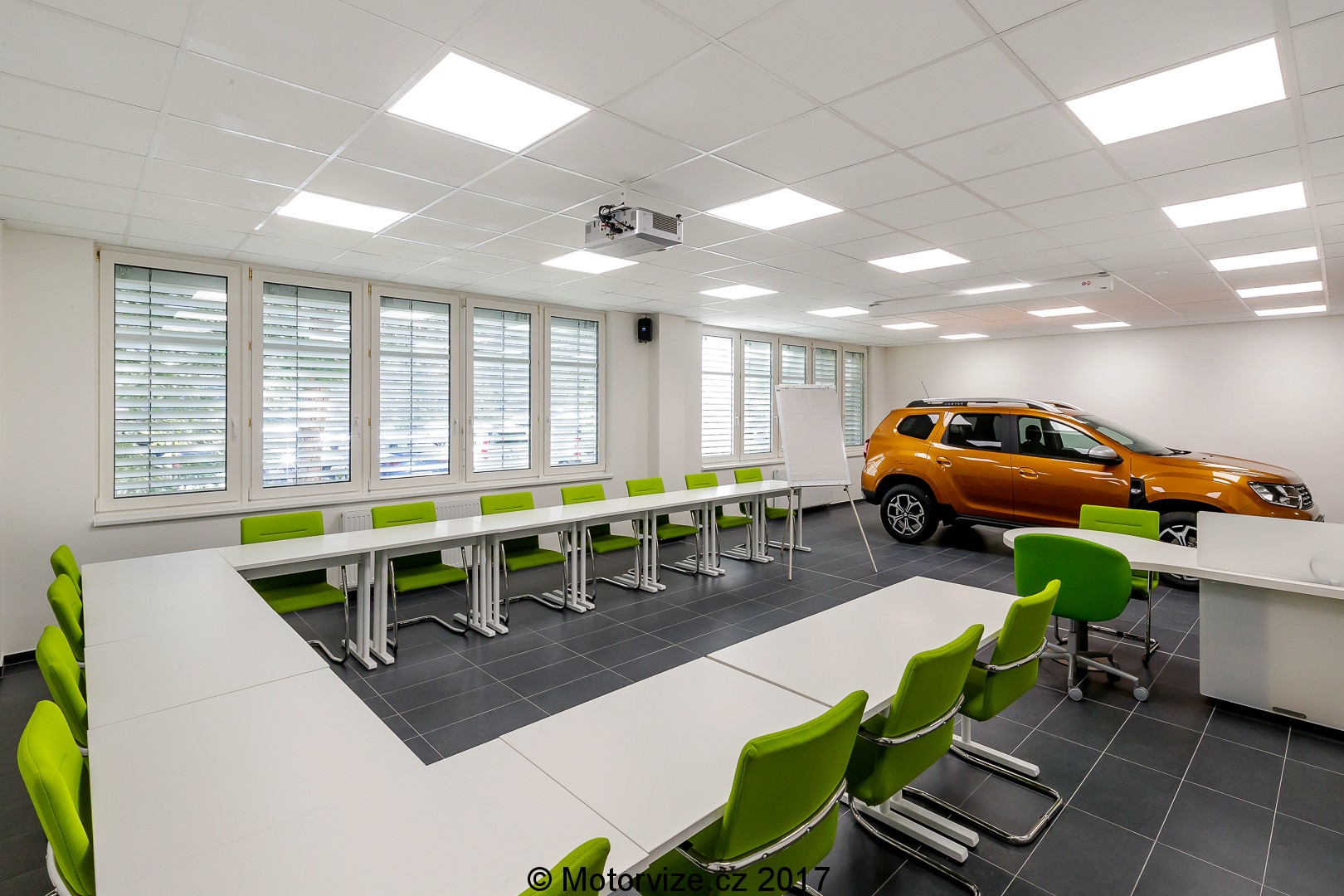 V prvé řadě bychom si měli říci, o co vlastně importu jde. Samozřejmě jde o školení, jak už i název napovídá. K němu je ale potřeba míti dobrý základ. Tím je několik menších místností pro nejefektivnější „vyučování“ v počtu do 9 osob, jedna velká, ale hlavně prostor pro technicky-praktické ukázky. Za oddechovým prostorem pro kávu a občerstvení je přes skleněnou stěnu vidět přímo k heverům, na kterých mimochodem už teď stojí pár vozů značky. To má své výhody, a to nejen pro školitele i jejich žáky. O nich si určitě ještě povíme. Teď ale ještě jeden význam, který jistě tento prostor pro automobilku má. Ty „lepší“ z nich mají své interní i externí standardy. Mířím teď ale hlavně k prezentaci značky směrem ven, k nám zákazníkům. I Renault (a potažmo samozřejmě Dacia) má své „vystoupování“. Jak na tiskové konferenci zmínil generální ředitel českého zastoupení: „Když chceme po svých partnerech, dealerech, aby dodržovali naše standardy, musíme jim jít příkladem. I proto máme tohle nové školící středisko v posledním designu.“ Možná by vás to nenapadlo, ale barvy, vzhled prostor, korporátní značení, loga, svícení, to vše by mělo být napříč partnery částečně unifikováno tak, aby se potenciální zákazník cítil co nejlépe. Nemám námitky. Minimálně ty prostory tady na Proseku jsou opravdu reprezentativní.