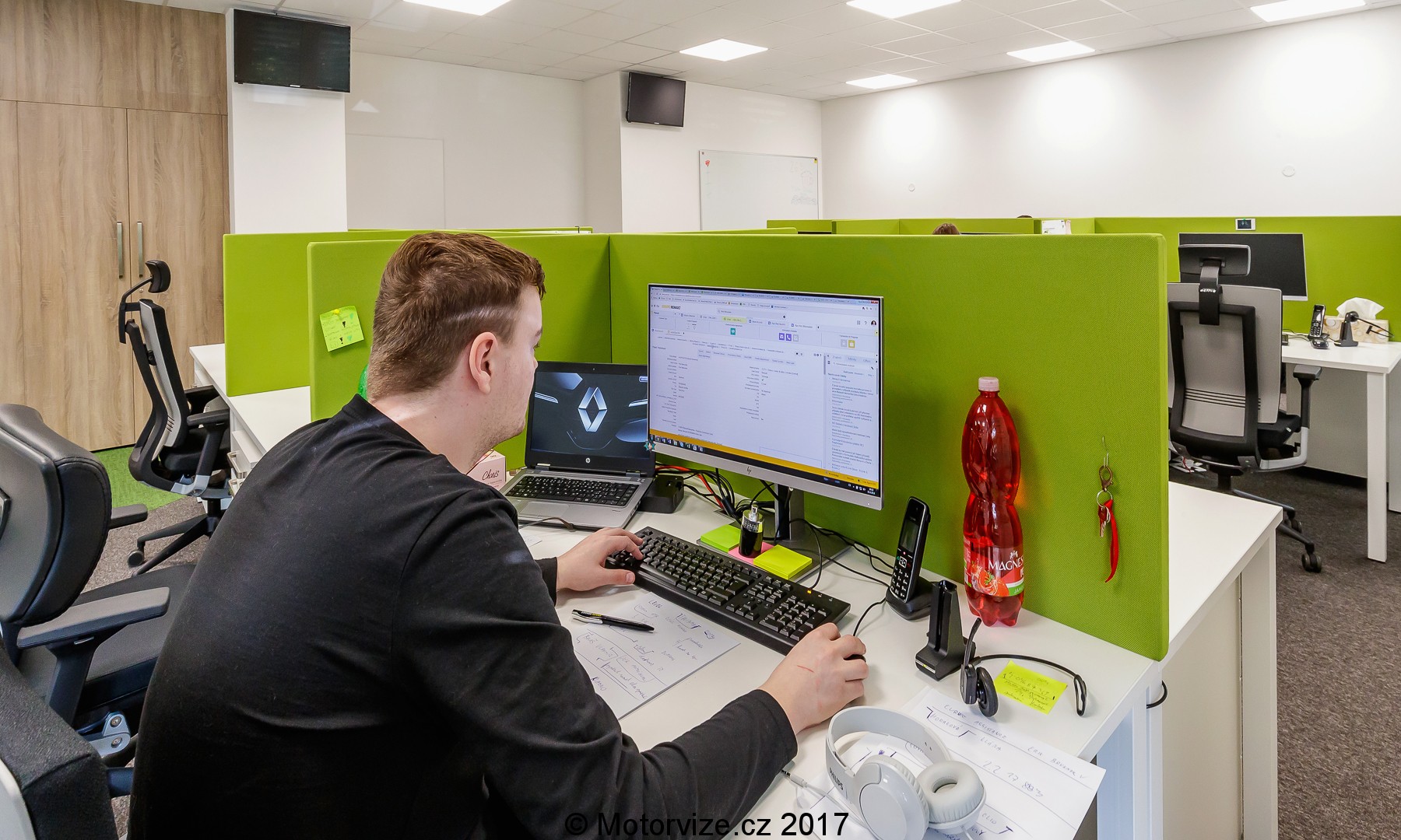 Zatím jsme se v budově na pražském Proseku nacházeli pouze v prvním patře. Pomalu končí naše prezentace a my vyrážíme i do prvního patra. Co nás asi může čekat? Já už to moc dobře vím, vás zatím ale ještě napínám. Po shodech auto asi nevyjede, a tak nečekejte pokračování školících prostor. Teď už jdeme do kanceláří a já jsem zvědav, co pro nás mají přichystáno… Samotná první místnost mě zajímá snad možná i nejvíce, jdeme se podívat do call centra, které zde bylo rozchozeno doslova pár dní před naší návštěvou. Celkově 12 operátorů se zde střídá pro 3 země (Česko, Slovensko a Maďarsko). Renault už sice callcentrum měl, bylo ale zřizováno externě pomocí sdílených operátorů. Nyní už vám telefon zvedne jen kvalifikovaný poradce, vyškolený odborník, partner… Ten má navíc ještě jednu unikátní možnost. Telefonuje s vámi pomocí bezdrátového headsetu, a když už byste náhodou předčili jeho vědomosti, může kdykoliv odejít o patro níže a řešit váš dotaz přímo z praktického hlediska – prostě a jednoduše si sedne do onoho vozu a zkouší stejnou situaci, která se stala právě vám. Mluvili jsme i o internetu. Na ten nebylo samozřejmě zapomenuto. Jedním z komunikačních kanálů je i pro místní chat, jež je k dispozici právě na stránkách jednotlivých značek. Jeho obshluha je mimochodem k dispozici v pracovní dny mezi 9 hodinou ranní a 8 hodinnou večerní. Chatovat si se zástupci automobilky, o tom se mi asi fakt ani nesnělo. Pokračujeme dál a zjišťujeme, že týmem operátorů podpora zákazníků nekončí. Hned o kancelář dále se nachází tzv. backoffice (podpora prodejní i poprodejní péče), která dokáže pomoci v nestandardních případech. Ještě o jednu kancelář dál sedí tým technických odborníků, a to právě na aftersales/servis nebo třeba i homologace. Ti v naší zemi rozumí daným automobilkám zcela nejvíce a většinu technických dotazů jsou schopni odpovědět právě oni.