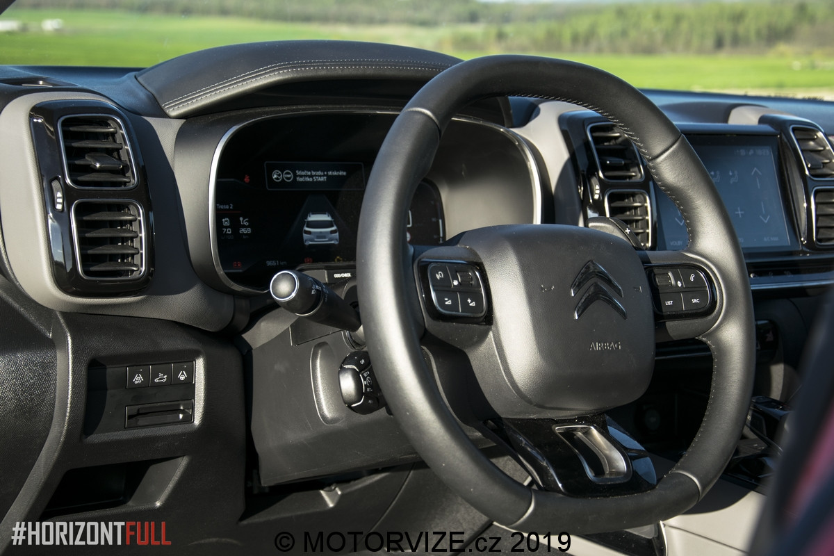 Možná se budete divit, ale k motoru vám toho moc nepovíme, protože mu není moc co vytknout a ani moc co nového zmínit. Pod kapotou šlape staré, dobré, lety prověřené a hlavně vypilované HDI od Peugeotu. V našem testovaném modelu šlo o 2.0 BlueHDI, které díky zabudování všech moderních technologií plní poslední nařízení pro moderní vznětové motory. Disponuje výkonem 130 kW a shodli jsme se, že na rodinné SUV je to dostačující porce pro bezpečné předjíždění a svižnou jízdu. Na dnešní poměry velký motor se slušným výkonem v nás evokuje dojem, že by měl i hodně vydržet, ale to ukáže až čas. Každopádně palce nahoru pro Citroen, že pořád drží tenhle motor naživu. Upřímně se musím jen chvilku zastavit u spotřeby. Ta se sice zastavila za dobu našeho testování na hranici vcelku rozumných 7 l/100 km, ale o moc níže jsme se prostě nebyli schopni dostat. Snad bych i naivně čekal, že rozumným stylem by měl jezdit i za 6, ale s tím jsem nepochodil. Hold velké a poněkud těžší SUV nemůže být zároveň i superekonomické.