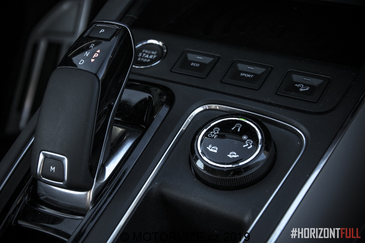 Možná i překvapivě v cépětce najdeme i tlačítko SPORT. Rozhodli jsme se tak vyzkoušet i svižnou jízdu po okreskách. Ačkoliv podvozek funguje skvěle, utvrzuje nás ve všeobecném tvrzení, že tlačítko SPORT do pohodlného rodinného SUV nepatří. Kromě vytočeného motoru žádný velký sportovní zážitek nepřijde a nebyl důvod tohle kouzelné tlačítko více používat.