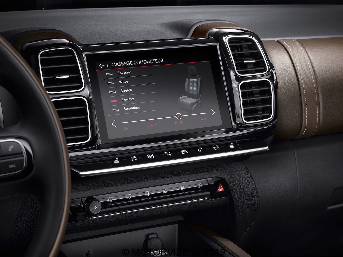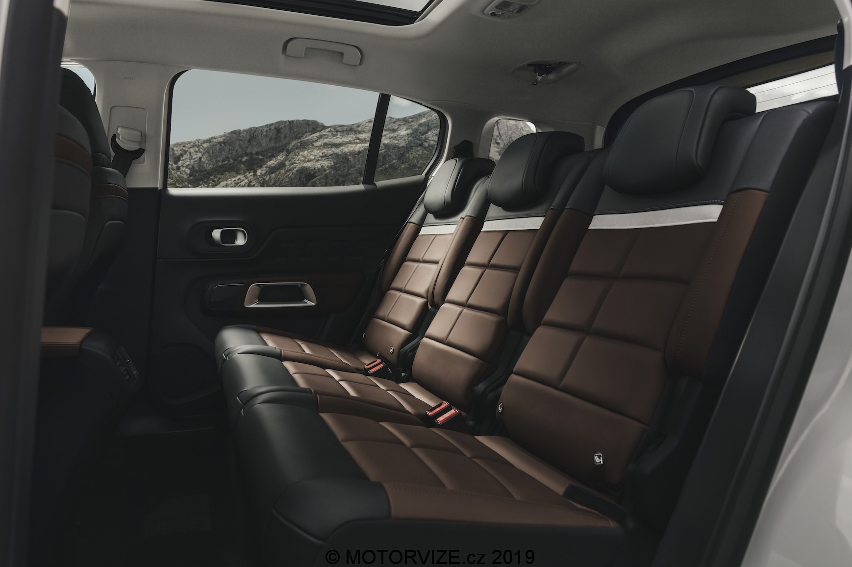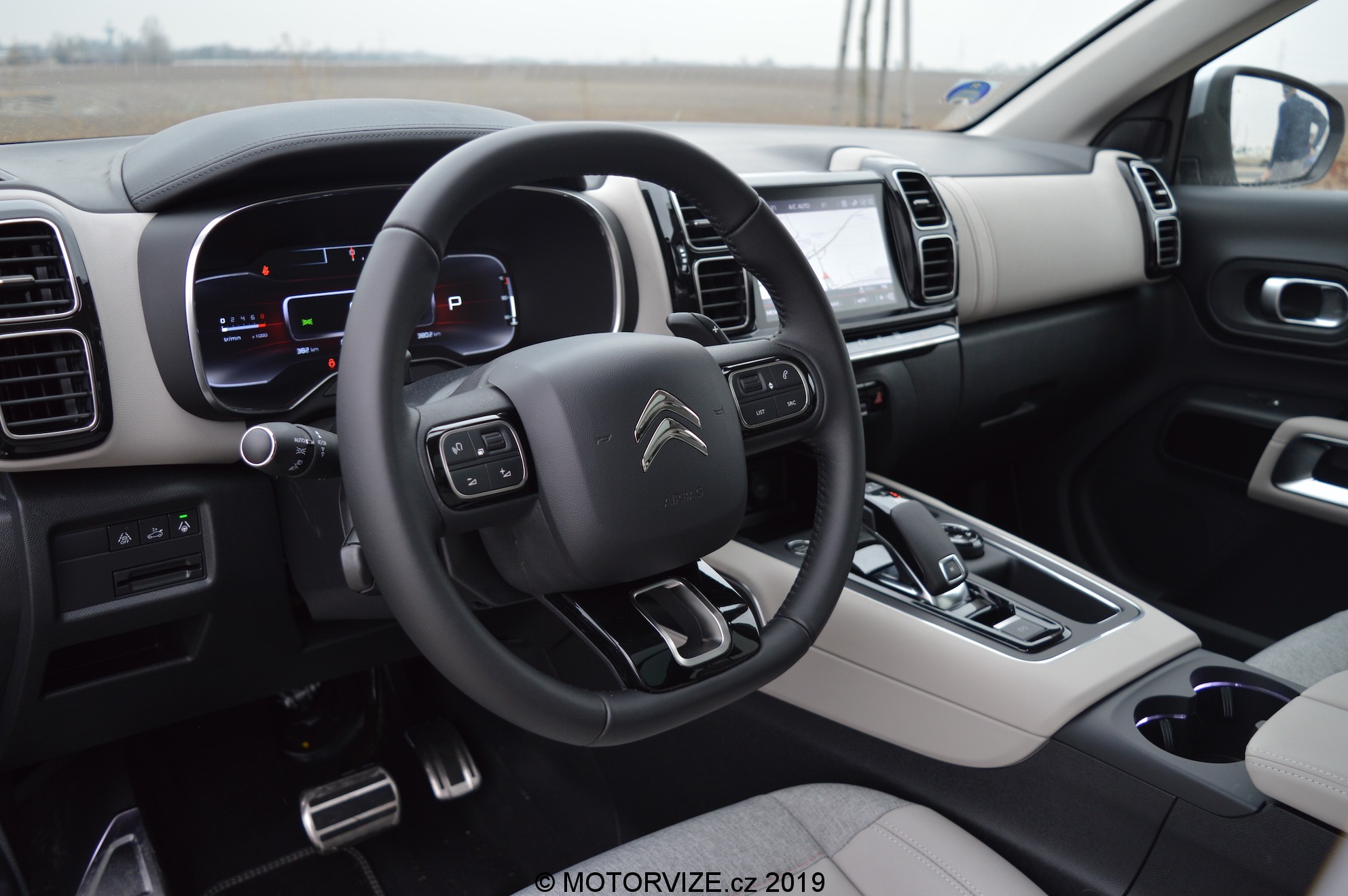 Je důležité, že i přes sdílení základní techniky s koncernovými sourozenci má Citroen možnost tvořit zcela odlišně. Výsledkem je i vlastní pojetí interiéru. Pod drobnohledem sice najdete stejnou obrazovku audiosystému i digitálního přístrojového štítu, minimálně ve druhém případě má ale Citroen zcela odlišnou grafiku, což kvituji. Je to mimochodem něco nového a já to jednoznačně vítám. Volant je taktéž typický pro značku, a to vč. veškerého ovládání. Příjemný je i poměrně masivní středový panel, ve kterém je hezky utopen displej audiosystému. Naopak ovládací joystick automatické převodovky je pak kompletně převzat od Peugeotu. Nechybí ale ani mnoho hodnotných materiálů, a to třeba kožené části palubní desky. Vracím se ale k úvodu. Řekli jsme, že na prvním místě by u nové C5 měl být komfort na palubě společně s prostorností. Ještě, než se vydáme na jízdu, zastavím se tedy na chvilku a zamyslím se, kolik místa uvnitř vlastně mám. U řidiče je tomu vesměs vždycky podobně, i když i v tomto segmentu existují auta, u nichž se moje pravé koleno nepříjemně dotýká volantu. Peugeot k nim díky odlišné interiérové koncepci nepatří. Citroen ji ale nemá – drží se svého pojetí. Ani tak necítím na nohy v žádném směru nedostatek prostoru. Na prezentaci se hovořilo i o sedadlech, která doznala změn zaměřených na pohodlí. To se v zásadě povedlo – jsou dostatečně široká a trochu bočního vedení se také najde. Já osobně bych si uměl představit ještě o něco delší sedák nebo jeho výsuvnou koncovou část tak, jako to má Peugeot nebo Opel. Pokud se mám ještě zaměřit na variabilitu, super je, že již od základu máte k dispozici tři plnohodnotná a naprosto nezávislá sedadla ve druhé řadě. V případě cesty na lyže nebo převozu delšího předmětu tak neřešíte kapacitu „tunelu“, ale prostě a jednoduše sklopíte prostřední sedadlo – super! Za velký nedostatek vidím ale absenci třetí řady sedadel v nabídce, přeci jen jde už o poněkud větší auto a určitě se najde řada těch, co by si dokázali připlatit.