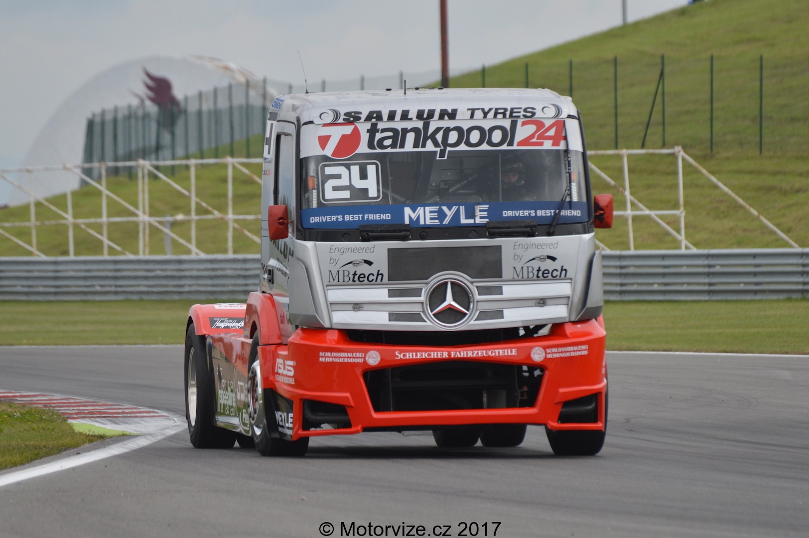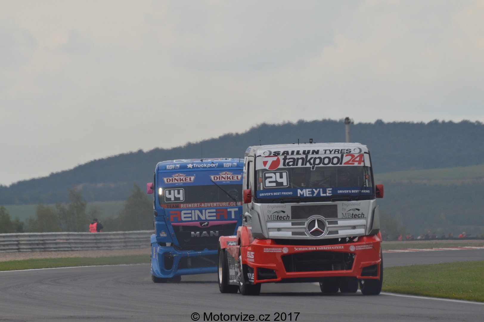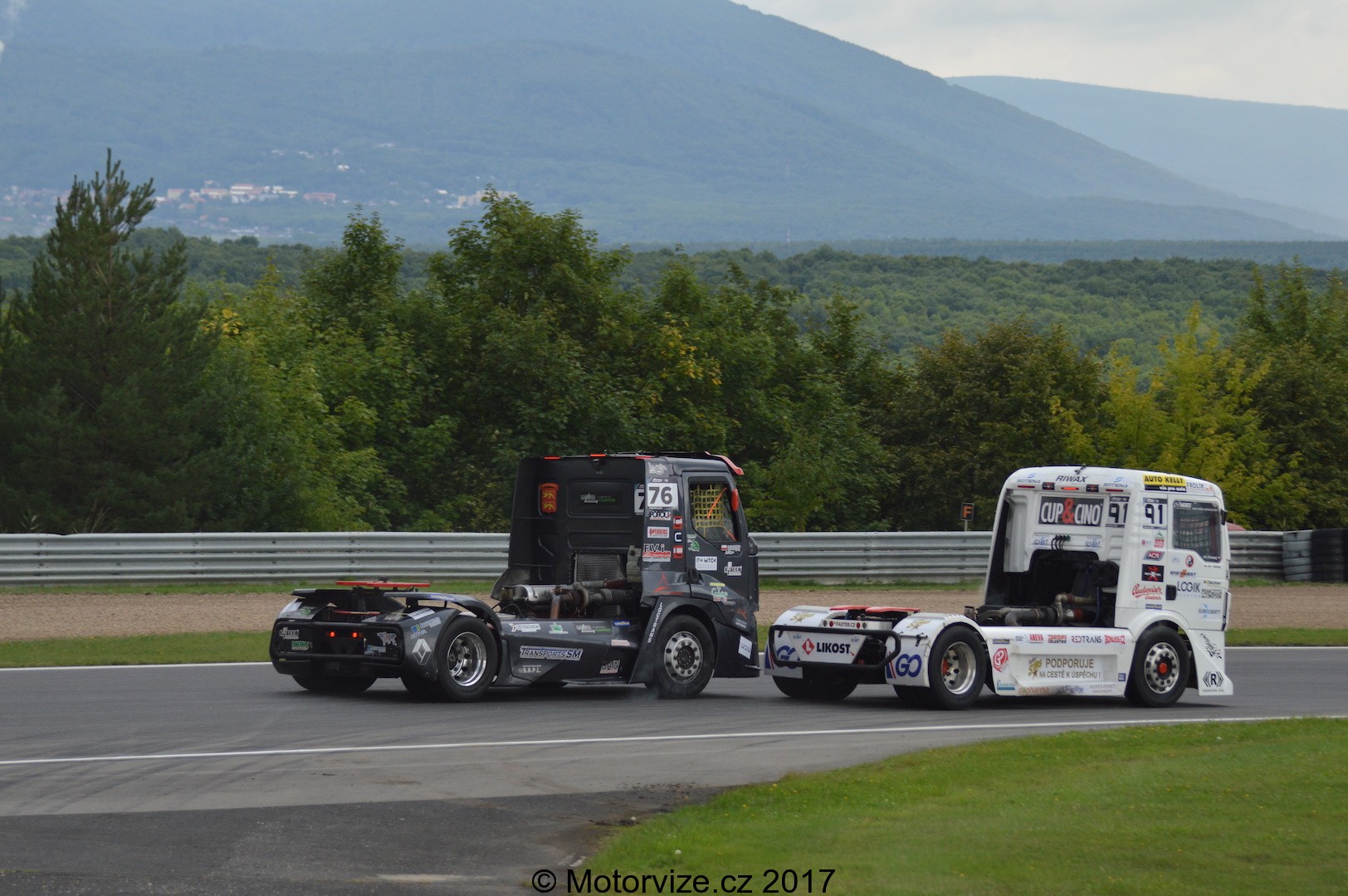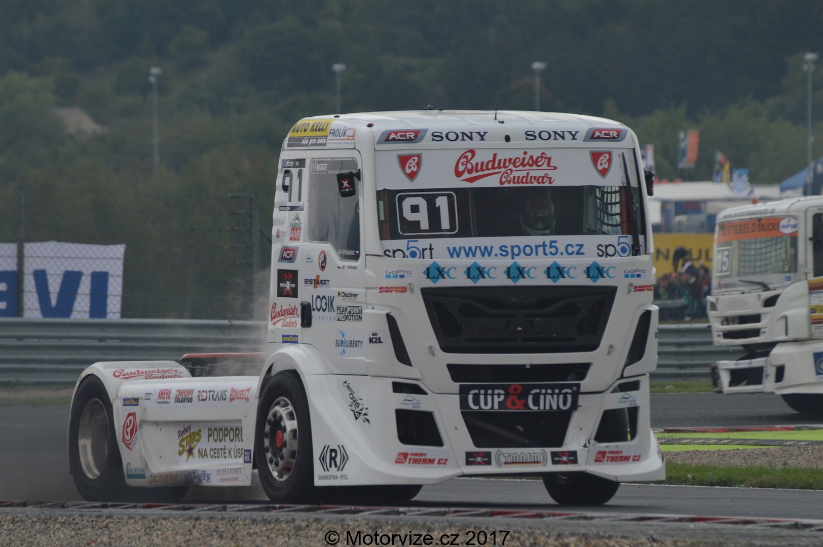 Jako správní nadšenci nevyspáváme a vyjíždíme z Prahy směr Most hned ještě před devátou hodinou ranní. Pojďme si malinko rozvést ten podnadpis. Dopolední program pro běžného smrtelníka není asi vyloženě žádnou peckou. Tréninky a kvalifikace, tj. stručně harmonogram prvního závodního dopoledne na Czech Truck Prix. My svou „Tour de Most“ začínáme zhruba ve čtvrt na 11, kdy parkujeme to obyčejné auto a jdeme se věnovat něčemu naprosto ojedinělému. První na trati spatřuji mladé talenty v rámci šampionátu Kia Lotos Race na shodných vozech Kia Piccanto. No, nemůžu říci, že by mě zrovna tyhle malé (relativně) rychle jedoucí boudičky nějak lákali. O to méně vás budou závodní Piccanta zajímat, že v tomhle šampionátu zatím nemáme svého zástupce. Pak se program diváků a redaktorů/fotografů lehce začíná rozcházet, my jdeme do tiskového střediska na rychlé školení, procházíme všechny důležité informace a pak až se vydáváme k trati. Hned po Renault Clio cupu a kvalifikaci těchto vozů přichází konečně čas na samotnou dominantu celého víkendu, na Trucky. Nebojte, ještě nemluvím o závodě, nýbrž pouze o jejich kvalifikaci. I když nejde o to hlavní lákadlo pro diváky, tak pořád je i teď na co koukat. V první části startuje celé startovní pole, do druhé se pak dostává pouze nejlepších deset. Pro české diváky může být potěšením, že již tradičně do této TOP skupiny se v sobotu dostaly dvě tradiční české želízka v ohni – Adam Lacko a David Vršecký. Naopak další sympaťák a český oblíbenec, Frankie Vojtíšek se na trať podruhé nevydal.
