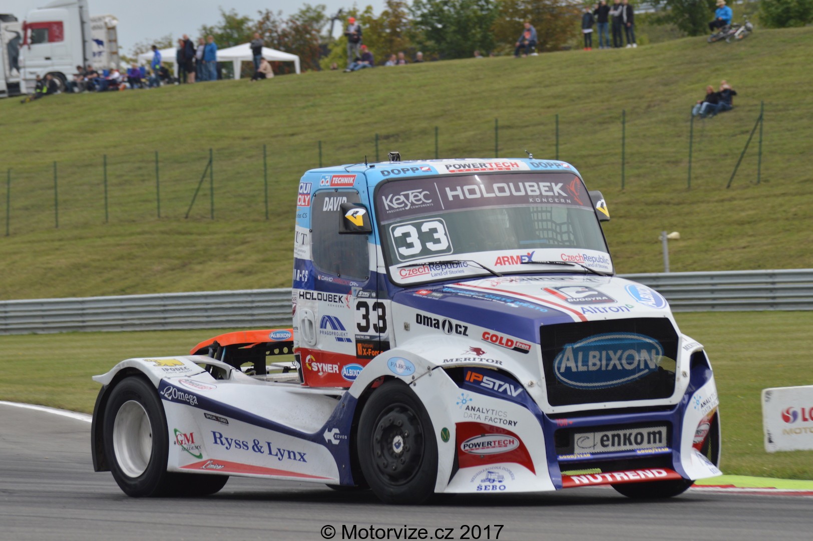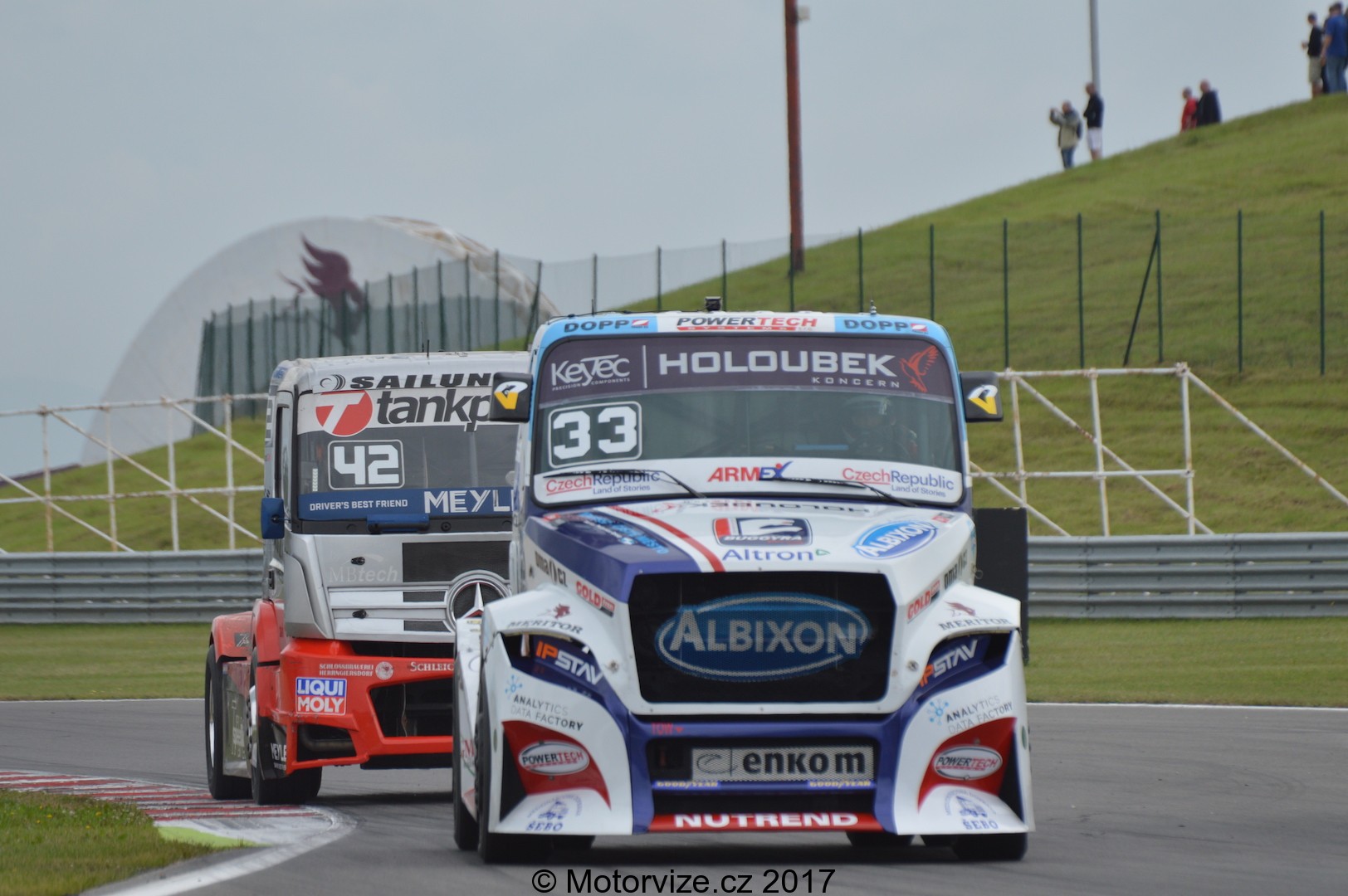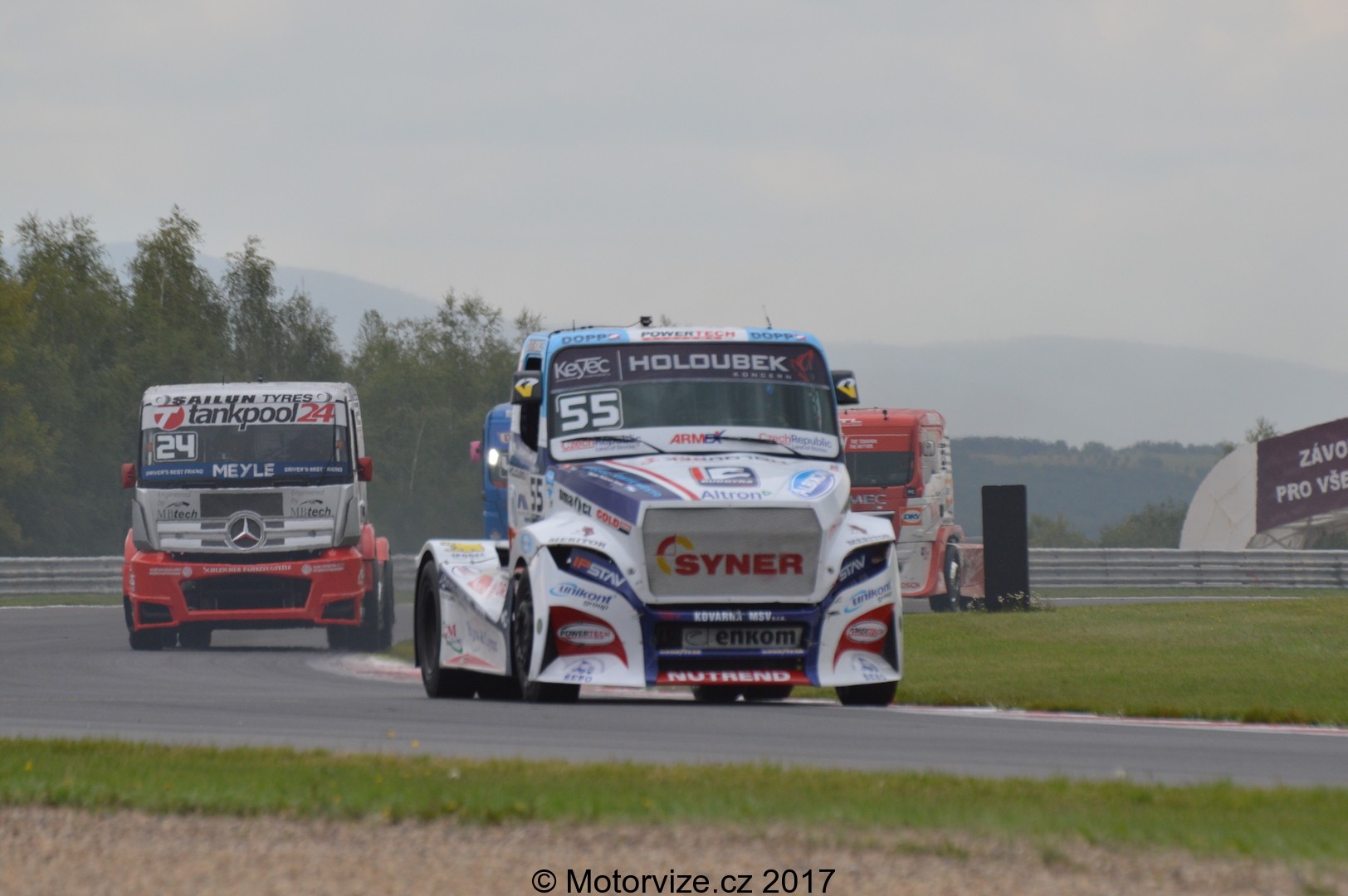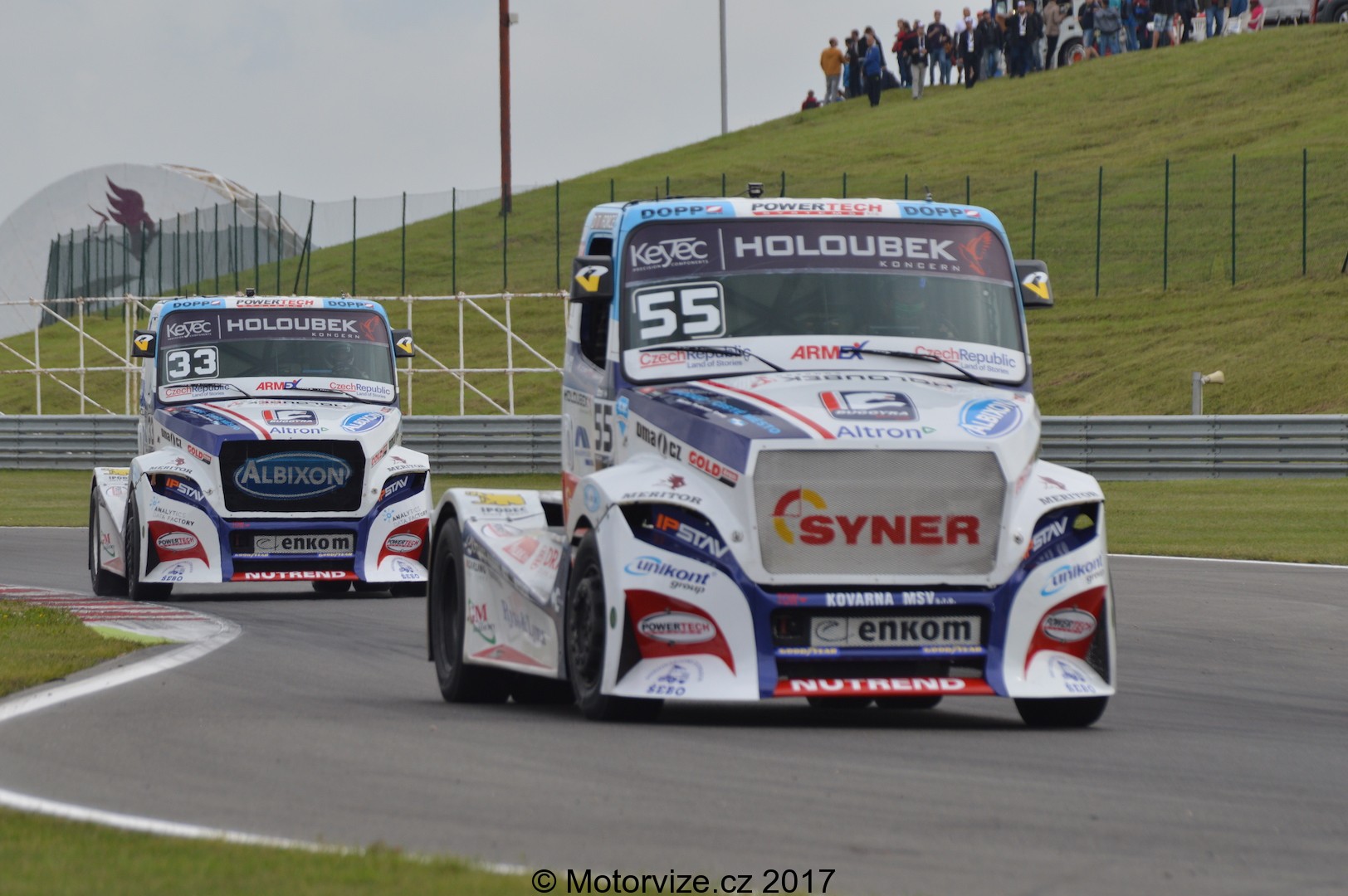 Vybavujete si mostecký okruh? Pokud jste nikdy nebyli na závodech tahačů právě tady, tak mi určitě dáte za pravdu, že si neumíte představit, jak se tihle obři napasují do první zatáčky. Těch prvních pár vteřin je rozhodně vždycky to nejzajímavější. Když už jsme mluvili o těch kvalifikacích, asi jsme pozapomněli na výsledky, které jsou pro nás o to důležitější, že Adam Lacko mohl startovat ze třetí příčky a David Vršecký ze druhé. Frankie Vojtíšek pak doplnil česká želízka v ohni z 12. Pozice. Další zvláštností, pokud jste ještě na trucích nebyli, je tzv. letmý start. Asi také vzhledem k jejich velikost a (ne)bezpečnosti se prostě závodníci nerovnají po zaváděcím kole znovu na startovní rošt, ale jedou všichni vedle sebe konstantní rychlostí a plný plyn mohou sešlápnout až na startovní čáře. Pak přichází teprve ten správný humbuk. K mému štěstí jsem viděl onboard záběr z jednoho z předních závodníků při startu do prvního závodu. Upřímně jsem nikdy nečekal, že by vůbec auta k sobě mohli být někdy tak blízko, natož ještě kamiony. Za mě opravdu velký klobouk dolů za všechny závodníky. Pojďme už ale konečně na závod, na ten první alespoň. Boj to byl rozhodně zajímavý. Adam Lacko, který mimochodem stále s přehledem vede letošní Evropský šampionát, nechal projevit svou dravost hned na startu. Všechno to vypadalo hodně nadějně. Pokud znáte mostecký autodrom, tak víte, že posledních zhruba 10 let se závodníci jako první musí popasovat s dvojící zatáček uspořádaných do tzv. šikany. To asi není nic neobvyklého, už na začátku tohoto odstavce jsem se rozepsal o podívané, jakou trucky v této sekci nabízí. Není asi moc jezdců, kteří by ji znali tak skvěle jako Adam, David či Frankie. I proto se naši drali ihned po startu dopředu. Adamovi na roudnické Buggyře se to na chvilku i podařilo, pak byl ale zablokován a na druhé místo se dral až v dalších kolech. Nakonec se mu to podařilo, stejně tak si o jednu pozici polepšil i týmový kolega David Vršecký. Pokud vám není znám formát druhého závodu, tak vás opět asi překvapím. První osmička se zrcadlově otáčí pro startovní příčky. I proto Adam startoval sedmý, David čtvrtý. V cíli z toho bylo čtvrté pro Adama, páté pak připadlo Davidovi. Mimochodem za celý závodní víkend musím smeknout i před dlouholetou startující, stálicí Stephanie Halm, která zvládla dvakrát obsadit podium a dvakrát čtvrté místo! Bravo!