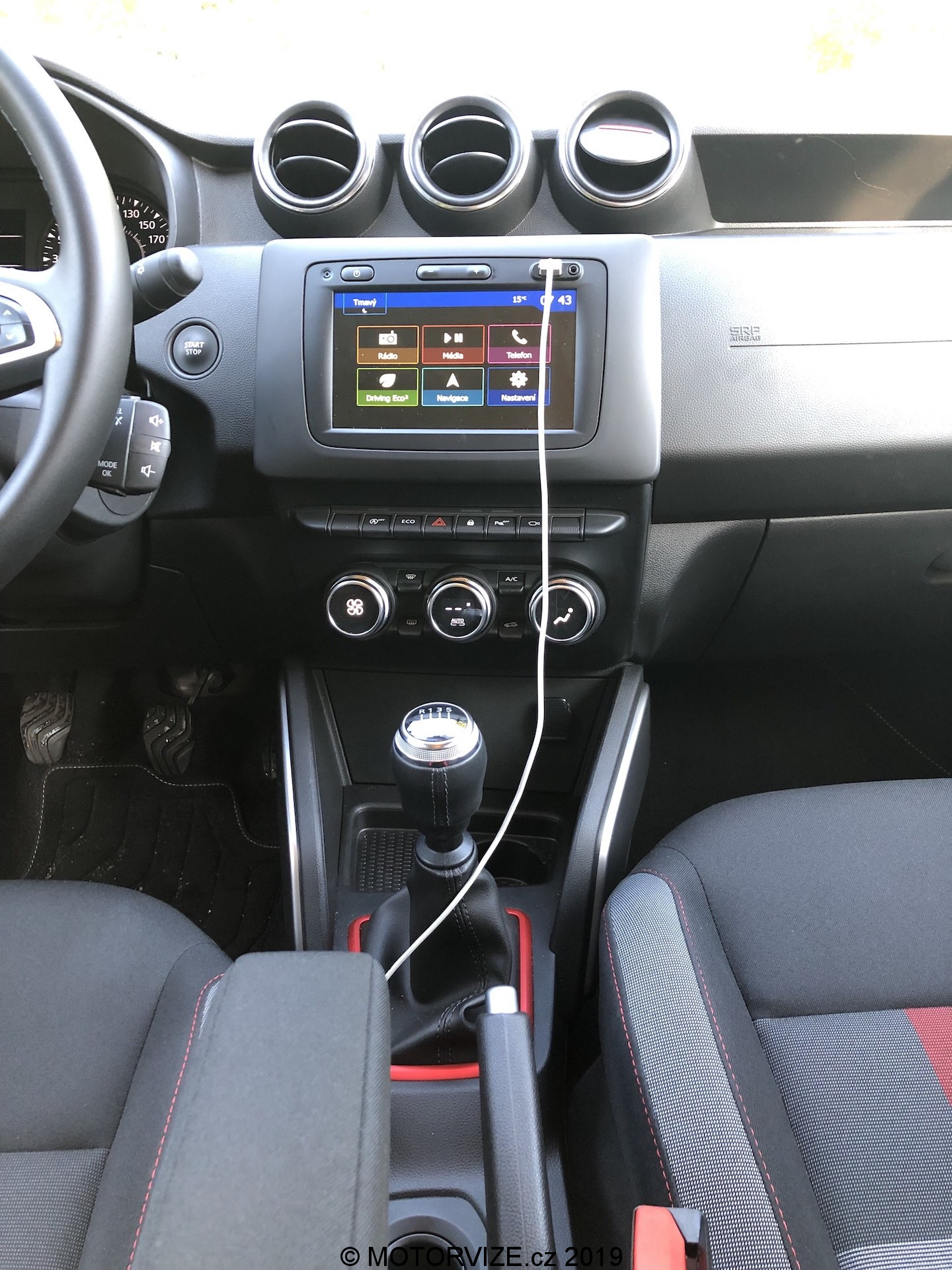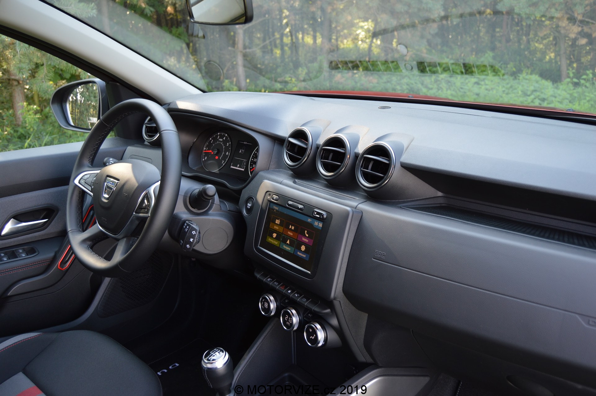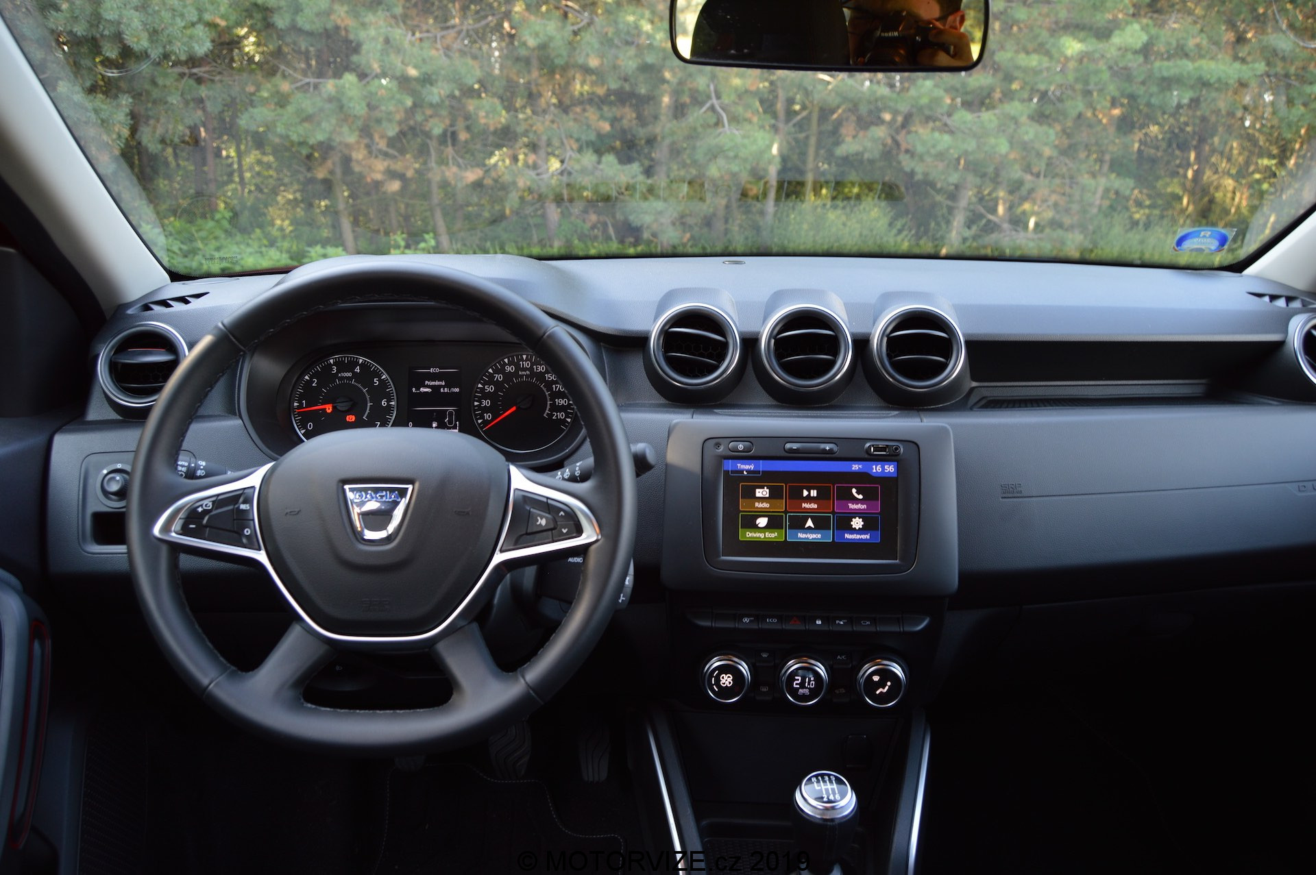 Dacia Duster přišla na svět v roce 2010 jako jeden z modelů automobilky, kterou z prachu jako low-cost odnož vydupal Renault. Přebral spoustu ověřených (čti postarších) mechanických a elektronických komponent a rázem se stal hitem. Především díky cenové politice a jednoduché konstrukci. Nová verze už je trochu ambicióznější a také výrazně kvalitnější. Uvnitř se až nechce věřit, že má být Duster spodní strana dnes tak drahých SUV. V interiéru nečeká žádné nepříjemné překvapení – pohodlná sedadla, příjemný (kožený) volant, loketní opěrka, rozumně vypadající plasty, a to jak materiálem, tak provedením. Všude, kde se člověk dotýká, jsou měkké látky (snad kromě palubní desky ulité z jednoho celku tvrdého plastu). Řada funkcí je řešena fyzickými tlačítky, ať už vypnutí start/stop, vypnutí parkovacích čidel nebo zapnutí kamer. První náznak úspory je na obrazovce infotainmentu. Ta je matná, takže na ní nejsou vidět otisky, ale je málo kontrastní. Když na ni zasvitne slunce, je velmi špatně vidět obraz z couvací, přední nebo bočních kamer. Ano i tyto věci už v Dusteru jsou. Kromě toho jsou tu některé ovladače, které Renault vyrábí už od 90. let a ty také připomenou, že co funguje, není třeba měnit. Na druhou stranu, jak z jiného světa, respektive ze světa Audi, vypadá nastavení automatické klimatizace třemi kovovými stříbrnými ovladači. Infotainment je neuvěřitelně jednoduchý, jak ovládáním, tak grafikou. Reaguje rychle a překvapivě dobře. Ve spojení s CarPlay nebo Android Auto přenese prostředí vašeho telefonu na velkou obrazovku a pak už si není ani trochu na co stěžovat.