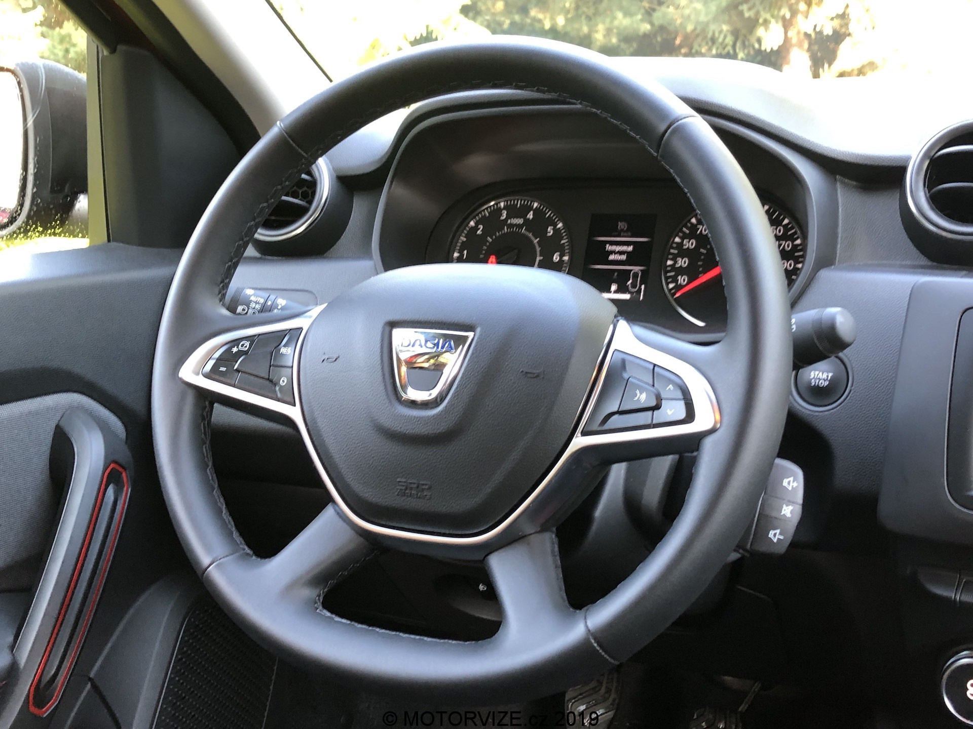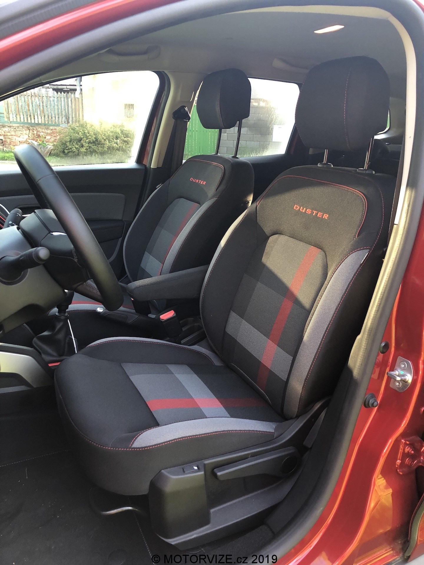 Všude je místa více, než by se dalo čekat. V kufru je 445 krásně využitelných litrů. Kolmé páté dveře a úzký práh ukazují, jak efektivně se tu s prostorem nakládá. Uvnitř v zadní řadě je také dost místa, byť složení zadních sedadel vytváří vysokou hranu, kterou ostatní kompenzují dvojitým dnem. Skládání probíhá sice pomocí zvláštních pák, ale párkrát do roka se to dá určitě přežít. Duster disponuje stejným systémem zamykání jako Renault. Při vzdálení od auta, se sám zamkne. Parádní nápad. Dobře vyřešená odkládací místa, jednoduchá, ale funkční obrazovka palubního počítače mezi budíky, ovládání tempomatu a hlasového ovládání na volantu, to všechno funguje velmi dobře.