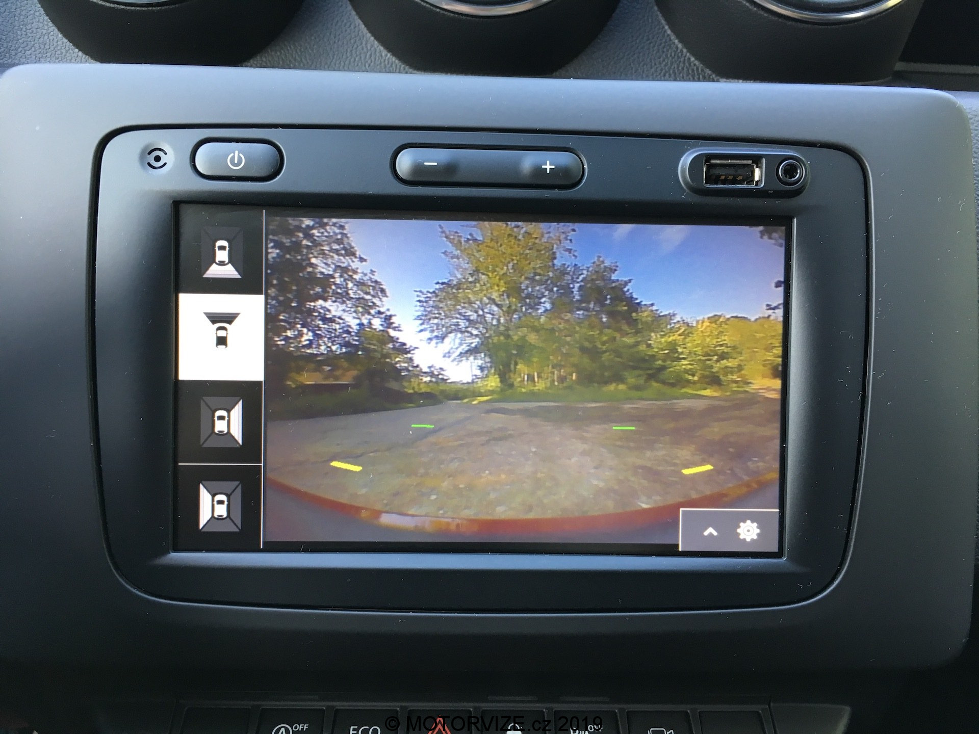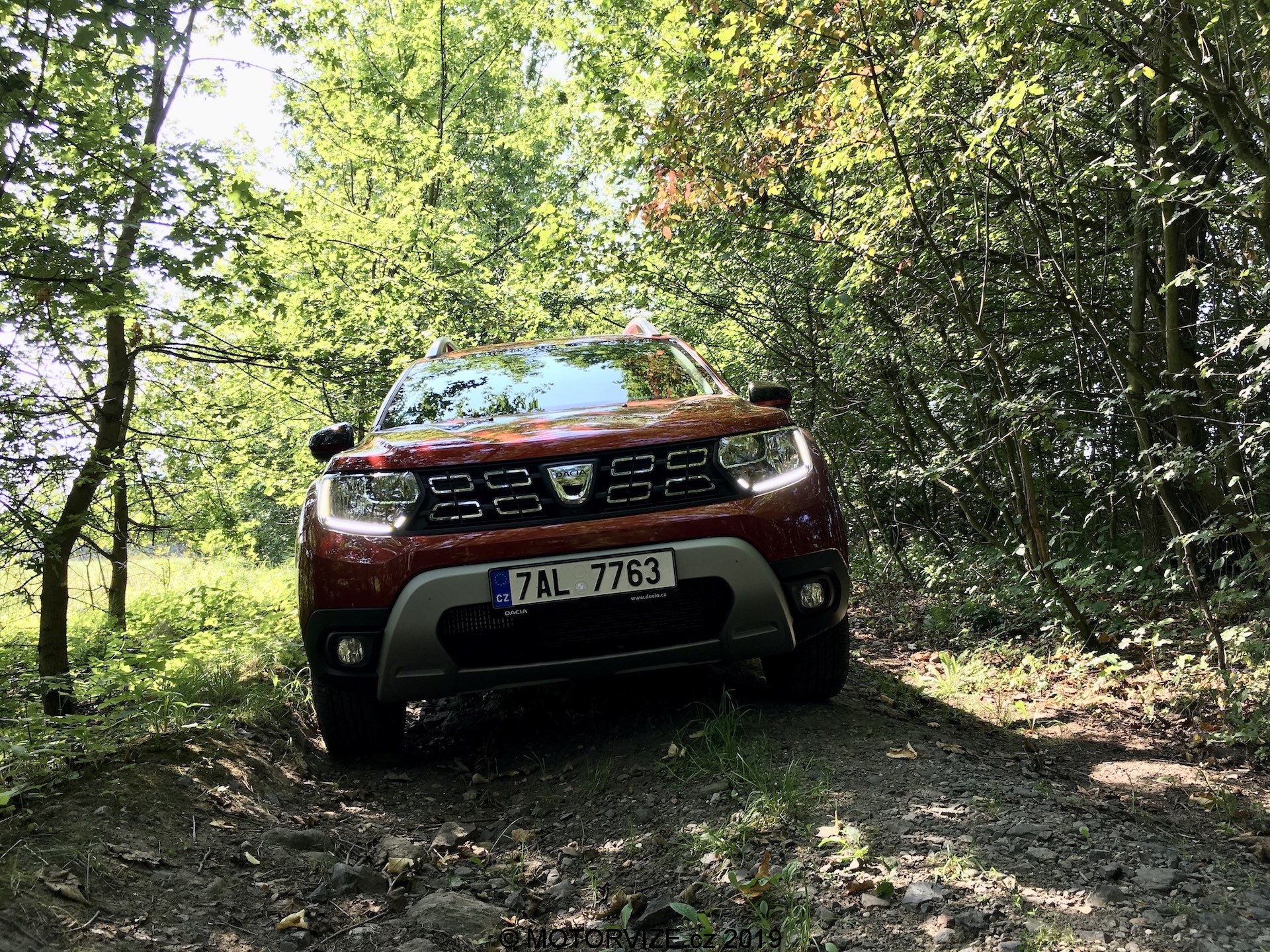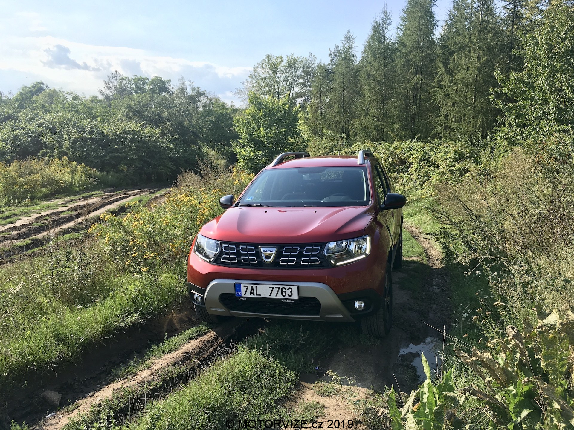 U všech SUV zkouším jejich terénní možnosti. Považuji se v této oblasti za běžného motoristu, a tak když začnou “křičet” parkovací senzory, zastavím. Poté vystoupím, kouknu a případně to vzdám ze strachu o přední nárazník. Duster je jiný. Enormní výška (prakticky dvojnásobek běžného osobního vozu) umožňuje výborný přední nájezdový úhel 30° (až přemýšlím, jak je to s těmi bezpečnostními standardy pro chodce u nárazníků). Také absence předních parkovacích senzorů mi dodala kuráž vydat se na místa, kam bych jiná auta nebral. Velmi rozbitá cesta místy připomínala koryto potoka, místy měla velmi vysoký střední pás. Duster se ani nepřiblížil svým limitům. Přední poháněná náprava může být omezující. Dokud je ale jistota, že si auto nesedne “na břicho”, elektronická regulace prokluzu a dostatek plynu vytáhne auto do nečekaných míst i na silničních pneumatikách. Za toto prostě nelze než vyslovit poklonu a obdiv. Duster je v terénu přesně tím, čím by ostatní SUV být chtěla. V terénu by navíc teoreticky mohly posloužit čtyři kamery kolem vozu (v Dusteru, chápete to?!). Z pohledu praktičnosti a kombinace jejich malého kontrastu a horšího rozlišení obrazovky, šířky záběru kamery to znemožňuje. Stačí se spolehnout na to, že přední ochranný kryt nárazníku je opravdu vysoko a podvozek je dost robustní na to, aby nějakou tu bolístku ustál.