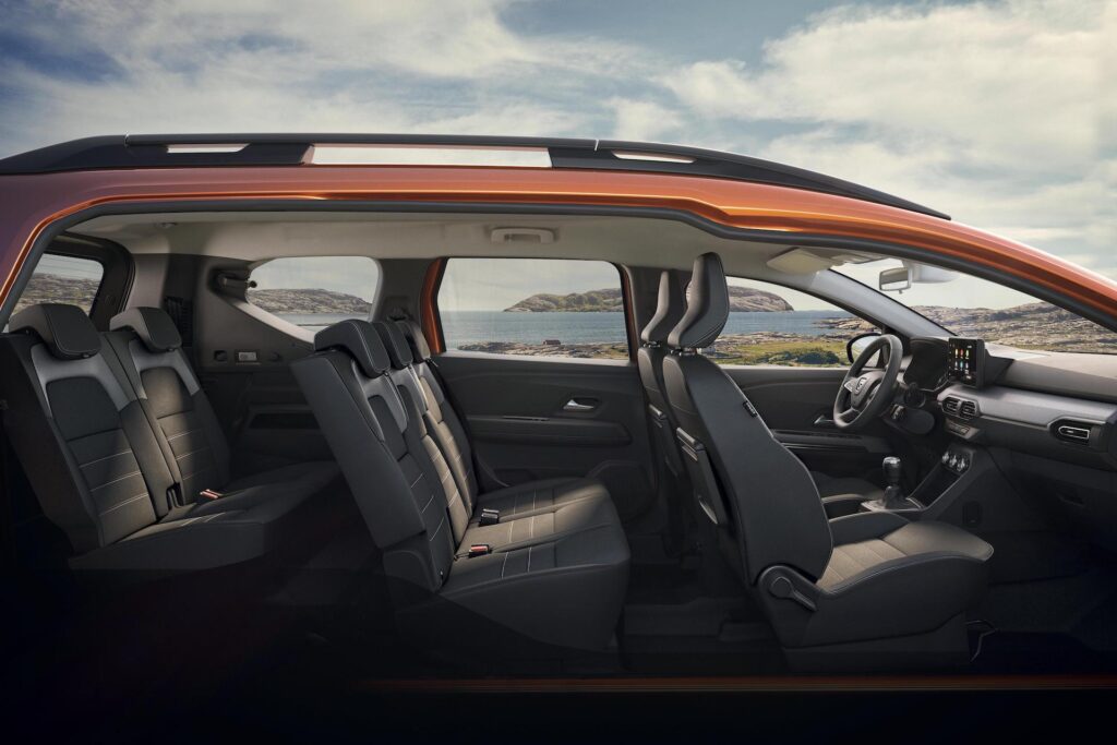 Dojem z interiéru podtrhují kvalitní materiály a vhodně zvolené barevné kombinace. Dacia využila horizontálně členěnou palubní desku jejíž horní a spodní část odděluje středový pás, který může být čalouněný textilií. Nad tímto pásem se nacházejí důležité prvky pro řidiče (přístrojový štít, multimediální obrazovka) a pod ním, stále na dosah ruky, ovládání manuální, či automatické klimatizace. V závislosti na verzi využívají cestující ve druhé řadě sklopné stolky vybavené držákem pohárku. Jsou posuvné o 70 mm, čímž se přizpůsobí potřebám každého pasažéra. 2. řada je vybavena také dvěma úchyty ISOFIX pro auto sedačky na krajních sedadlech. Co se týče cestujících ve 3. řadě, každý má samostatné sedadlo, loketní opěrku a výklopné zadní okénko pro lepší výhled na silnici. Všechny řady sedadel mají stropní světlo. Výška sedadel (375 mm ve 2. řadě 2; 236 mm ve 3. řadě) poskytuje ještě větší komfort na zadních sedadlech 2. a 3. řady. Objem kufru je 708 litrů (metoda VDA) při konfiguraci s 5 místy a 160 litrů VDA v konfiguraci se 7 místy. Dacia Jogger nabízí tři úrovně multimédií, z nichž si každý může vybrat tu svou: chytrý Media Control ovládaný smartphonem, Media Display s dotykovou osmipalcovou obrazovkou, Media Nav s navigací a zrcadlením telefonu přes Wi-Fi. Dacia Jogger startuje v Čechách na 358.500 Kč s DPH.