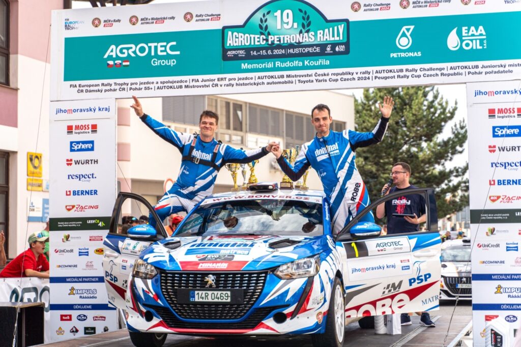 Autor: Jan Novotný · Fotografie: P Automobil Import s.r.o. (Peugeot Media) & AGROTEC PETRONAS RALLY Hustopeče19. ročník Agrotec Petronas Rally Hustopeče nabídl divákům a závodníkům atraktivní podívanou, která se rozhodovala až do poslední etapy. Adam Březík a Ondřej Krajča si z jihomoravských vinic odvážejí své první vítězství v této soutěži, což pro ně znamená také premiérovou výhru v Casino Bonver mistrovství České republiky v rally.