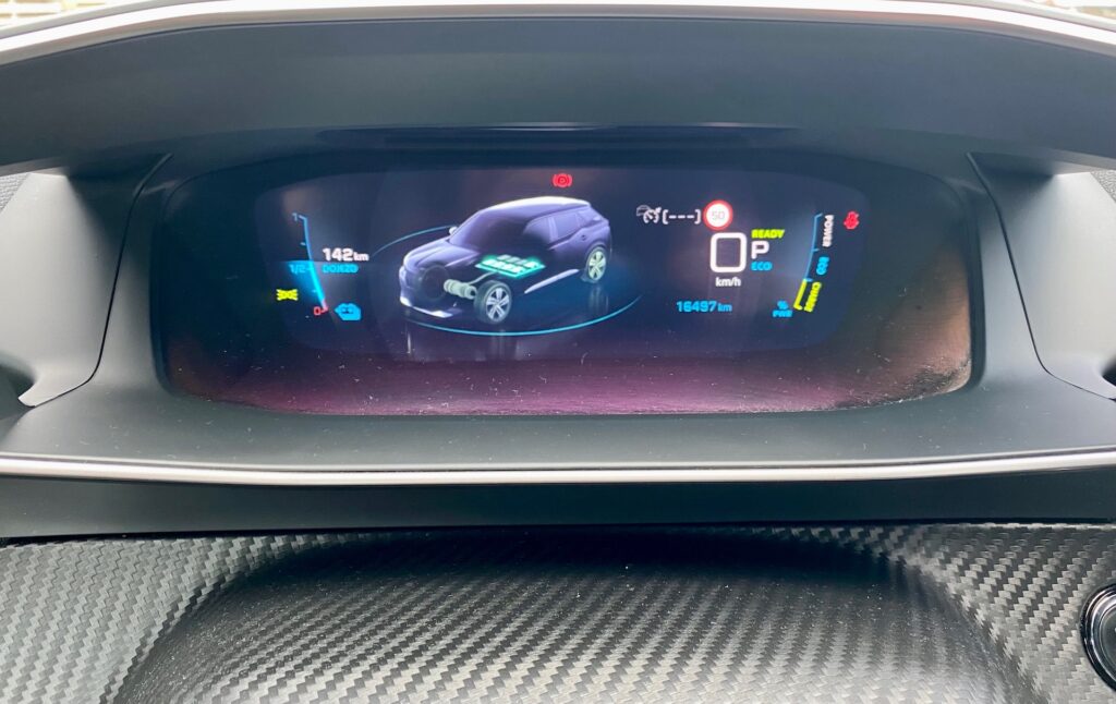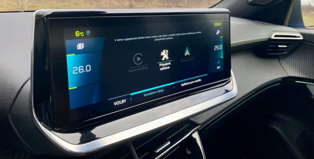 Můj první den s Peugeotem začíná na celých 80 % baterky s udaným dojezdem 240 km. Vybírám si nejkratší cestu domu s vědomím, že ještě tento den musím otočit jednou Prahu a opět dorazit zpět domu. Celkem je to cca 120 km jízdy, jejíž většina se odehrává v Praze. V autě mám puštěné topení, Apple Car Play a jízda probíhá dle platných silničních předpisů. Zbývají mi přibližně 4 kilometry domů, e-2008 ukazuje dojezd 80 km. Ať počítám, jak počítám, stále mi to nevychází. Rekapituluji cestu s tím, že je nutno brát v potaz předjíždějí, topení a jízdu do kopce. Na první cestu to není nijak marné. Přichází tedy řada na první nabíjení, ještě ten den, kdy jsem si auto přivezla, a to konkrétně za pomocí AC (Typu 2 – Menekkes). Auto jsem na veřejné nabíjecí stanici podle instrukcí našeho šéfredaktora zanechala pouze cca hodinu a půl, kdy se dobilo skoro do plna. Sluší se podotknout, že zmíněné doporučení má opodstatnění především v ohleduplnosti k ostatním elektromobilistům, v jejichž zájmu poskytovatelé nabíjecí infrastruktury postupně omezují maximální čas strávený nabíjením a minuty přes limit jednoduše zpoplatňují. Rychlost nabíjení je díky vestavěné palubní nabíječce o výkonu 11 kW tedy opravdu přívětivá. Přes noc nechávám nabíjet 2008 doma s tím, že v noci mi volají sousedi, že mi na autě něco bliká – jestli je všechno v pořádku. Je to takový paradox – když se auto nabíjí, bliká zeleně. To má indikovat, že je vše v pořádku. Jenže toto světlo je opravdu pronikavé a nedá se nijak zaklopit. Předem tedy doporučuji, abyste nabíječkou nestáli natočeni k oknům vašich sousedů.
