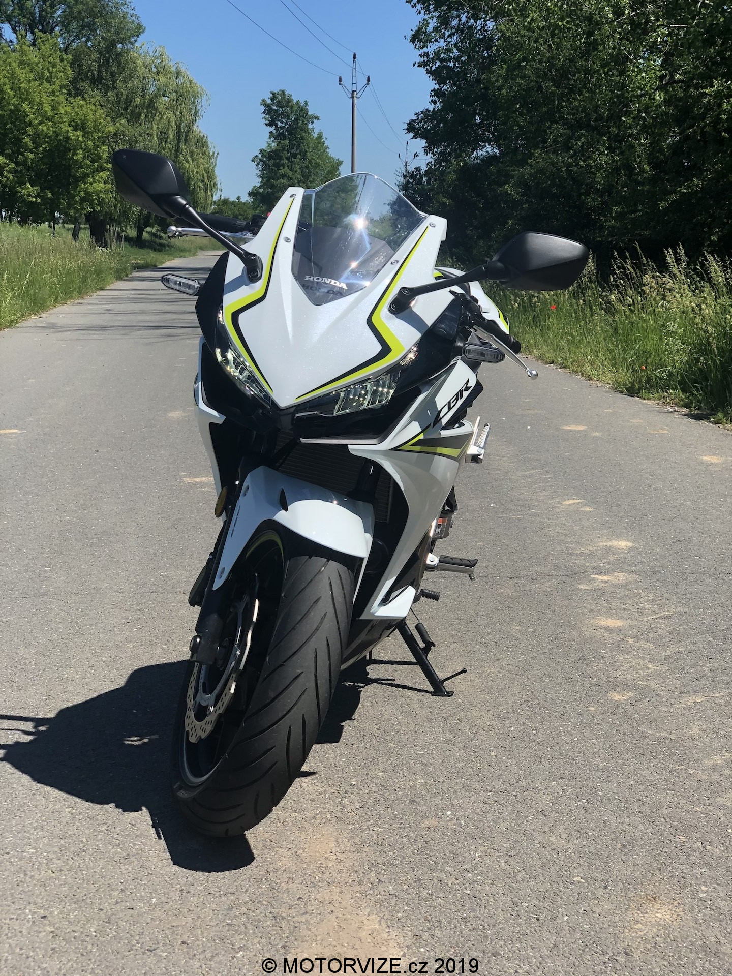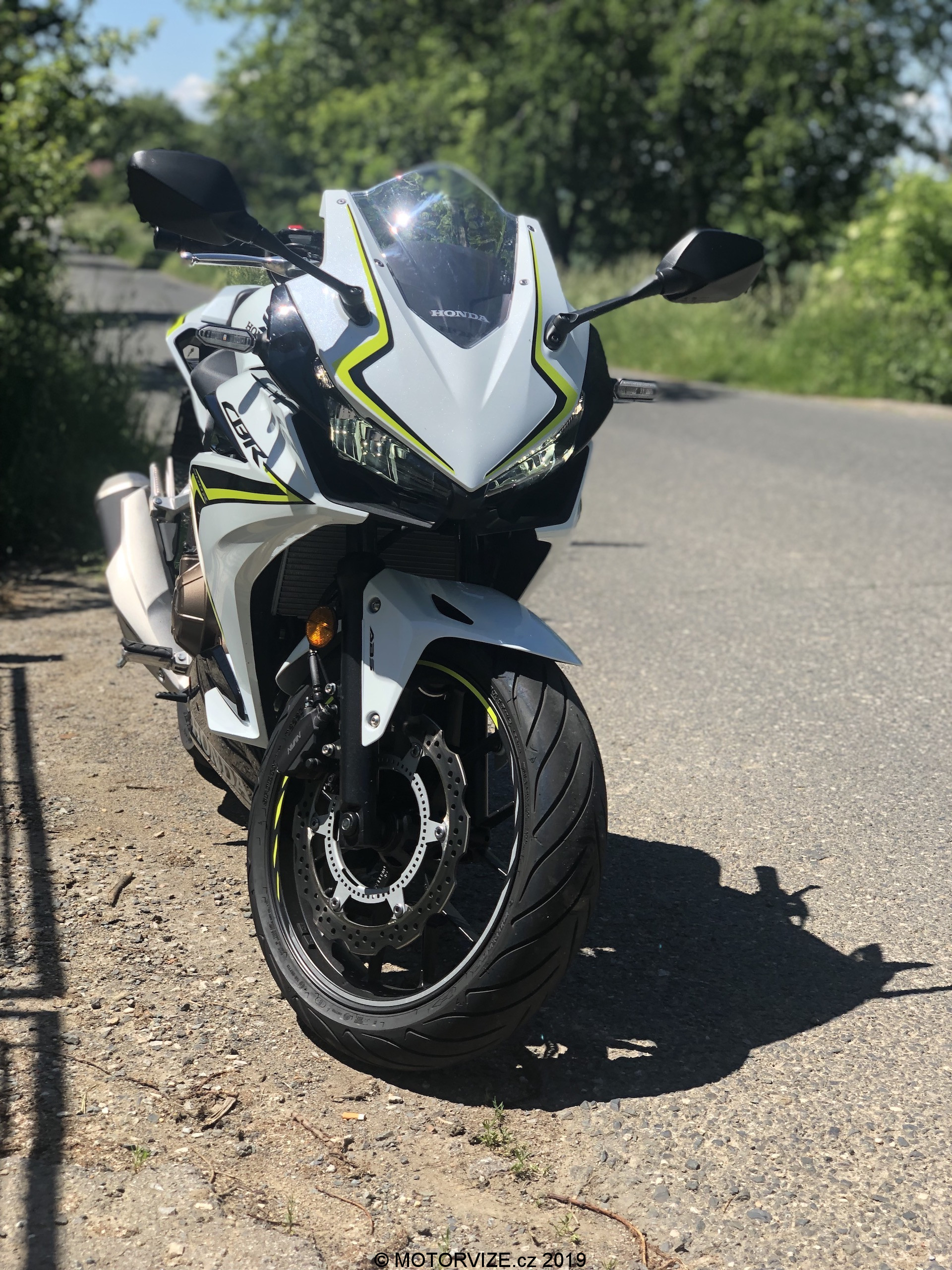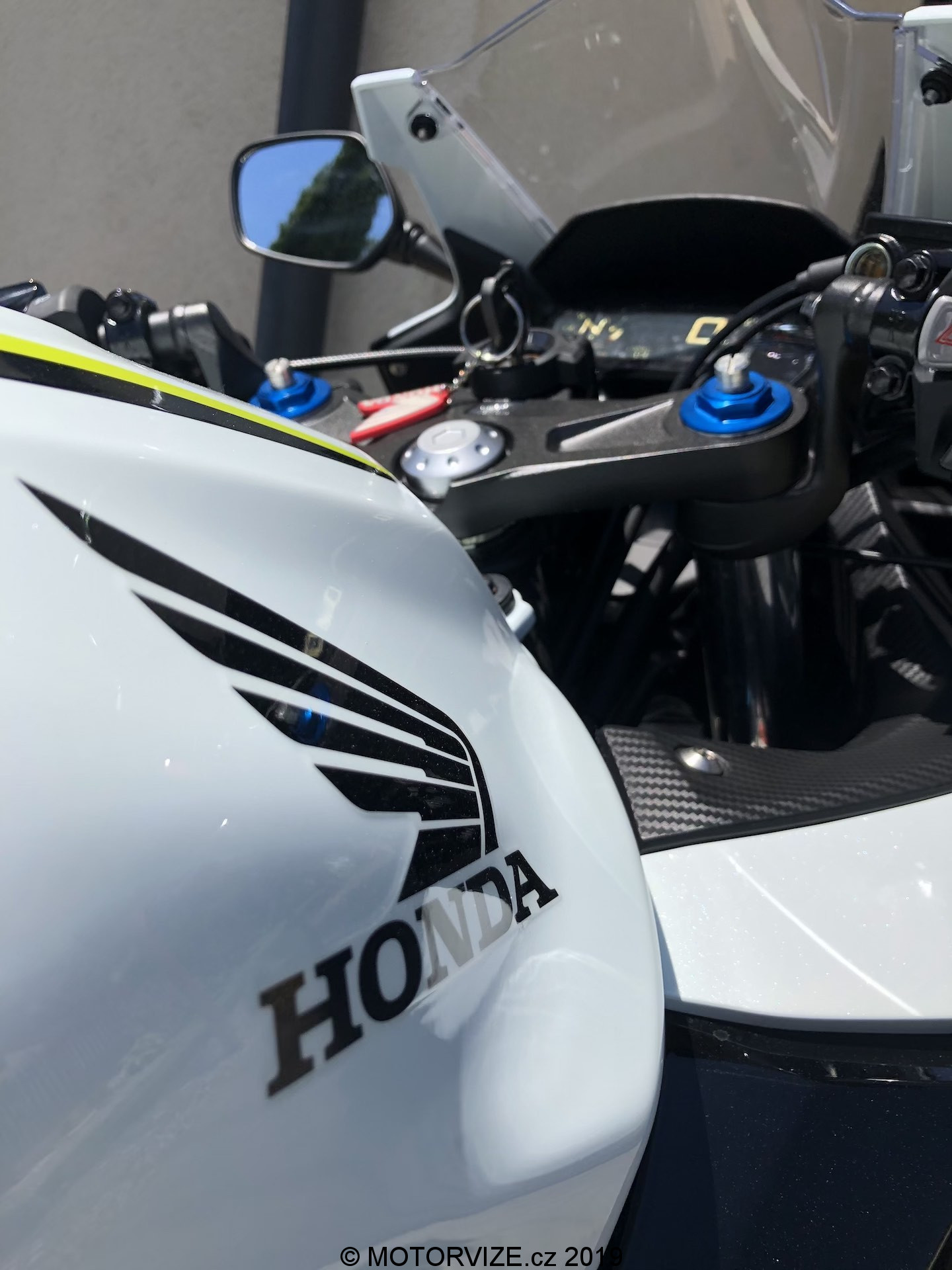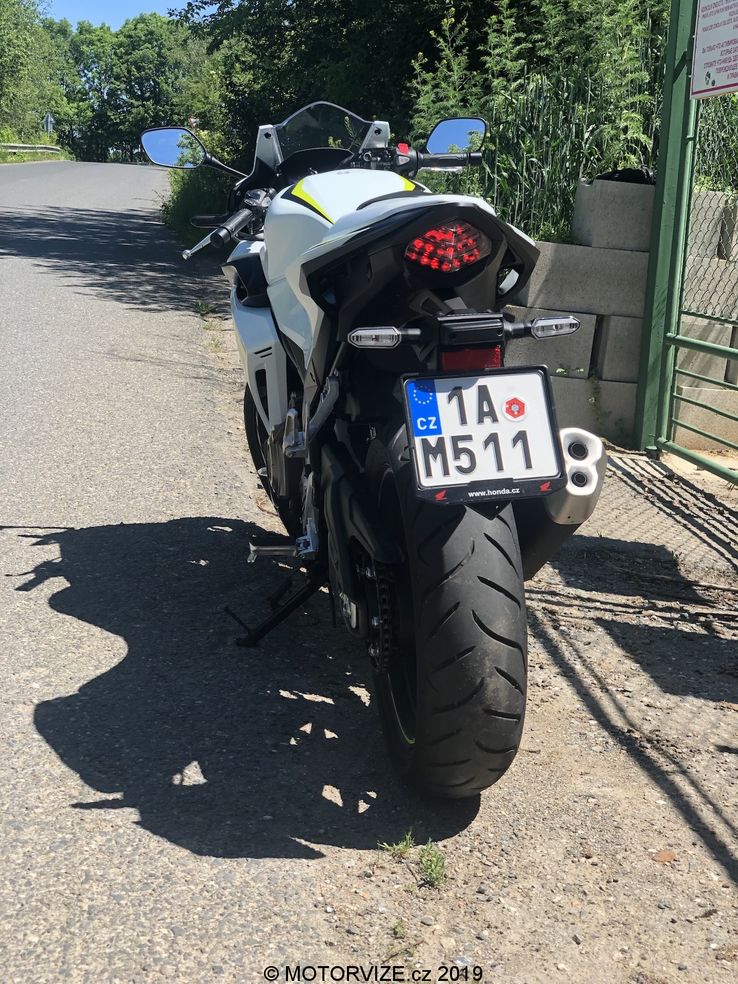 Neřekl bych, že jsem celou zimu (nebo od dob, kdy byla motorka mým jediným strojem v garáži) spal. Zároveň je ale pravdou, že mi vývoj motorek v posledních letech přijde skoro až neuvěřitelný. Jasným důkazem tohoto tvrzení je tak i dnes testovaný stroj. Když jsem jej poprvé spatřil, skoro bych i přemýšlel, zda na ní nezůstanu jen koukat a jízdu tak nějak odsunu někam do ústraní. Nebyl bych to ale vášnivý jezdec, kdybych se spokojil se statikou. Nepředbíhejme ale. Honda v současnosti k modelu nabízí tři barevné kombinace – červenočernou, černočervenou (první barva je převládající) a kombinaci převážně bílé motorky s černými a svítivě žlutými doplňky. Právě poslední jmenovaná je i ta, se kterou jsem měl nedávno tu možnost svého prvního tváří v tvář i já. Nevím, zda se mohu považovat za „úchyla“ do bílé barvy, snad ne. Uznat ale musím, že se mi bílé lakování na autech vždy líbilo. U motorek jde ale dodnes o relativně neobvyklou barvu. Možná i proto se mi dnešní zbarvení tolik líbilo. Přidejme si již zmíněné pestrobarevné doplňky a máme tu kombinaci, kterou prostě jen tak někdo nepřehlídne. A to není skvělé jen z pohledu estetiky a zaujetí všech přihlížejících. Jde také o bezpečnostní hledisko, které je u motorek sakramentsky důležité. Vždy budete raději, pokud vás ostatní účastníci provozu budou vidět dříve, a to třeba i za cenu zkrácení o jednu desetinku vteřiny. Pokud se vrátíme k designu, velmi nápadné jsou žluté proužky na předním i zadním kole. Na jednu stranu jde o decentní zpestření už tak velmi pěkné verze, na druhou stranu pak i o výrazný odlišovací prvek. V našem případě k celkovému dojmu přispívá i bíle lakovaná krytka zadního sedla, která ovšem svou nepraktičností dokáže překvapit nejednoho řidiče (třeba i mě).
