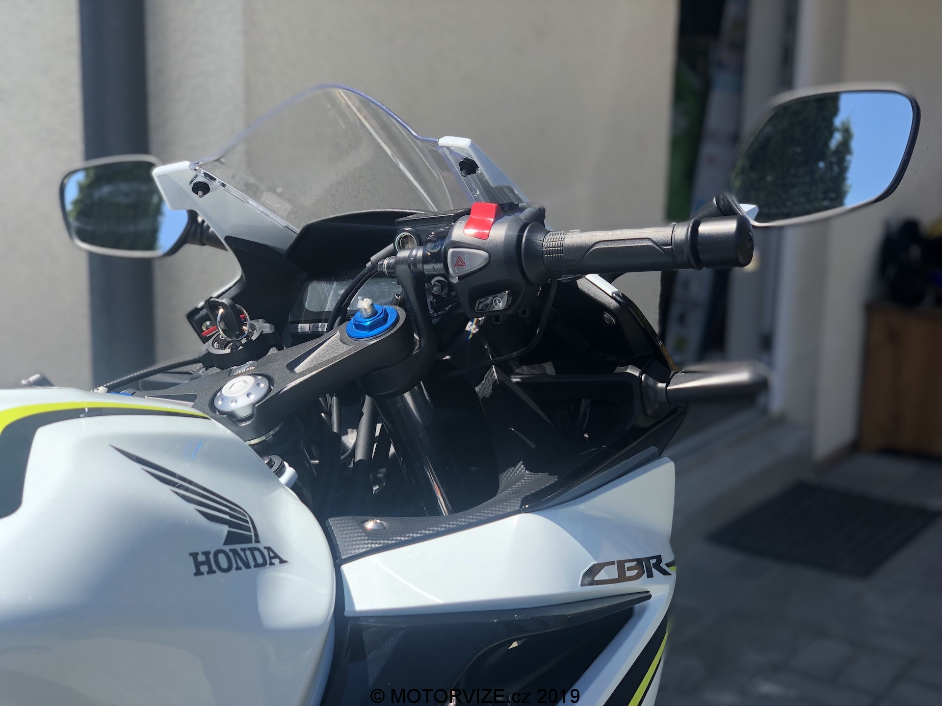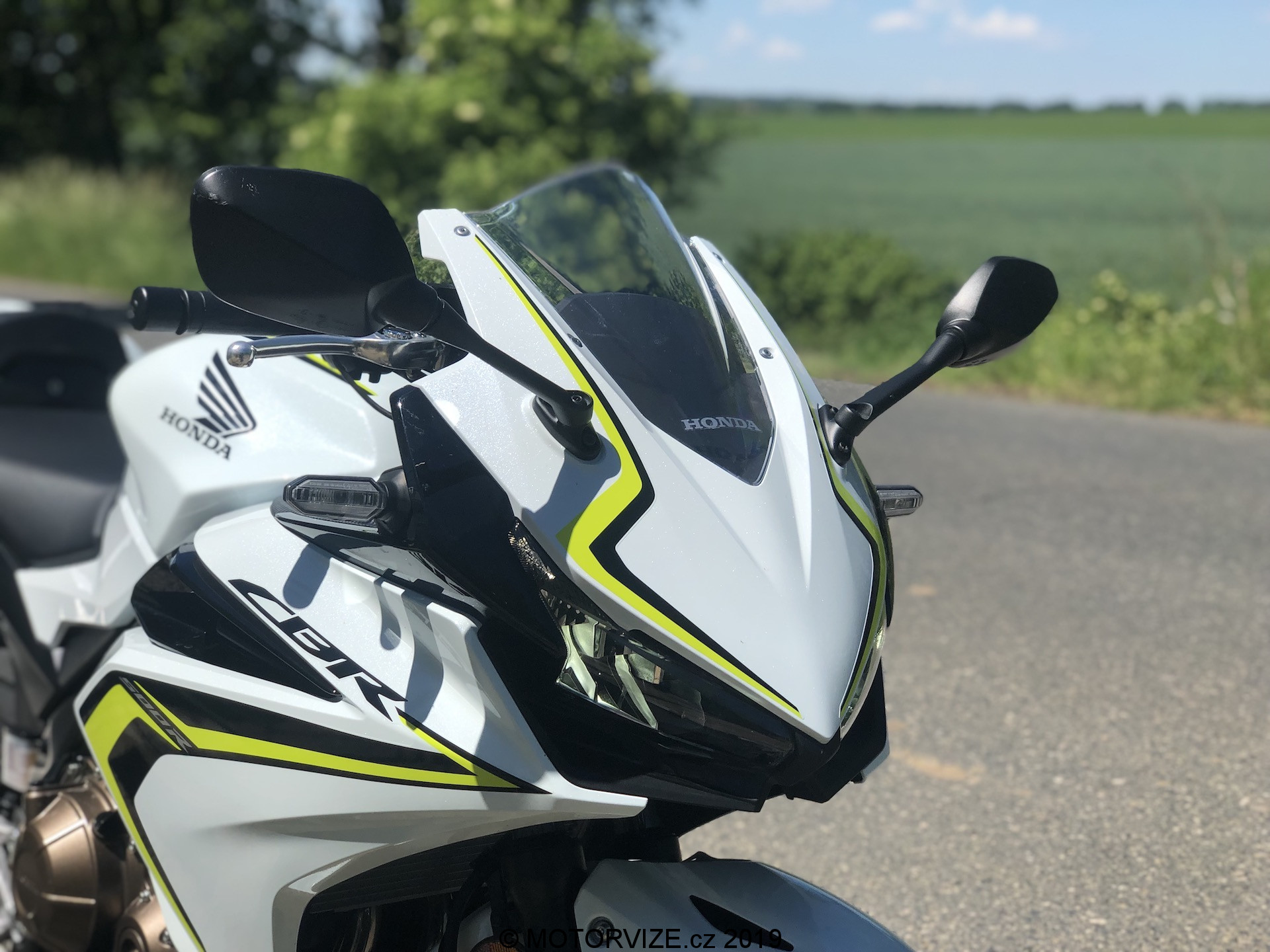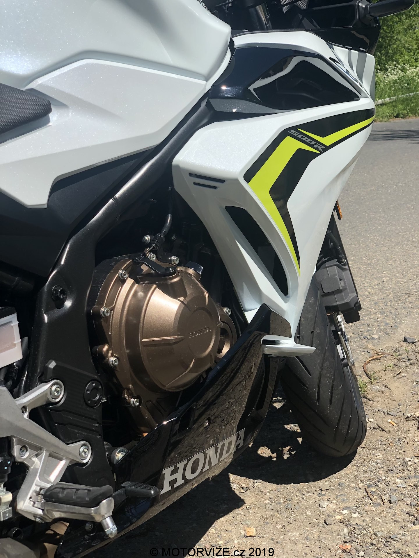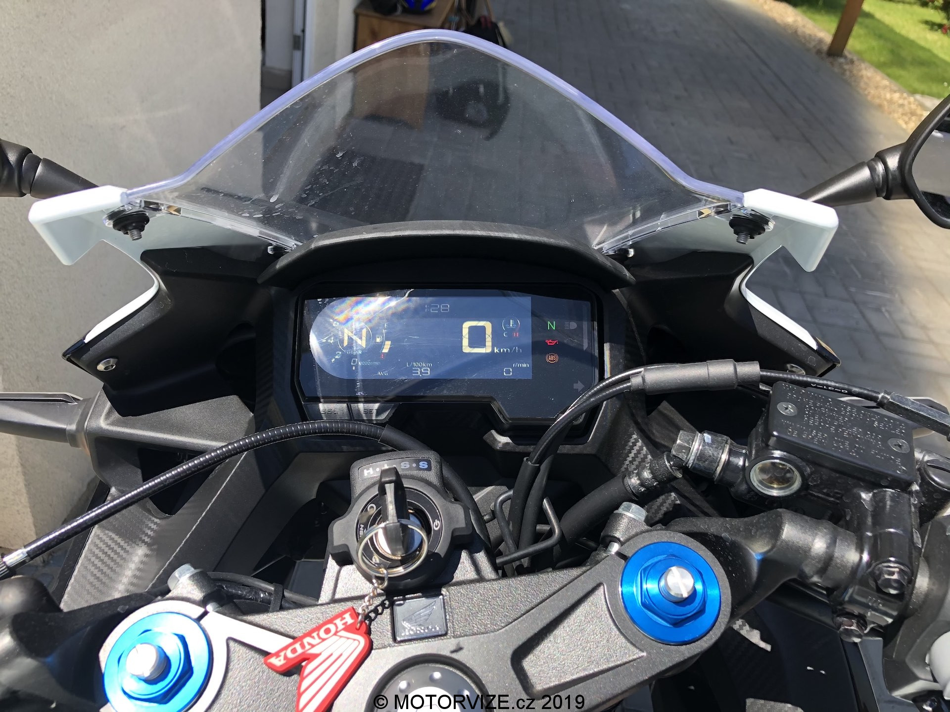 Neřekl bych, že jsem celou zimu (nebo od dob, kdy byla motorka mým jediným strojem v garáži) spal. Zároveň je ale pravdou, že mi vývoj motorek v posledních letech přijde skoro až neuvěřitelný. Jasným důkazem tohoto tvrzení je tak i dnes testovaný stroj. Když jsem jej poprvé spatřil, skoro bych i přemýšlel, zda na ní nezůstanu jen koukat a jízdu tak nějak odsunu někam do ústraní. Nebyl bych to ale vášnivý jezdec, kdybych se spokojil se statikou. Nepředbíhejme ale. Honda v současnosti k modelu nabízí tři barevné kombinace – červenočernou, černočervenou (první barva je převládající) a kombinaci převážně bílé motorky s černými a svítivě žlutými doplňky. Právě poslední jmenovaná je i ta, se kterou jsem měl nedávno tu možnost svého prvního tváří v tvář i já. Nevím, zda se mohu považovat za „úchyla“ do bílé barvy, snad ne. Uznat ale musím, že se mi bílé lakování na autech vždy líbilo. U motorek jde ale dodnes o relativně neobvyklou barvu. Možná i proto se mi dnešní zbarvení tolik líbilo. Přidejme si již zmíněné pestrobarevné doplňky a máme tu kombinaci, kterou prostě jen tak někdo nepřehlídne. A to není skvělé jen z pohledu estetiky a zaujetí všech přihlížejících. Jde také o bezpečnostní hledisko, které je u motorek sakramentsky důležité. Vždy budete raději, pokud vás ostatní účastníci provozu budou vidět dříve, a to třeba i za cenu zkrácení o jednu desetinku vteřiny. Pokud se vrátíme k designu, velmi nápadné jsou žluté proužky na předním i zadním kole. Na jednu stranu jde o decentní zpestření už tak velmi pěkné verze, na druhou stranu pak i o výrazný odlišovací prvek. V našem případě k celkovému dojmu přispívá i bíle lakovaná krytka zadního sedla, která ovšem svou nepraktičností dokáže překvapit nejednoho řidiče (třeba i mě).