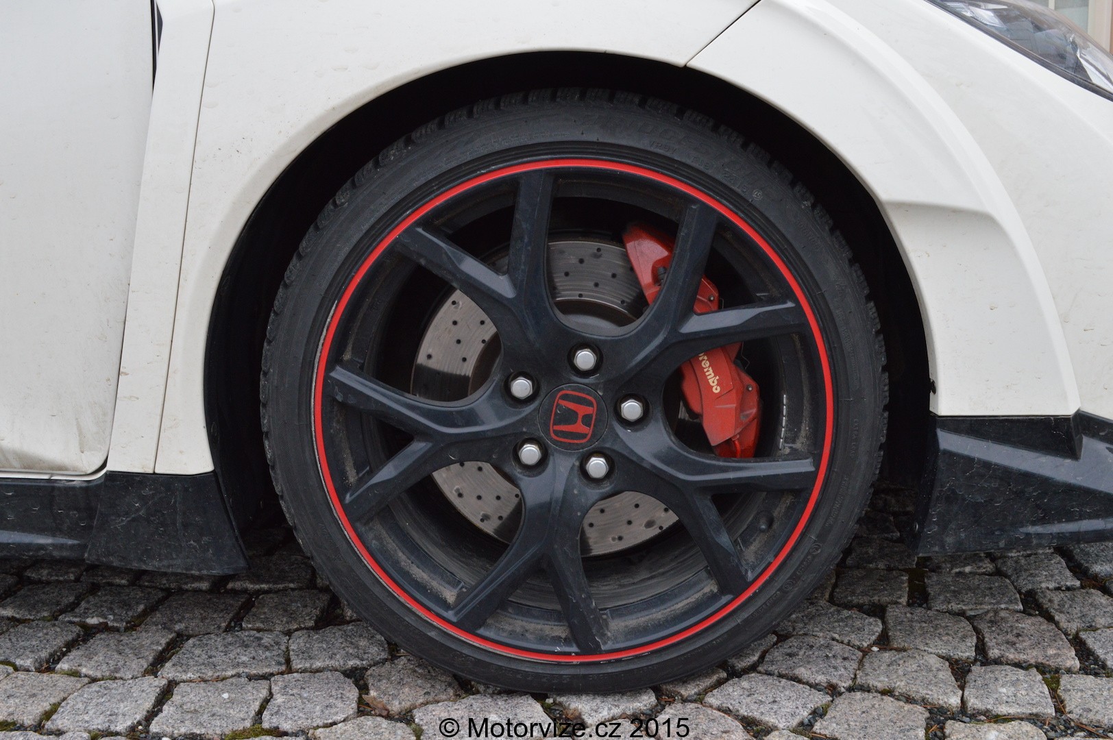 Honda věnovala vývoji nového Type-R opravdu velké úsilí, důkazem je zpoždění oproti standardnímu Civicu zhruba tři roky, po které se inženýři věnovali jen této verzi. Na konci stojí vůz, který upoutá nejen svým vzhledem, který je opravdu „brutálně“ sportovní, ale i mnohými technickými inovacemi. Pod jeho kapotou šlape, jak už jsme zvyklí, dvoulitrový čtyřválec s technologií VTEC. Ten je navíc v poslední generaci posilněn o turbo, které mu dodává výkon úctyhodných 310koní a točivý moment 400Nm. Háčkem pak zůstává přenos síly na hnanou nápravu, která zůstala opět pouze jedna. Odpovědí téměř závodního Civicu je samosvorný diferenciál s šikmým ozubení, kterým prý výrobce docílil lepší citlivosti a zlepšení času na severní smyčce Nordschleife o 3 vteřiny, což není úplně málo. Překvapí pak také drobnost, jakou jsou pneumatiky, které byly připraveny na míru se společností Continental a jsou určeny výhradně pro tento vůz. Vysvětlení Hondy je jednoduché: „Žádné jiné pneumatiky nebyly pro Type-R prostě dost dobré.“. Po přečtení produktových informací rozhodně očekávání z takového auta vzrostou snad u každého. Já jsem zůstal chladný, zejména protože jsem nevěřil tak obrovskému výkonu přenášenému pouze na přední nápravu. Tak už ale rychle do provozu.