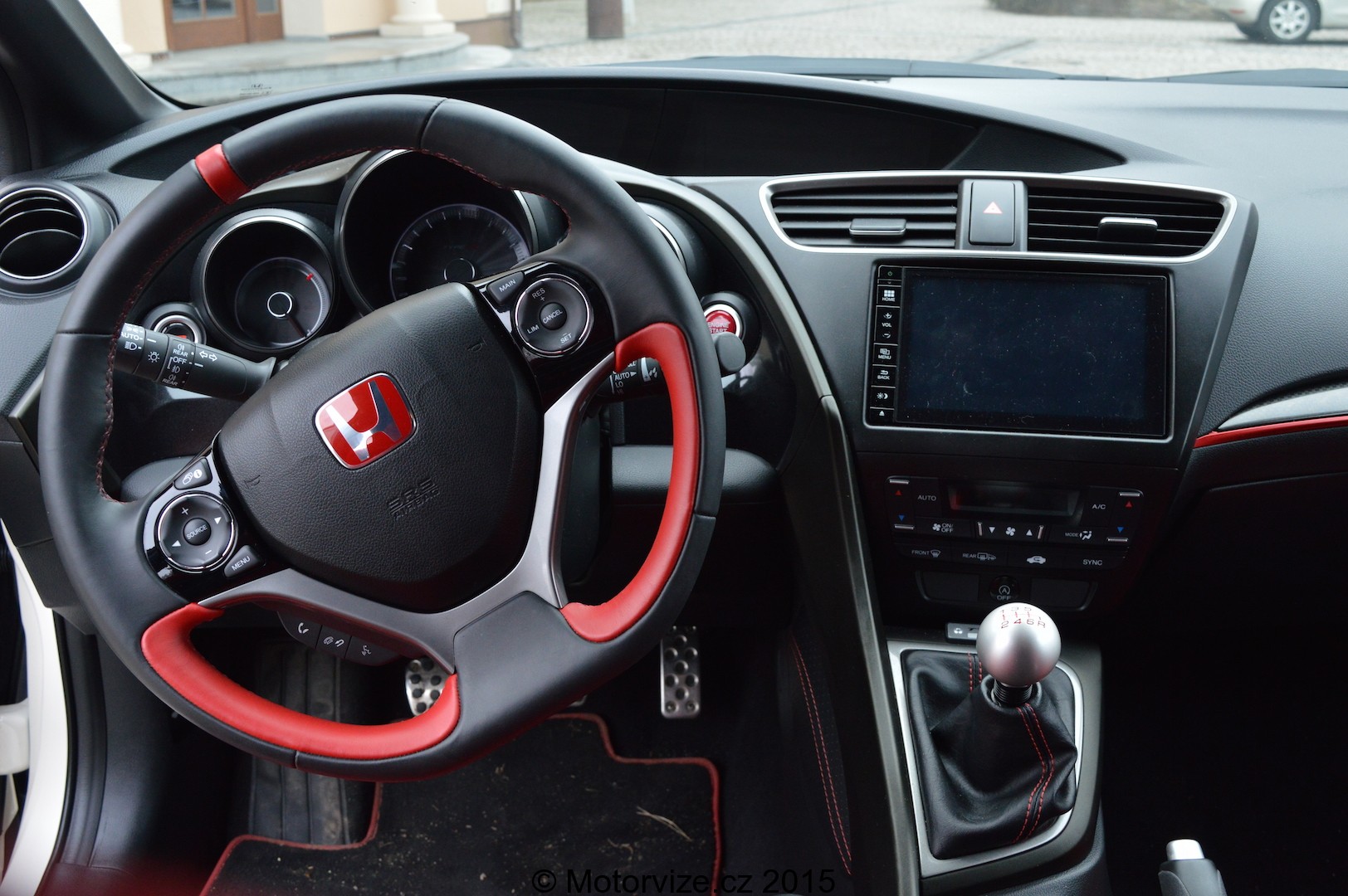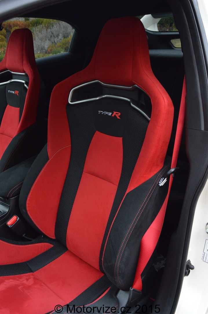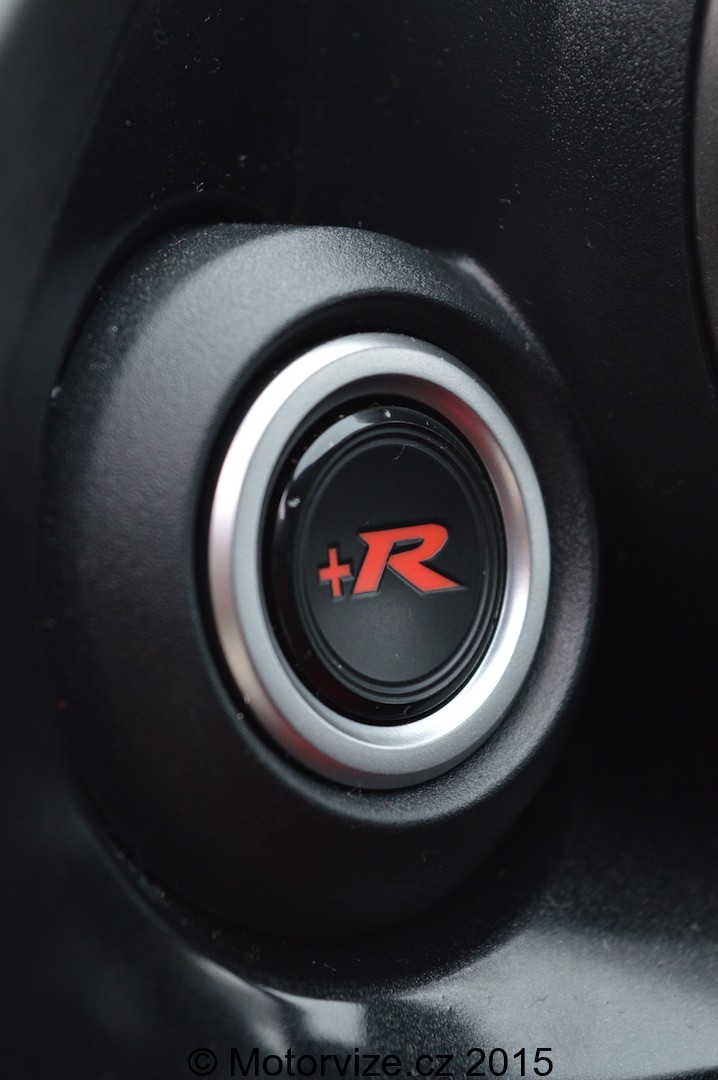 Ještě před nastartováním se musím pozastavit u prvního usednutí za volant. První, co opravdu překvapí, jsou skořepinová sedadla, která by se dala nazvat možná až závodními. Jednoznačně se jedná o to nejlepší, v čem jsem kdy v dostupném sportovním autě seděl. Trošku bych se možná jen obával, co budou říkat na delší cestu naše záda, kupodivu ani ta jim nedělá žádný problém. Jedinou překážkou je výstup z auta, který je díky výraznému bočnímu vedení o něco těžší než u konvenčních sedadel. Ani se nestíhám příliš věnovat systémům palubní zábavy, rychle si jen přepnu rádio na svou oblíbenou stanici, nastavím cíl své cesty v navigaci a rovnou startuji. Říká se, že první seznámení je tím nejdůležitějším při poznávání lidí, podobně je tomu i u aut a prvním zvukem na sebe auto hodně prozradí. Civic na sebe prozrazuje závodní charakter. Zároveň se jedná o první chvíli, kdy jsou má nízká očekávání na pochybách. Řadím jedničku a vyrážím. Spojka reaguje přesně tak, jak ve sportovním autě má. Větším překvapením je samotné řazení. K zařazení prvního stupně mi stačí dle mého názoru okolo 2cm a stejně tak je tomu i u ostatních převodových stupňů, potěšením jsou i kovové dorazy- opět vyloženě sportovní charakter. Zpět ale do běžného provozu, kde závodní vlastnosti vozu nemůžeme tak úplně ověřit. První kilometry nasvědčují dostatku výkonu v celém spektru otáček a rychlostí. Na druhou stranu mi ale vůz vůbec nepřipadá přehnaně tvrdý. Každá sebemenší díra v silnici je sice cítit, ale přeci jen jsem to čekal horší. Při běžném pražském provozu si stačím v interiéru hrát jen s hlasitostí a teplotou, ostatní funkce vozu jsou mi zatím poměrně vzdáleny. Všímám si v interiéru ovšem jednoho „magického“ tlačítka s přiléhavým nápisem „R+“. Říkám si, že si ze mě Honda asi dělá srandu a chce mi tím naznačit, že nebezpečný režim, který jen lehce pozmění elektroniku, si můžu zapnout pouze na uzavřené trati. Jak už jsem na začátku řekl, dopředu jsem si přečetl produktové informace, ve kterých opravdu stálo doporučení typu: „Tohle zapínat jen na uzavřené trati.“, které později, až se nechám zlákat, pochopím.
