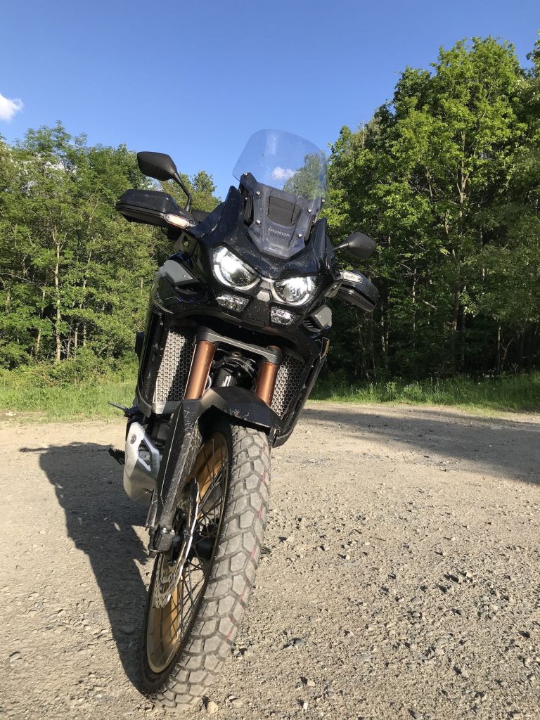 Afrika je a vždycky byla perfektní univerzál na expedice cestou i necestou, a proto jsem ve vymezeném týdnu hodlal pořádně otestovat. Naplánoval jsem dlouhý výlet až do jediné daleké momentálně přístupné zahraniční destinace – na Moravu. Na trase jsem zkusil vše od ne zrovna oblíbené jízdě po dálnici, která díky posunu harmonogramu hned první den vyšla na noc, přes uhánění krásnýma okreskama, až po jízdu po polňačkách a v pořádným terénu, tím nemyslím zmíněnou D1. No a protože je Afrika určena na pohodové jarní vyjížďky i na expedice, jezdil jsem jak na lehko, tak s plnou naloží – s kuframa a s baťůžkem.