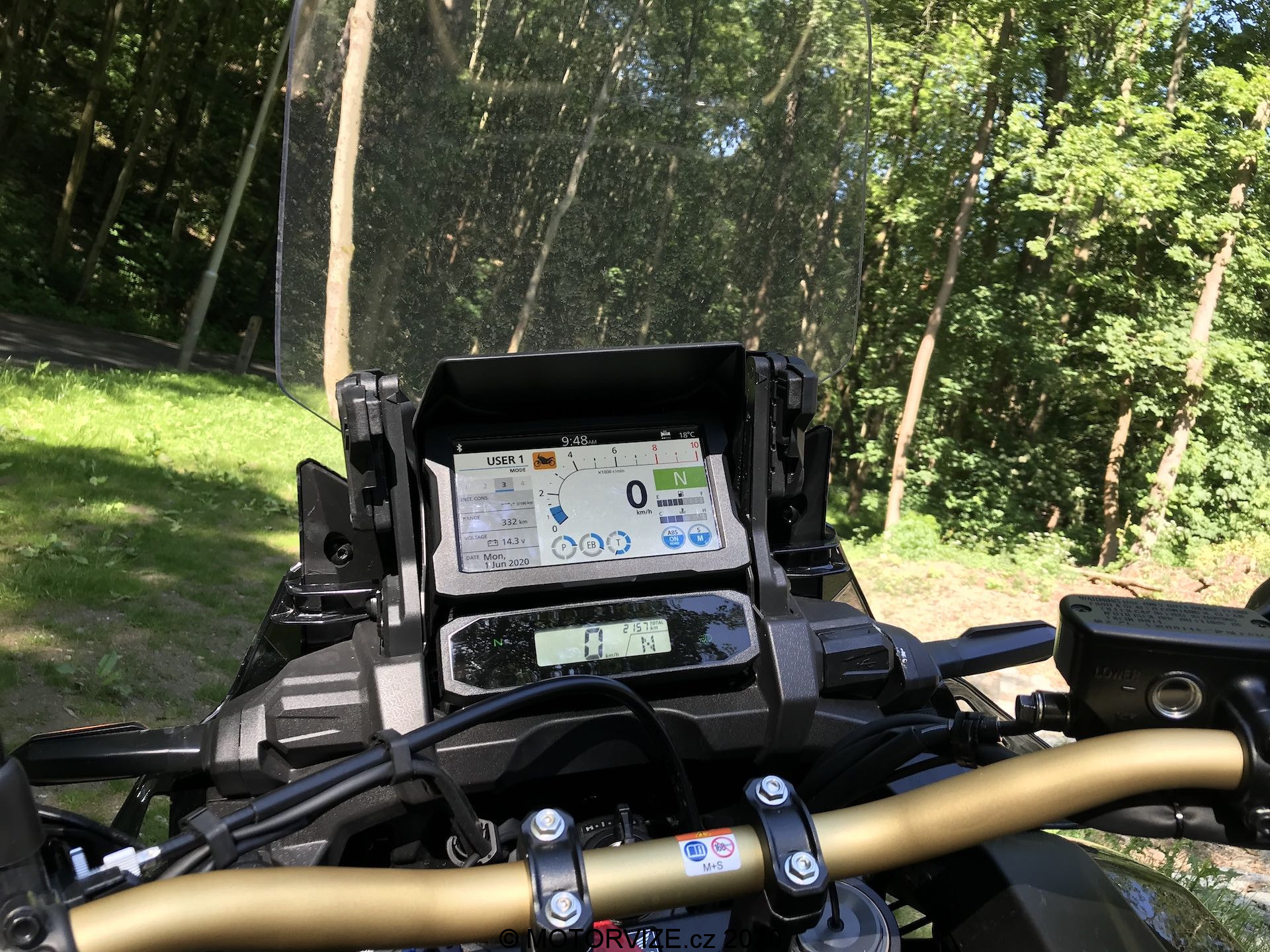A konečně začínám polykat kilometry. Řadím jedničku, pomalu otáčím plyn a pouštím spojku. Dvouválec splňuje normu EURO 5. Hned na úvod se sluší zmínit, že se hodně povedl. V porovnání s předchůdcem má o 7 % vyšší maximální výkon, o 6 % více točivého momentu a je mnohem silnější v celém rozmezí otáček. Sice to není ten nejsilnější adventure na planetě, ale upřímně řečeno víc výkonu ani nepotřebujete. Hned při rozjezdu si všimnete, že posez je lehce sportovní, hodně pohodlný a i když sedlo na první pohled trochu připomíná lavici z krosek, je překvapivě pohodlné. Nádherně vyladěný je i zvuk motoru. V pohodě táhne i hluboko pod 2000 otáček. Vezmete za plyn, motorka se nádherně rozduní a začne bublat. Motor se plynule roztáčí a skvěle dávkuje výkon. Nad 2500 otáček už krásně ožije a kolem 4500 už táhne tak, že jste rádi za kontrolu trakce. Okamžitě si uvědomíte, že pod sebou máte dva pořádné hrnky.