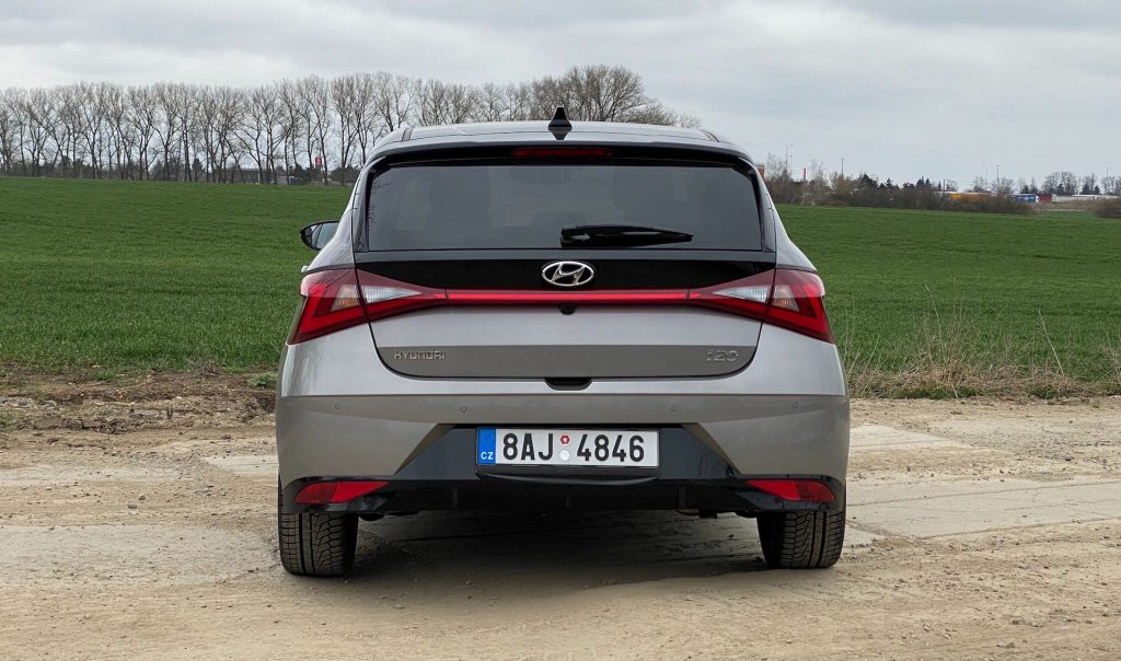 Při prvním pohledu na námi testovanou i20 by vás dokonce mohlo napadnout, že půjde o lehce sportovnější verzi, protože jsou její křivky velmi ostré. Navzdory tomu je tento kousek věnován hlavně komfortu, ekonomice a ekologii. Jako první mě zaujala moderní přední maska. V přední části najdeme detaily, které trochu naznačují jakési průduchy ke kolům. Pouze to ale takto vypadá a žádné chlazení zde není. Dalším moc povedeným prvkem jsou světlomety. Nechybí full-LED technologie a celkově potěší, jak příjemně navazují právě na černě lakovanou masku chladiče. Kombinace šedivého nebo chcete-li bronzového lakování, které od sloupků až na střechu přechází v černou, a to včetně zrcátek, byla opravdu geniální volbou. Zezadu si všimneme kontroverzních, ale přesto příjemně designových koncových světel. Zadní světlomety jsou propojeny červenou linkou, ale bohužel nesvítí celý pruh. Za jednu z nejzajímavějších vychytávek považuji krytku palivové nádrže umístěnou na levém boku auta těsně pod světlem, kde by ve hře na schovávanou měla výhru jasnou.