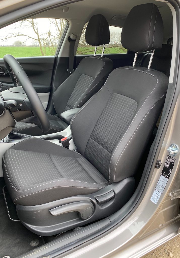 Na úvod hodnocení interiéru je potřeba zasadit i20 do kontextu současných segmentů. Ač se to možná nemusí zdát, pořád se nacházíme mezi malými vozy, a tak je možná pochopitelné, že ať sáhnu kamkoli, nemohu najít měkčený plast. To možná kazí první dojem, v němž interiér působí při nejmenším hodně moderně, a to třeba díky zcela nové digitální přístrojové desce. Textilní sedačky na atraktivitě bohužel též nepřidávají. Částečně mi mé dojmy kompenzuje dvoubarevné provedení interiéru. Kombinace světlé (béžové) s klasickou černou působí sice trochu výstředně, ale mně to v zásadě vůbec nevadí. Vraťme se ale k displejům. Přístrojová deska nabízí hned několik možností zobrazení, které se mění v návaznosti na volbu jízdních režimů. Od přístrojovky přechází panel k displeji infotainmentu a i ten nabízí poslední verzi dostupnou u značky Hyundai. A nelze mu toho moc vytknout. Snad jen zvuky přírody překvapí, ale o tom jsme se zmiňovali už u nedávného testu i30. Mile mě pak také překvapil vnitřní prostor, který i20 nabízí, protože oproti mé i30 nedošlo k žádnému úbytku, dokonce je v i20 možná o trochu více místa na zadních sedačkách, to se ale vcelku logicky děje na úkor zavazadlového prostoru, který ale na poměry třídy i tak považuji za dostačující.