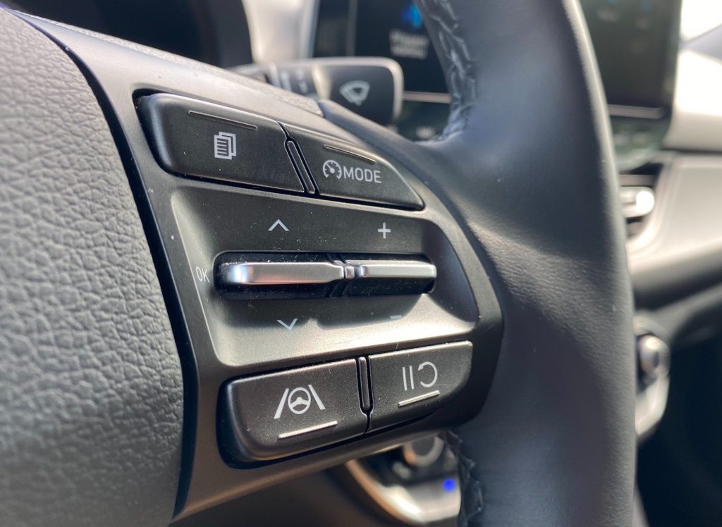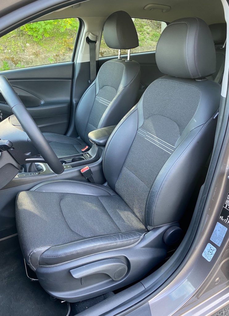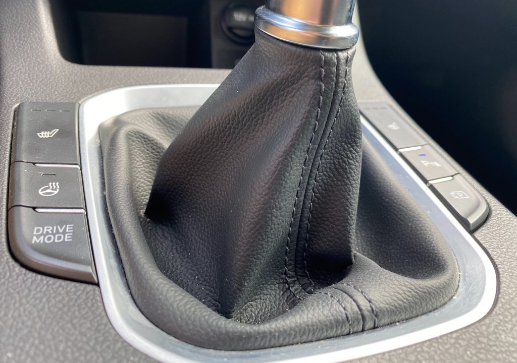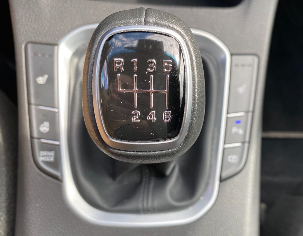 Interiérově je auto na velmi slušné úrovni – v první řadě co se týče vzhledu, a v druhé, co se týče jeho funkčnosti. Posed je také velmi příjemný, neb bočnice jsou velikostně akorát a zbytečně vás do sedačky nezmáčknou. Klasická kombinace látky a koženky nikdy neurazí, jen možná v létě na holou kůži nebude nejpříjemnější. Multifunkční volant je na první pohled celkem robustní, ale díky vykrojení na ruce se příjemně drží. Velmi mi vyhovovala tlačítka ve tvaru malých páček, které se za jízdy lehce ovládaly, a tak nebyly nutné zásahy přímo na displeji. Velký displej použitý v rámci polodigitální přístrojové desky mění barvu s jízdními režimy a ukazuje vše, co řidič momentálně potřebuje. Otáčkoměr, rychlost, značky a dojezd. Nic víc není potřeba a to Hyundai respektuje. Displej pak doplňuje několik analogových ukazatelů po pravé a levé straně. Ačkoliv mi toto řešení vůbec nevadí, musím uznat, že plně digitální přístrojové desky (bez ohledu na funkčnost) u konkurence vypadají poněkud moderněji a luxusněji. Uprostřed středového panelu pak najdeme manuální šestistupňovou převodovkou a za ní odkládací prostor, který je v některých případech možná moc malý na velikost dnešních telefonů. Velmi se mi líbilo klasické ovládání dvouzónové klimatizace s použitím otočných ovladačů na nastavení teploty a s přehlednými tlačítky, to už se u moc aut nevidí. Z palubní desky pak vprostřed vystupuje klasický (plovoucí) displej, přes který se dá ovládat téměř všechno a u kterého musím pochválit především odezvu. Tato odezva byla velmi rychlá i při jeho čištění a přípravě na focení, kdy se mi místo písniček z CarPlay začal ozývat šum deště. Na uklidnění jsou přednastavené zvuky přírody skvělou funkcí, ještě jsem ji v žádném autě neviděla. Jinak systém palubní zábavy u Hyundai působí jednoduchým dojmem, a to vlastně ani není špatně, i když mě v současnou chvíli nenapadá nic konkrétního, co bych měla v pozitivním ale ani negativním duchu připomenout.
