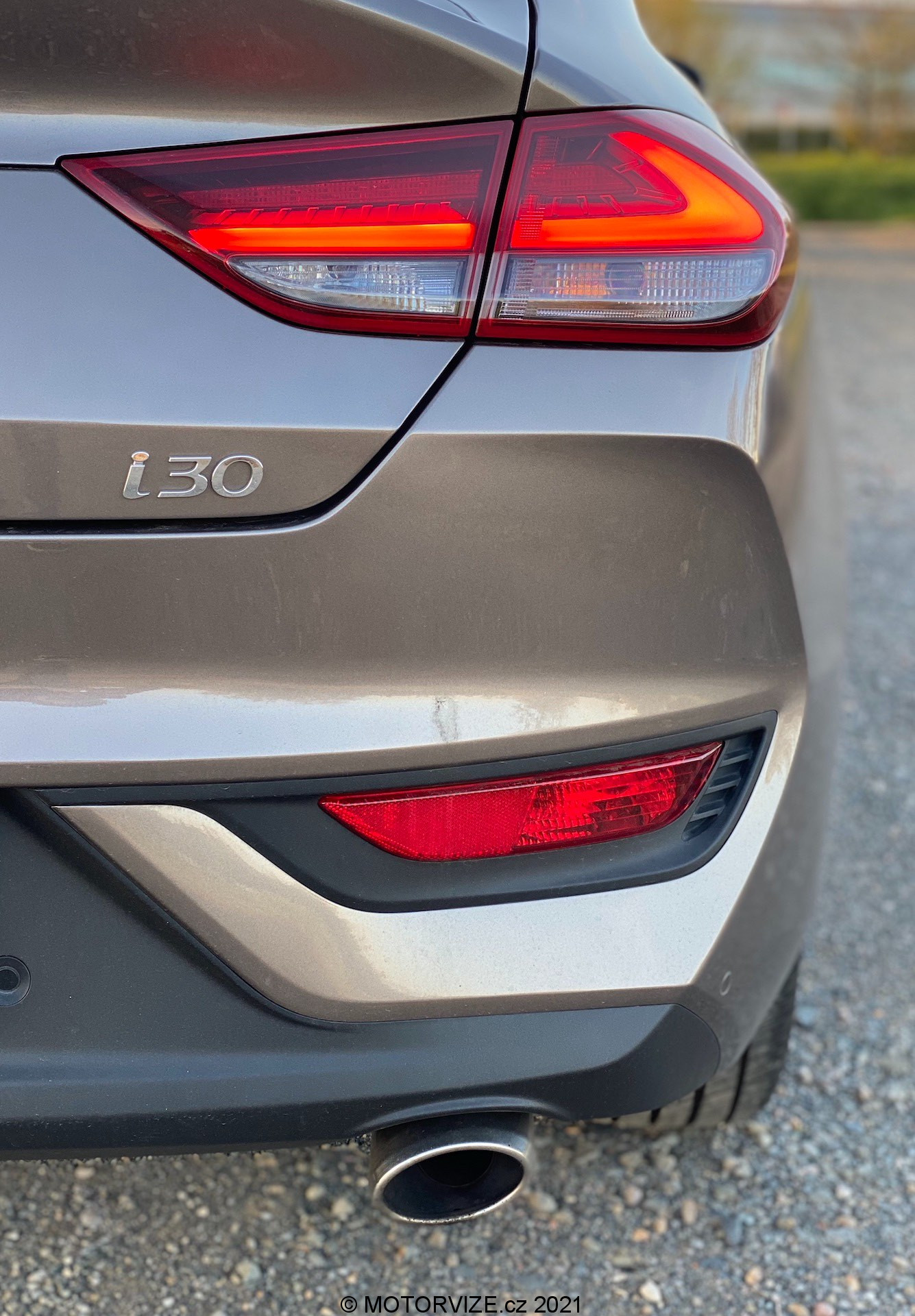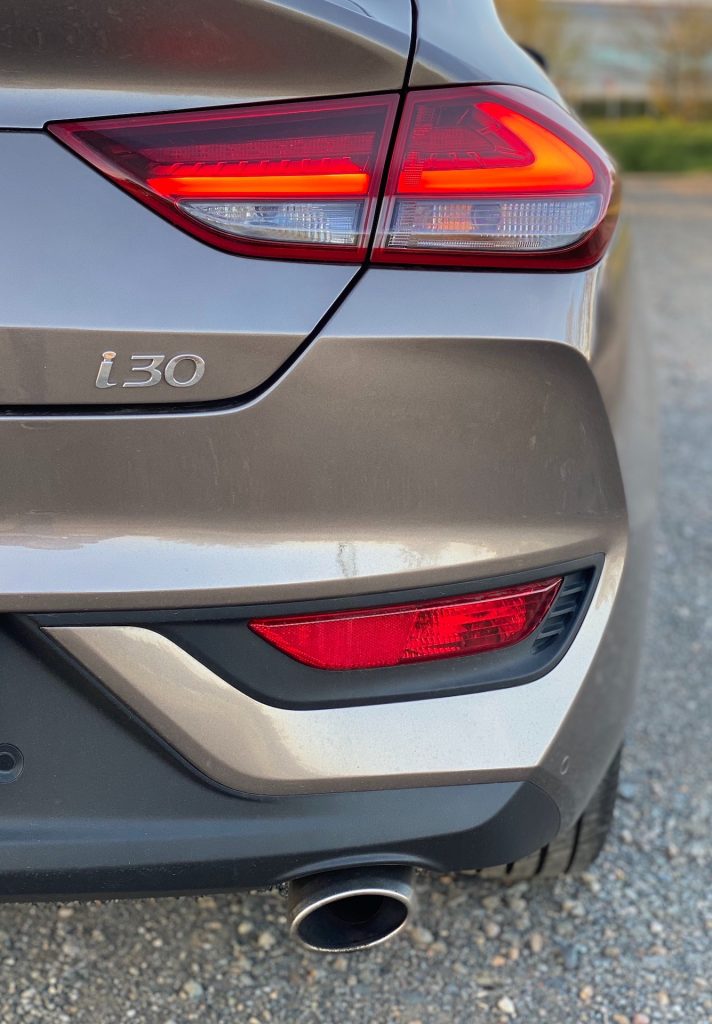 Na první pohled se mi vozy značky Hyundai nikdy moc nelíbily, a tak jsem byla upřímně zvědavá, jaký modernizovaný fastback bude. K mému překvapení musím říct, že automobilka prošla hodně velkým vývojem, neb na první pohled nová i30 nevypadá vůbec špatně. Trochu s nadsázkou Fastback na první pohled vypadá jako levnější verze Mercedesu CLA. Teď je ovšem otázkou, zda by byl Hyundai tak dobrý, nebo Daimler zaostal. Sluší se ale podotknout, že karoserie typu fastback je v nižší střední třídě trochu raritou. Donedávna výrobci dodávaly na trh kromě hatchbacků a praktických kombi maximálně tak sedany, pětidvéřová karoserie se splývavou zádí byl výsadou tak maximálně mladoboleslavské Škody Auto a Octavie s Rapidem. Hyundai tak s poslední generací i30 některým konkurentům trochu vypálil rybník. To ale nepředbíhejme. V rámci modernizace jsou změnou poznamenané full-LED přední světlomety, které dostaly oproti předchozí verzi dravý ráz a sestávají z malých trojúhelníků do jednoho velkého. Auto je prolisem tvarované do dokonalosti a zadní světlomety jsou s ostrou hranou tvarované jako u „závoďáků“. Vzhled již tak dobré agrese opět trochu dehonestuje malý výfuk na pravé straně, kde by rozhodně vypadala dvojitá koncovka nebo možná dokonce i žádná. Možná jen škoda zvolené barevné kombinace a výbavy. Chápu, jak to v Hyundai mysleli. Zlatavá metalíza v kombinaci s výbavou Style má působit především luxusním dojmem. Na jednu stranu se to daří, na druhou mám ale pocit, že přeci jen vypadá lehce fádne – tak, že nemohou úplně na 100 % vyniknout všechny líbivé designové prvky a shodou okolností navíc takhle vypadá Fastback jako výrazně menší kousek než třeba nedávno testovaná verze kombi ve stříbrné barvě a černými zrcátky. Jinak ke vzhledu nemám moc co vytknout, protože je to opravdu na pohled hezké vozítko s propracovaným designem, skvěle zapadající do dnešní kultury aut.