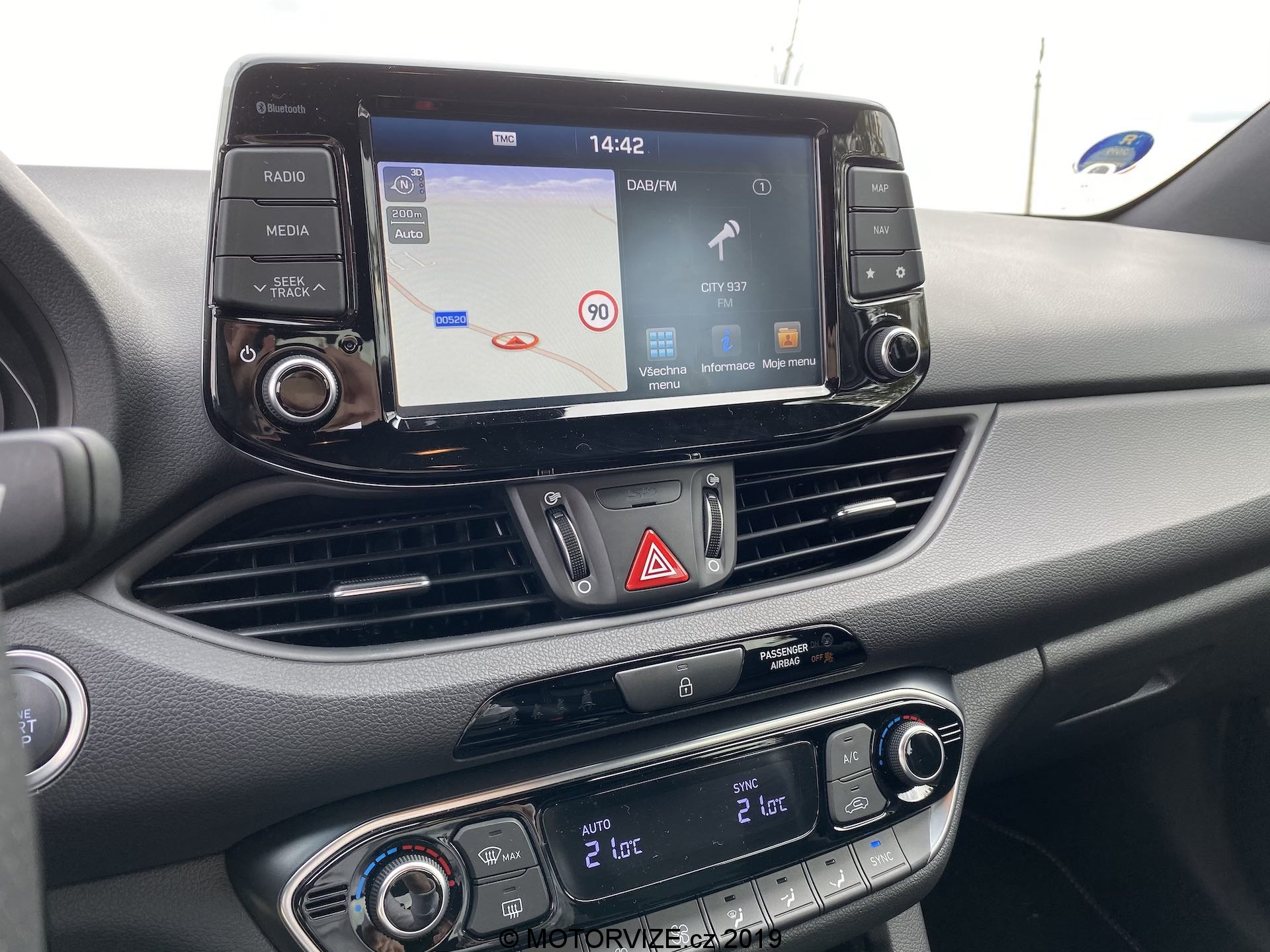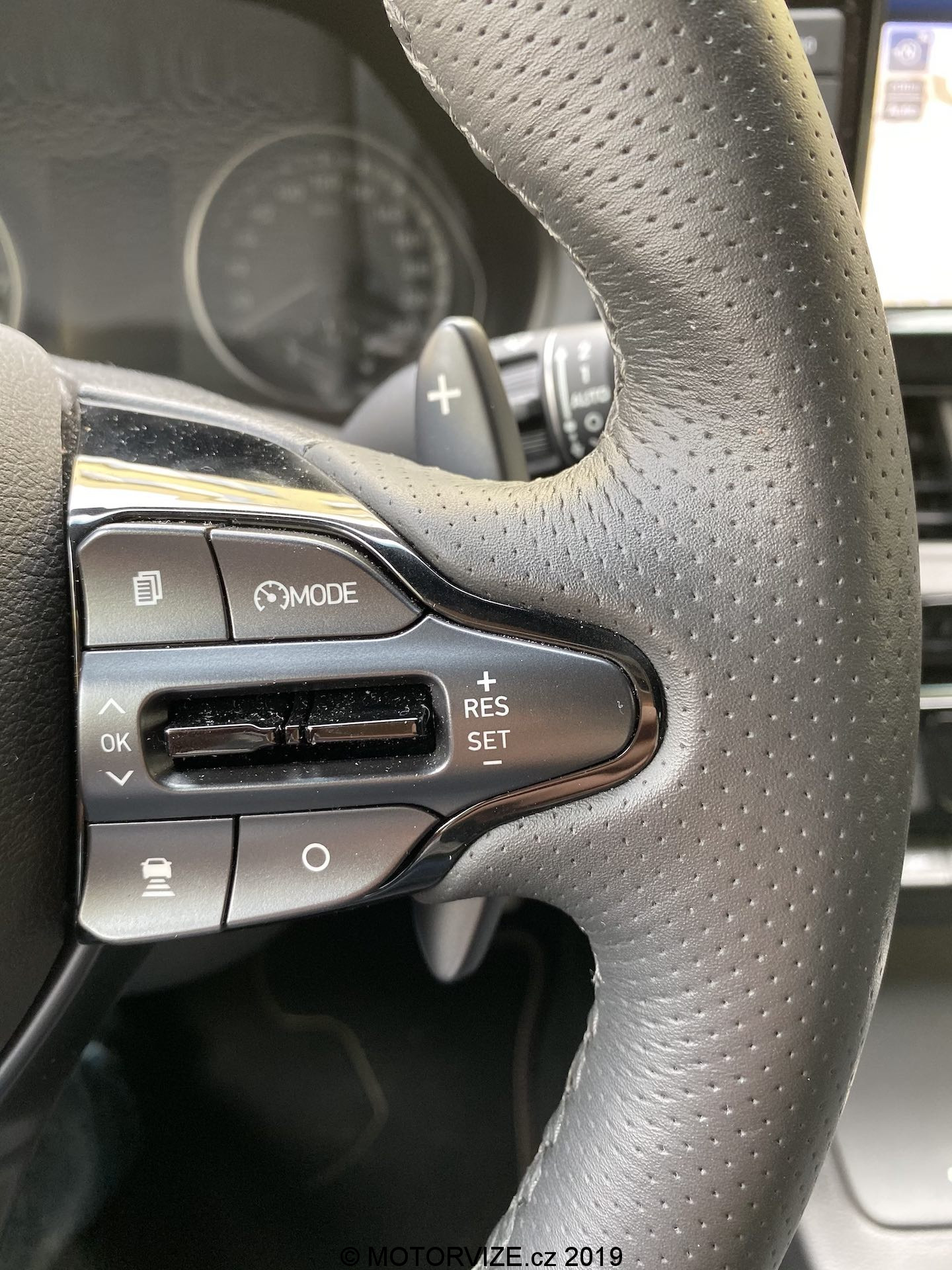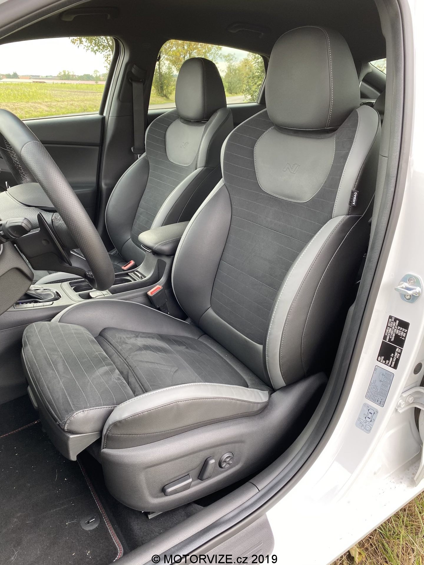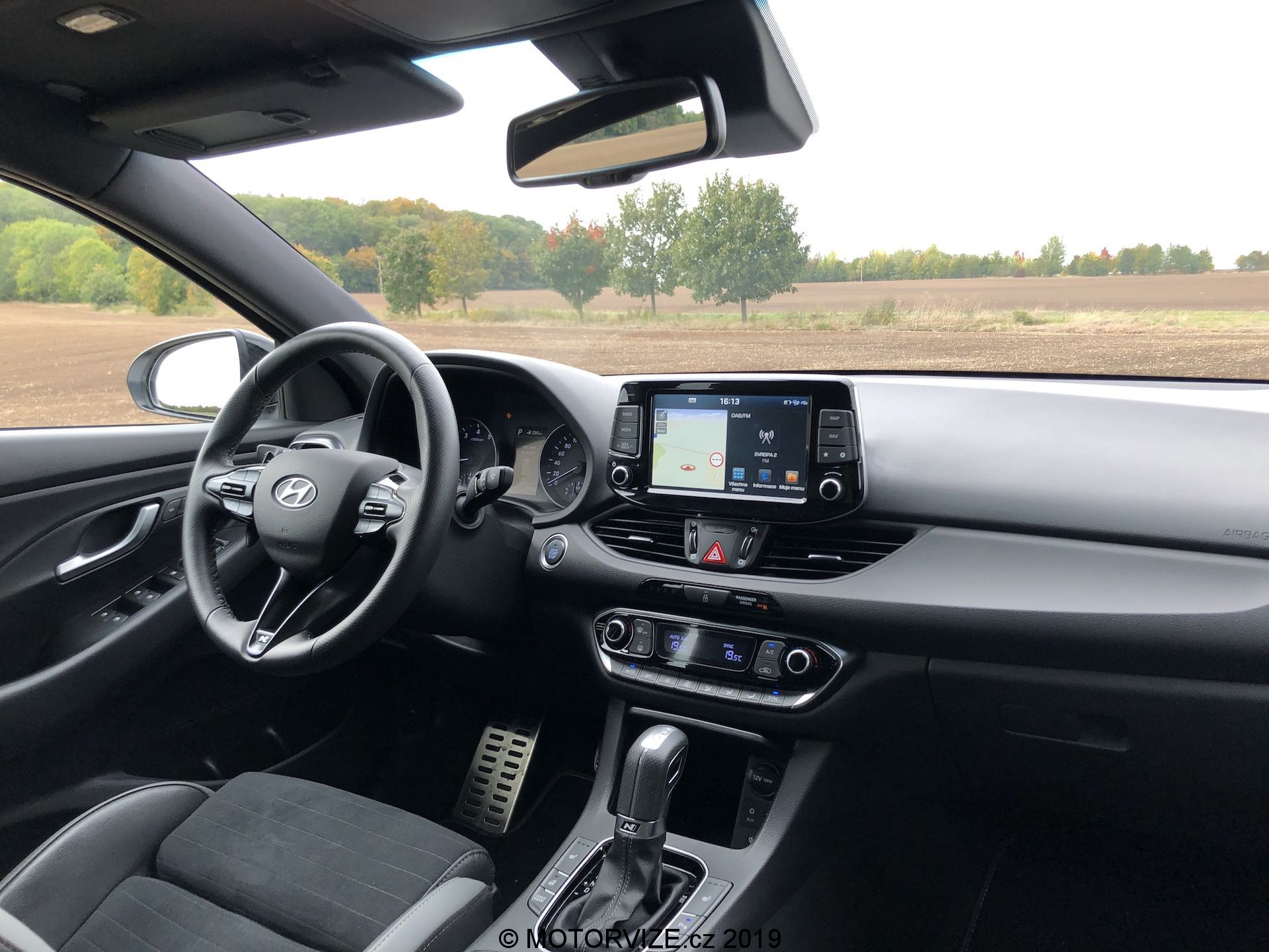 Vnitřní prostor se až tak moc neliší, jsou tu spíše menší rozdíly. Všimneme si jich na volantu, středové konzoli a spíše detailů. Na volantu chybí dvě krásná tlačítka na volbu jízdní režimů a přibyla „pádla“ pod volantem dostupná v případě volby automatické převodovky, jak je tomu u námi testovaného kusu. Budíky (přístrojová deska) pocházejí z normální verze i30, u nich už je opravdu vidět, že i30 už čeká na modernizaci, neb v přímém pohledu na konkurenční digitální štíty už analogové ručičky a poměrně malý displej palubního počítače vypadají poměrně zastarale. Středová konzole je včetně infotainmentu stejná až na dvě věci – volič jízdních režimů automatu a úložný prostor pod ovládáním klimatizace, opět jen detaily. Volič vypadá opravdu zvláštně, nechám na každém, ať si jej nazve, jak chce. Sedačky jsou ale kupodivu ještě o trošku tvrdší než v klasickém enku, což popravdě nechápu a nedává mi to smysl. Myslím si, že v N-Line by ty sezení mělo být spíše komfortnější, což narovinu není. Jestli je něco, co mi kolegové stále připomínají při usednutí do Hyundaie, tak jde o vyšší posez, než by byl ve sportovně střiženém voze očekáván. Já jsem s touto charakteristikou u mého eNka „v pohodě,“ sedadla v N-Line mají ale pocitově svou nejnižší polohu o něco výše, a tak se nechtěnému doteku pravé nohy o volant prostě a jednoduše neubráníte. Abychom ale sedadla jen nehanili, pochválit můžeme prodloužitelný sedák, díky němuž je rozsah nastavení o něco vyšší a dokonce lepší než u většiny konkurentů.