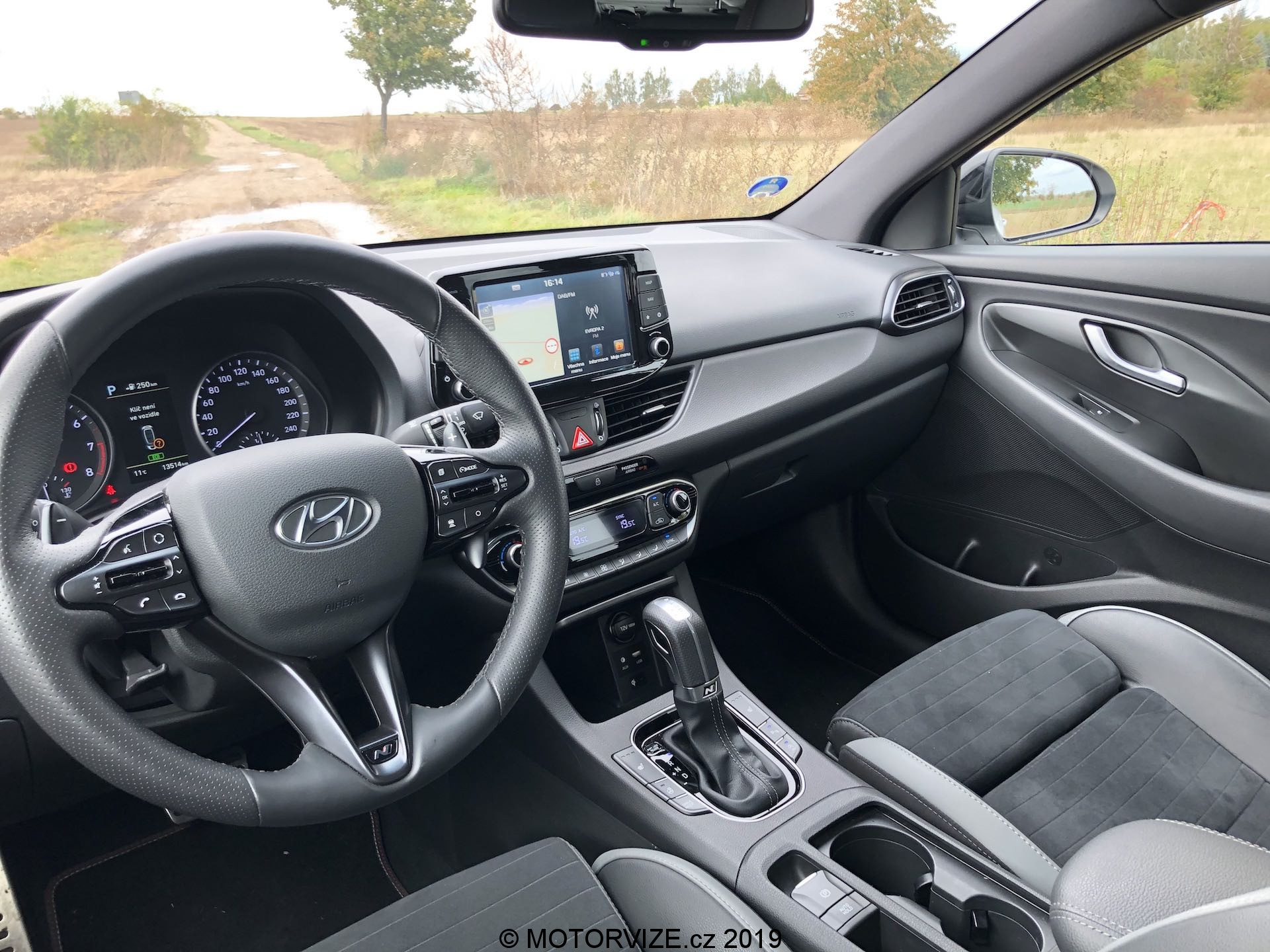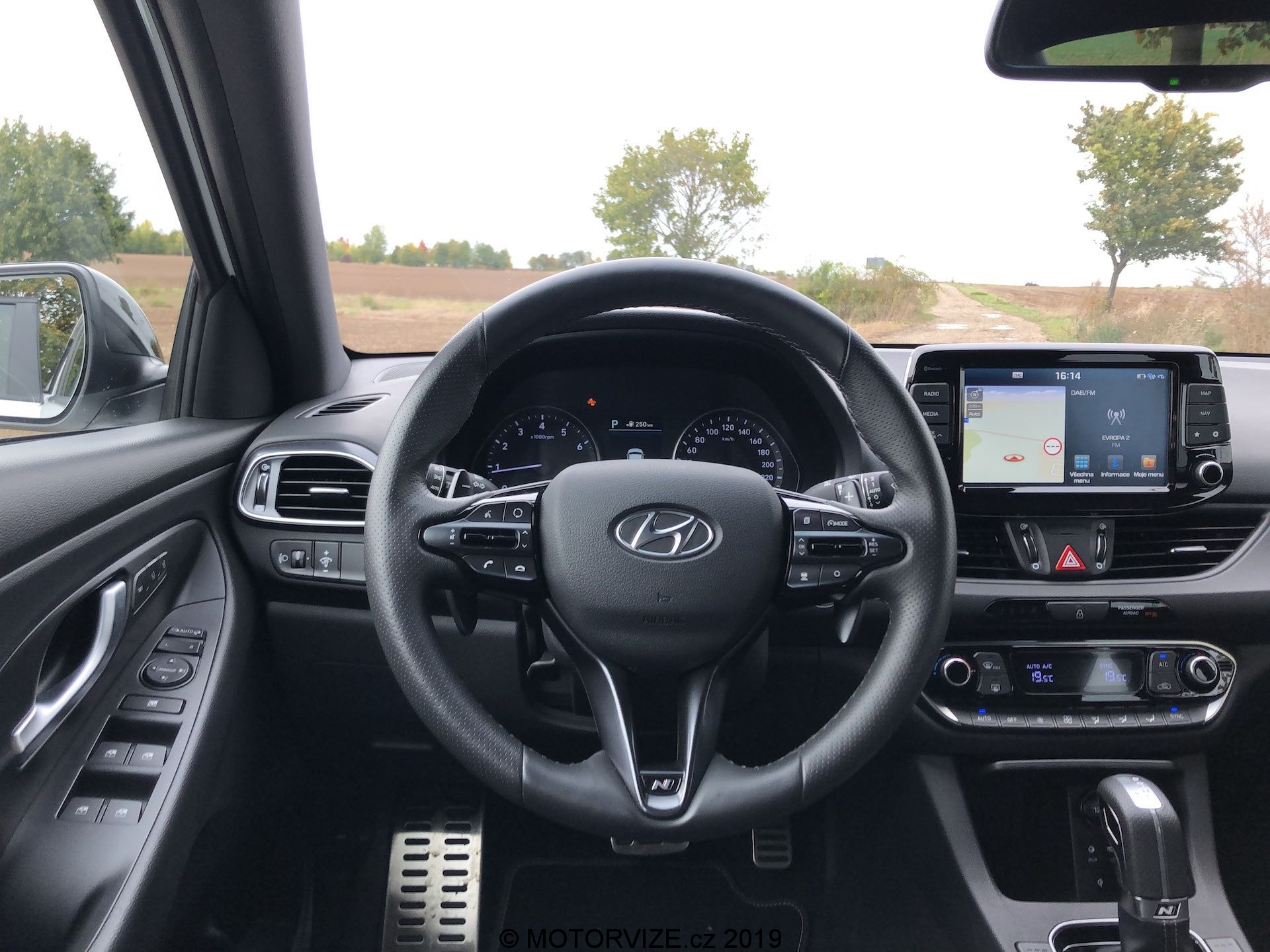 Čeká mě první start a já ihned vystoupím a jdu si poslechnout výfuk. Přece jenom by měl alespoň trošku znít. Ale ano, je to tam. Něco slyšet je, takové jemné brumlání. Skočím zpět dovnitř, zmáčknu vypnutí vypnutí funkce start/stop, zařadím D a rozjíždím se. Nejdříve jsem si řekl, že zkusím, jak jede auto v každodenním provozu, jakou má spotřebu a jak se chová DCT. Až pak na to šlápnu a pobavíme se o chování při ostřejší jízdě. Motor jede příjemně a je tichý v nízkých otáčkách, což odpovídá určení auta. Spotřeba se pohybuje okolo 8 – 9 l/100 km dle toho, jak hustá doprava je přede mnou, i tak bych čekal jeho „žíznivost“ o litr níže. Podvozek je tedy tvrdší, ale s tím musí člověk počítat, když si toto kupuje. Já osobně jsem při jízdě ve městě byl úplně spokojený s tímto podvozkem. Pak je tu DCT, dvouspojková automatická převodovka. Námi testované auto mělo najeto něco pod 20 000 km a musím říci, že jsem v určitých chvílích už cítil prokluzování DCT. V jednu chvíli, když jsem odbočoval, po sešlápnutí plynu auto stálo a až po chvíli se rozjelo, otáčky se zvedaly, spojka prokluzovala. Takže se zatím shodneme, že má mnou testovaný exemplář silné i slabé stránky. Pojďme ale na část, která zajímá vás všechny, a tou je sportovní jízda. Přemýšlel jsem, jakou asi změnu představuje volič režimů a přepnul jsem tedy na sport. V podstatě vše zůstalo stejné až na řazení. Převodovka se přepnula do sportovního režimu a v tu chvíli začala fungovat opravdu hezky. Sešlápl jsem tedy plynový pedál a čekal jsem, že vystřelím. Bohužel tento motor představuje mezeru tohohle auta, a tou je výkon. Je to sice „jen“ N-Line, ale čekal bych nějaké navýšení výkonu, aby auto pořádně táhlo. Bohužel to tak není, 103 kW pro auto, které má takové sportovní prvky opravdu nestačí. Přesuňme se ale na podvozek, protože ten zachrání vše. Je doslova parádní. Dá se s ním jet normálně, ale jak člověk chce přidat a hrát si na závodníka, začne to být teprve super pocit. Můžete si dovolit opravdu o hodně více oproti klasické i30 a problém není projet s ním téměř každou zatáčku opravdu svižně. Vzal jsem auto na takový svůj malý „okruh“ v okolí prahy, kde pokaždé auta testuji – nebojte, jde jen o oblíbenou trasu na veřejných silnicích. Fastback tam jel opravdu výborně, sice mu chybí výkon, ale ten vám vynahradí stabilita. Každému opravdu doporučuji si při výběru nového auta tento kousek vyzkoušet. Byť považuji naladění podvozku možná až příliš tvrdé pro každodenní pražské popojíždění, jde o zajímavý kompromis mezi obyčejnou i30 Fastback a i30 Fastback N. Paradoxem však zůstává, že vzhledem k absenci elektronicky stavitelných tlumičů se mi zdá tohle auto v režimu „normál“ podvozkově bližší právě ostrému eNku než konvenční i30.