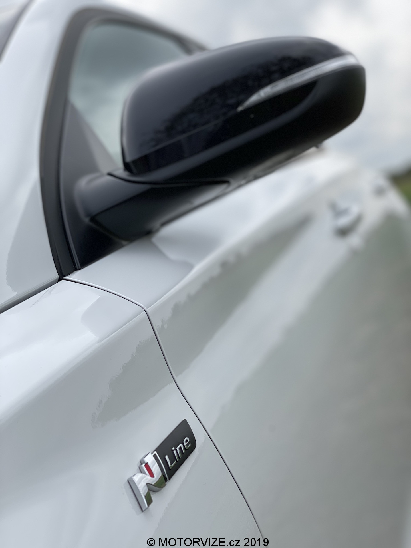 Když jsem k autu poprvé přišel, tak jsem si říkal, že je N-Line vzhledově totéž, co klasické N. Ale opak je pravdou. Rozdíly tu jsou a ne malé. Zepředu si můžeme všimnout jiné barvy lízátka předního nárazníku a znak Hyundai není vylezlý, nýbrž zapuštěný v průhledném plastu. Když si auto obejdu, vidím, že chybí plastové prahy z N a kola jsou jiná 18palcová místo velkých devatenáctek na eNku. Zezadu si všimnete rozdílu asi nejvíce. Chybí tu jedna koncovka výfuku a odtrhová hrana kufru. Celkově se mi ale auto moc líbí a v bílé barvě je o to více povedené. Když už jsme u toho, musím zmínit i černé doplňky exteriéru (například černé kryty zrcátek), které skvěle kontrastují s lakováním karoserie a umocňují pocit sportovního vzhledu i dojem, že tohle obyčejný Fastback určitě není. Když člověk nastoupí dovnitř, cítí se skoro jako v enku. Nechme si interiér spíše na další část článku.