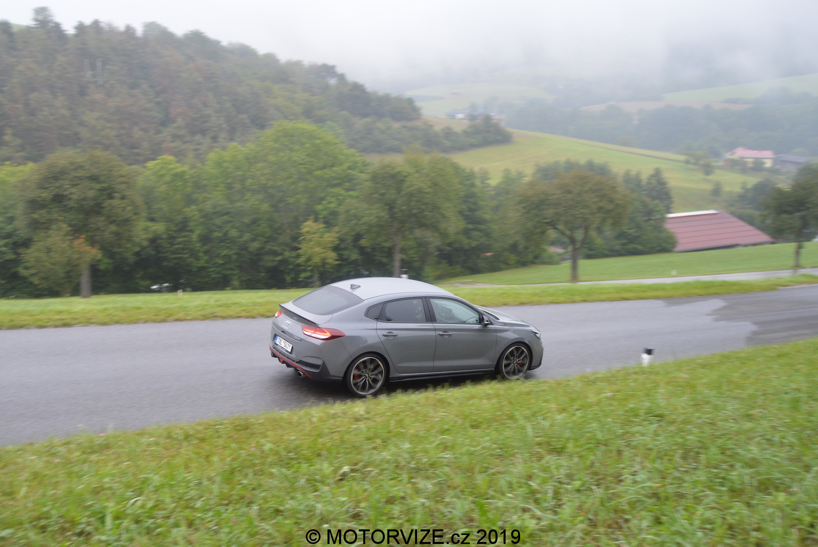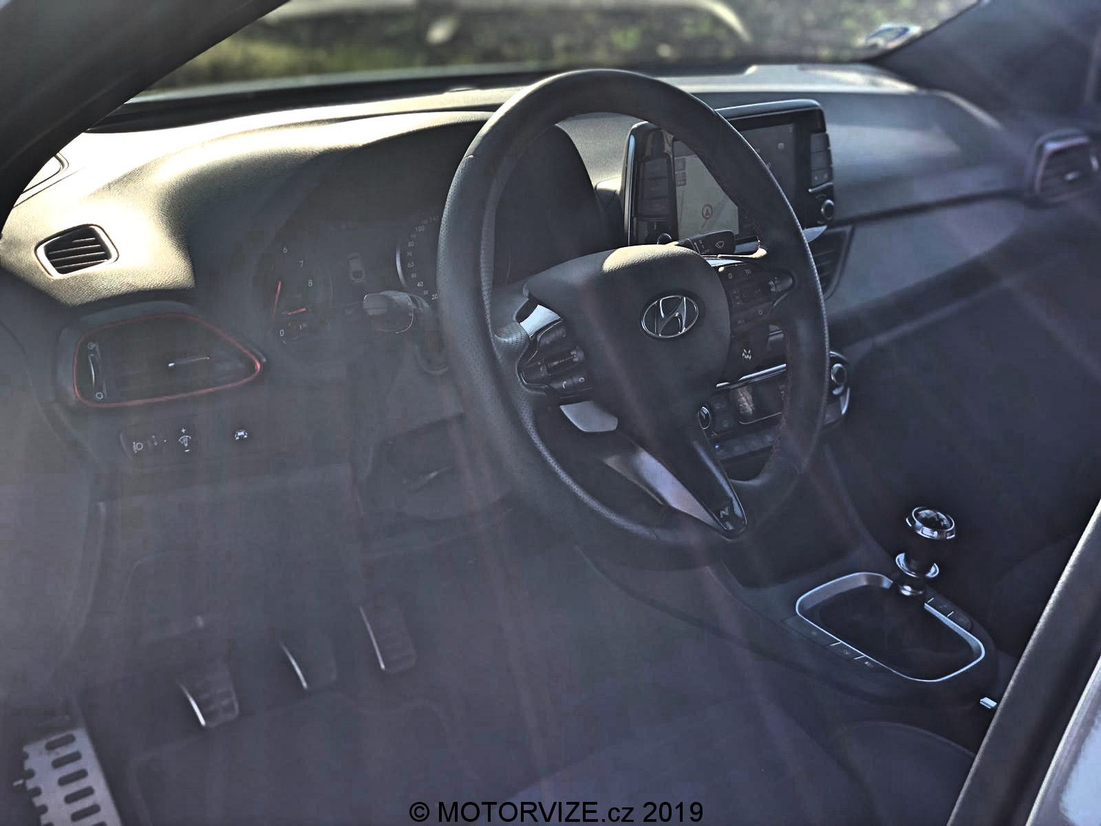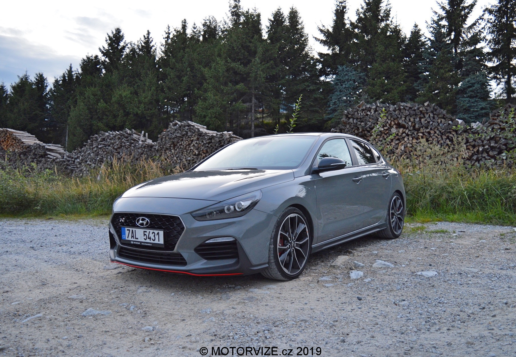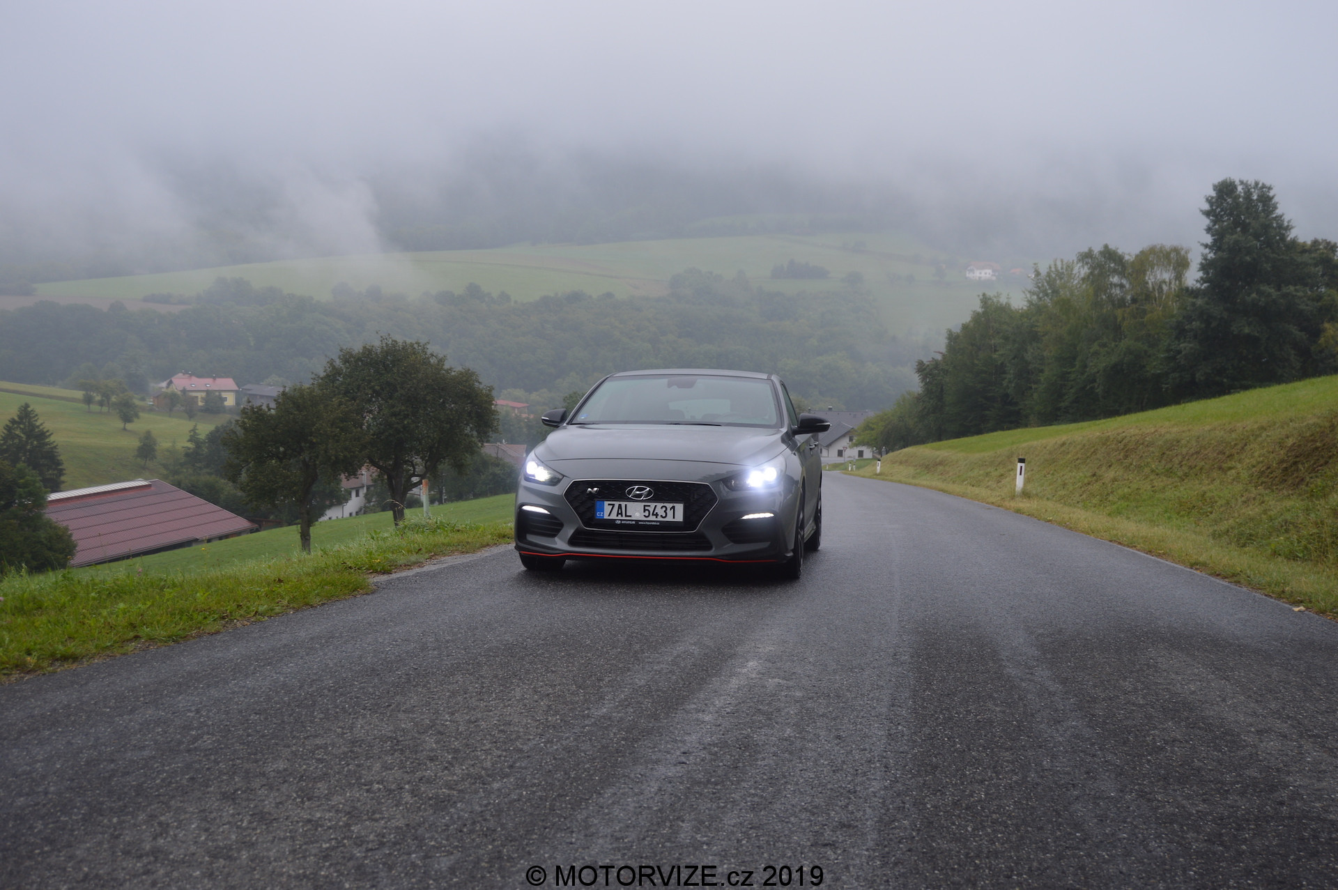 Po letmém seznámení s možnostmi, které Hyundai nabízí, konečně šlapu spojku do podlahy a po stisknutí tlačítka startuji dvoulitrový turbomotor, který dává okamžitě najevo své zaměření příjemným dunivým zvukem. Nabízí 275 koní a 353 Nm, které zpočátku nepůsobí nikterak divoce. Prvních pár hodin si hraju s možnostmi jízdní režimů a těch variant je opravdu mnoho. Začínám na ECO. Mohlo by se zdát, že to je v takovém autě k ničemu, ale já tenhle režim využíval ani ne kvůli spotřebě, jako spíš z důvodu zklidnění projevu a ztišení celého vozu, což potěší především při jízdě po městě. Režim Normal už proti předchozímu zlepší reakci na plyn, otevře trochu výfuk a okamžitě zaznamenáte zvýšenou chuť vyrazit vpřed. Oba tyto režimy mají poměrně příjemné nastavení podvozku. Tuhost je samozřejmě na místě, ale její úroveň nebrání dennímu využívání prakticky kdekoliv. Další na řadě je SPORT, ten přepne vše na střední level. Podvozek a volant ztuhne, odezva na plyn se přiostří a tady je již jasně patrné, že se nejedná o standartní Fastback. Tuhle možnost, ale vnímám téměř jako zbytečnou vzhledem ke dvěma zbývajícím. Ta „předposlední“ se jmenuje N a vše, co může, nastaví na maximum. Jen ESP nechává v režimu Sport a na tvrdo jej tak nevypíná. S tím se dá jet poměrně agresivně a přesto hlídá případnou chybu – přidává ale řidiči na jistotě. Trakce i další bezpečnostní systémy se samozřejmě dají i úplně vypnout. Já jsem reálně využíval dvě varianty nastavení, ECO, jak už jsem říkal a Custom, který je jednoduše skvělé a dovolí nastavit auto téměř na míru. Custom je varianta, při níž si určíte u sedmi jednotlivých funkcí ovlivňujících dynamiku vozu svoje vlastní nastavení, a to většinou ve třech krocích od Normal, přes Sport, po Sport +. Moje oblíbená varianta byla: motor Sport +, výfuk Sport +, řízení Normal, podvozek Normal, Diferenciál Sport +, meziplyny Sport + a stabilizace OFF. Všechny tyto předvolby si v Custom můžete nastavit podle sebe, a to bez vlivu jedné na druhou. Nastavíte si tak auto na míru. Podvozek jsem při obsazení spolucestujícími a dynamické jízdě přepnul do Sport. Pokud jsem byl v autě sám, Normal byl naprosto dostačující i pro dynamickou jízdu. Ještě bych rád vyzdvihl systém automatických meziplynů. Hyundai i30 N Performance se prodává jen s manuální převodovkou, což nevnímám jako problém, právě naopak. Pedály ale nejsou umístěné vhodně pro podřazovaní stylem pata& špička. Funkce REVmatch to nahradí opravdu skvěle a při podřazovaní je tak možné jít klidně ze šestky na dvojku do utažené vracečky, a to přímo, bez nutnosti postupného řazení nižších stupňů. Jednoduše řadicí pátku při brždění ze šestky v klidu přesunete na dvojku – REVmatch dá meziplyn, pustíte spojku a je to. Tohle funguje opravdu dobře a usnadňuje plynulost podřazování. Jako bonus zde vnímám zvukovou kulisu, která je jednoduše skvělá. Výfuk při zpomalování duní, řve, práská a doprovod, který tvoří, probouzí až dětskou radost a rošťácké emoce. Jedu si jen tak pomalu po městě a řadím nahoru… dolu. Naprosto zbytečně. Jen pro ten zvuk, který následně vytvoří. Ano je to dětinské, zbytečné a… stejně jsem se usmíval jak pitomec.