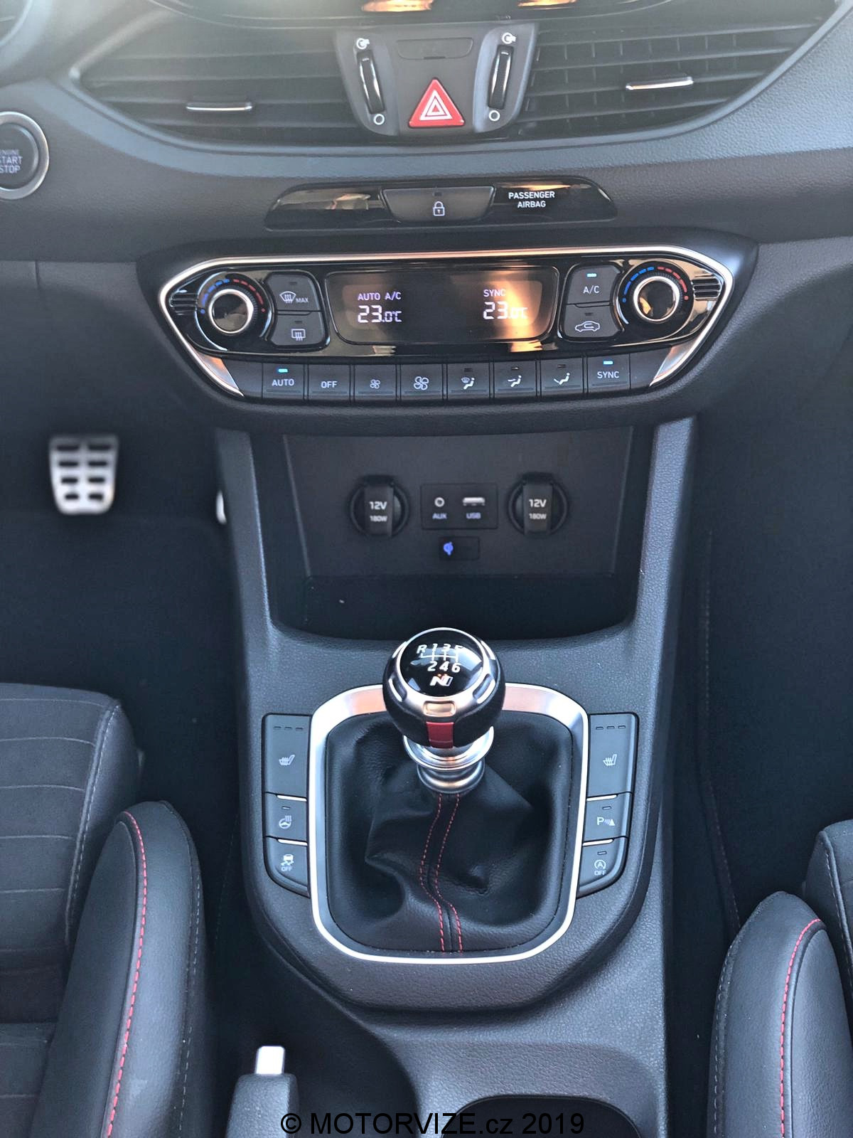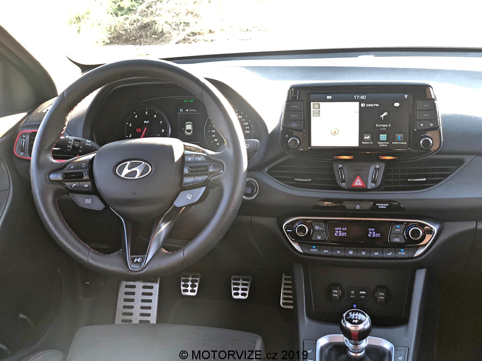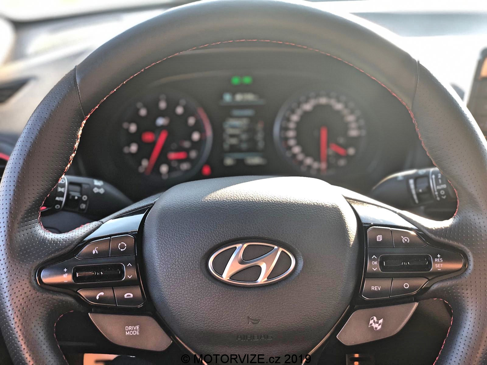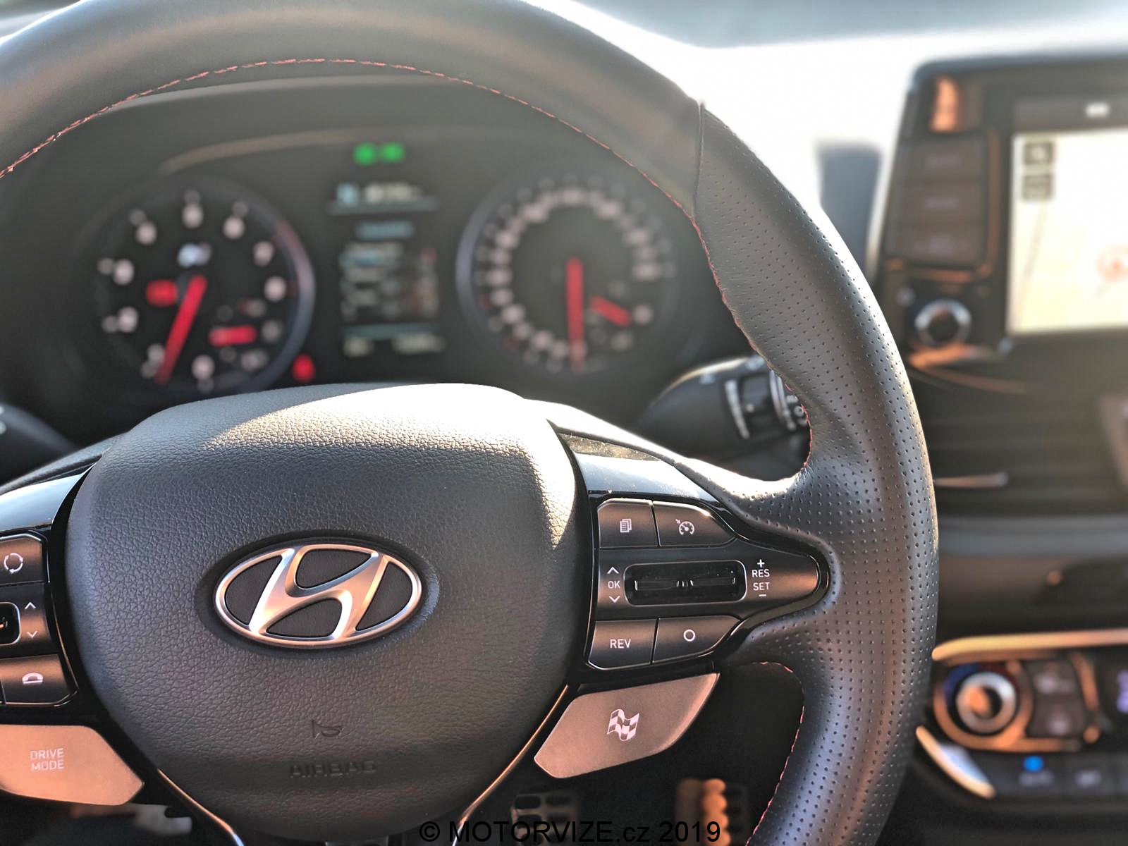 Po letmém seznámení s možnostmi, které Hyundai nabízí, konečně šlapu spojku do podlahy a po stisknutí tlačítka startuji dvoulitrový turbomotor, který dává okamžitě najevo své zaměření příjemným dunivým zvukem. Nabízí 275 koní a 353 Nm, které zpočátku nepůsobí nikterak divoce. Prvních pár hodin si hraju s možnostmi jízdní režimů a těch variant je opravdu mnoho. Začínám na ECO. Mohlo by se zdát, že to je v takovém autě k ničemu, ale já tenhle režim využíval ani ne kvůli spotřebě, jako spíš z důvodu zklidnění projevu a ztišení celého vozu, což potěší především při jízdě po městě. Režim Normal už proti předchozímu zlepší reakci na plyn, otevře trochu výfuk a okamžitě zaznamenáte zvýšenou chuť vyrazit vpřed. Oba tyto režimy mají poměrně příjemné nastavení podvozku. Tuhost je samozřejmě na místě, ale její úroveň nebrání dennímu využívání prakticky kdekoliv. Další na řadě je SPORT, ten přepne vše na střední level. Podvozek a volant ztuhne, odezva na plyn se přiostří a tady je již jasně patrné, že se nejedná o standartní Fastback. Tuhle možnost, ale vnímám téměř jako zbytečnou vzhledem ke dvěma zbývajícím. Ta „předposlední“ se jmenuje N a vše, co může, nastaví na maximum. Jen ESP nechává v režimu Sport a na tvrdo jej tak nevypíná. S tím se dá jet poměrně agresivně a přesto hlídá případnou chybu – přidává ale řidiči na jistotě. Trakce i další bezpečnostní systémy se samozřejmě dají i úplně vypnout. Já jsem reálně využíval dvě varianty nastavení, ECO, jak už jsem říkal a Custom, který je jednoduše skvělé a dovolí nastavit auto téměř na míru. Custom je varianta, při níž si určíte u sedmi jednotlivých funkcí ovlivňujících dynamiku vozu svoje vlastní nastavení, a to většinou ve třech krocích od Normal, přes Sport, po Sport +. Moje oblíbená varianta byla: motor Sport +, výfuk Sport +, řízení Normal, podvozek Normal, Diferenciál Sport +, meziplyny Sport + a stabilizace OFF. Všechny tyto předvolby si v Custom můžete nastavit podle sebe, a to bez vlivu jedné na druhou. Nastavíte si tak auto na míru. Podvozek jsem při obsazení spolucestujícími a dynamické jízdě přepnul do Sport. Pokud jsem byl v autě sám, Normal byl naprosto dostačující i pro dynamickou jízdu. Ještě bych rád vyzdvihl systém automatických meziplynů. Hyundai i30 N Performance se prodává jen s manuální převodovkou, což nevnímám jako problém, právě naopak. Pedály ale nejsou umístěné vhodně pro podřazovaní stylem pata& špička. Funkce REVmatch to nahradí opravdu skvěle a při podřazovaní je tak možné jít klidně ze šestky na dvojku do utažené vracečky, a to přímo, bez nutnosti postupného řazení nižších stupňů. Jednoduše řadicí pátku při brždění ze šestky v klidu přesunete na dvojku – REVmatch dá meziplyn, pustíte spojku a je to. Tohle funguje opravdu dobře a usnadňuje plynulost podřazování. Jako bonus zde vnímám zvukovou kulisu, která je jednoduše skvělá. Výfuk při zpomalování duní, řve, práská a doprovod, který tvoří, probouzí až dětskou radost a rošťácké emoce. Jedu si jen tak pomalu po městě a řadím nahoru… dolu. Naprosto zbytečně. Jen pro ten zvuk, který následně vytvoří. Ano je to dětinské, zbytečné a… stejně jsem se usmíval jak pitomec.