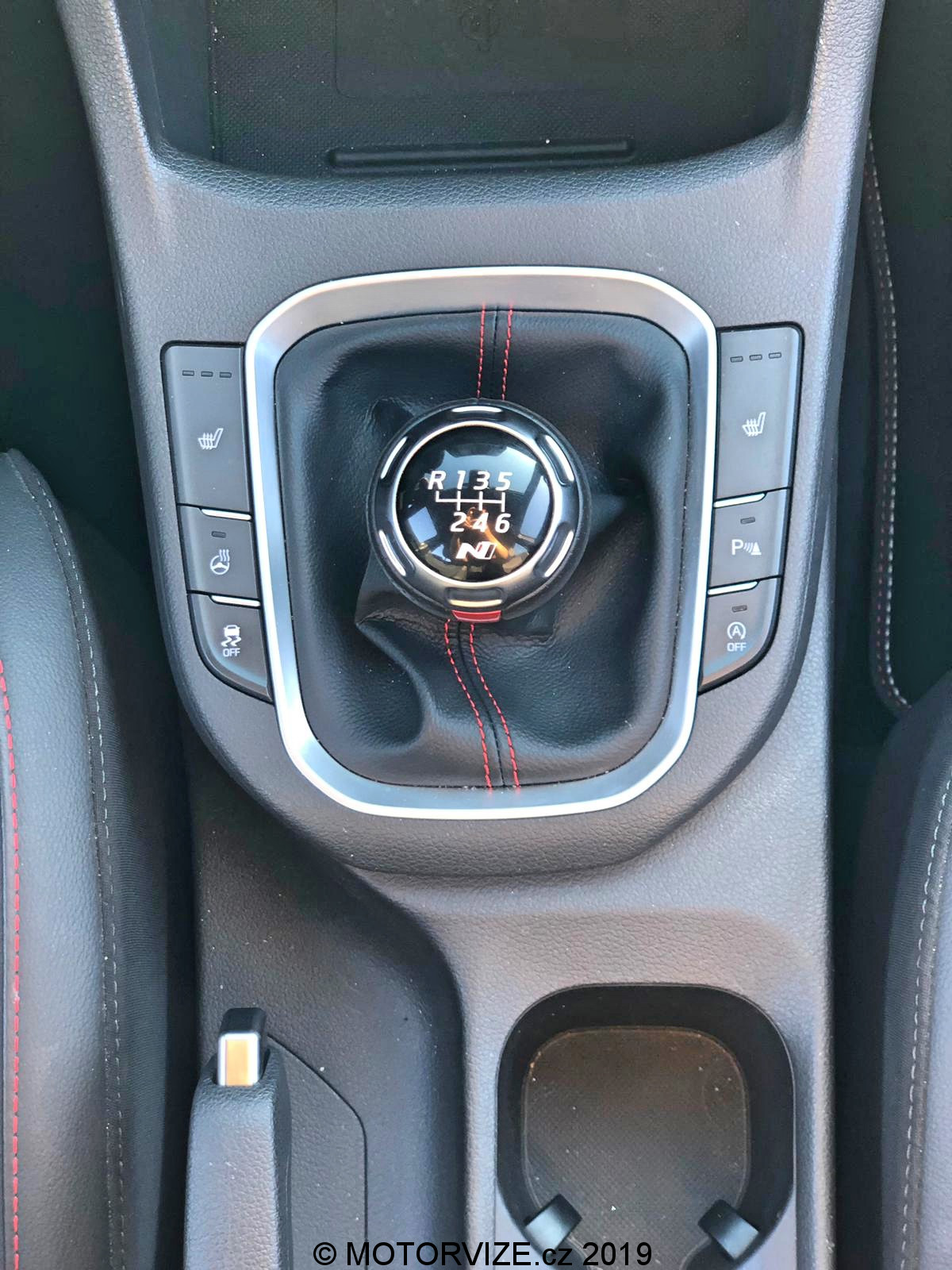 Pro auto jsem vyrazil přes půl Prahy, ale jel bych i přes půl republiky, tak moc jsem se těšil, že si ho konečně vyzkouším a zažiju N-ko na vlastní kůži. Tradiční papírovačka proběhla hladce a držím v ruce „klíče“ na cestě zázemím autosalonu k Fastbacku. Díky častému výskytu modelu i30 si N-ko okamžitě zařadíte do rodiny Hyundai, ale na první pohled je tu něco jinak. Něco… Vlastně skoro všechno. eNko si s běžnou i30 nespletete. Jakmile se vynořila část předku mezi zaparkovanými vozy, věděl jsem, že se mi líbí. Ostře řezané hrany předního nárazníku s výraznou červenou linkou na jeho spodní části jsou přiměřeně agresivní. Rozměrné otvory pomáhající přísunu vzduchu a předek vozu s běžnou i30 taktéž nezaměníte. Zezadu tvrdí muziku, a to jak designem, tak i zvukovým projevem dvě koncovky výfuků. Výrazná je zde i černá odtrhová hrana víka kufru a opět červená linka na spodku nárazníku. Snad jen boční pohled nedává najevo potenciál tohoto modelu. Jediný výraznější prvek zde zastávají 19¨ kola, která ke zbytku karoserie svou velikostí dokonale padnou. Dále poznáte N-ko podle atypických barevných palet určených pro tento model. Fastback se mi zpočátku produkce nelíbil, ale musím říct, že jsem mu časem přišel na chuť a díky jeho jinakosti bych mu dal přednost před hatchbackem. Všeobecně je pro mě i30 prvním modelem Hyundai, jež se mi minimálně z pohledu designu zalíbil.
