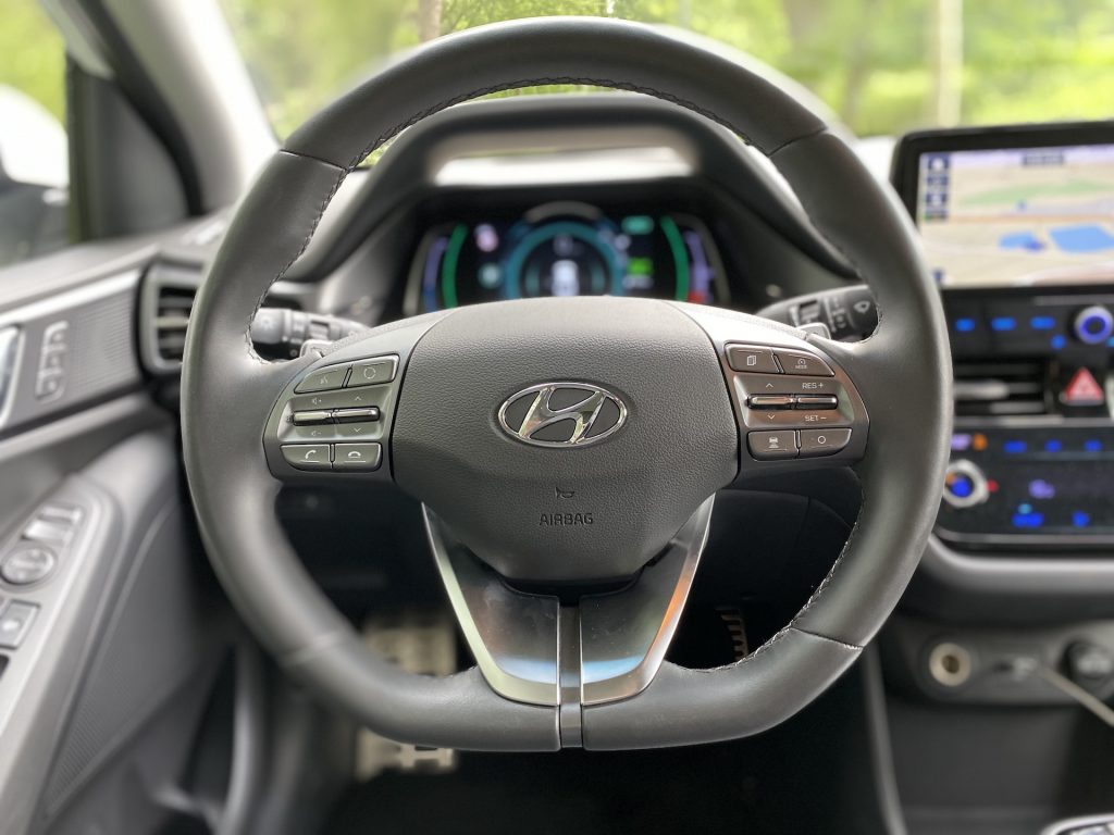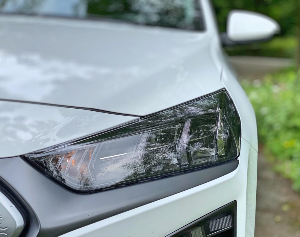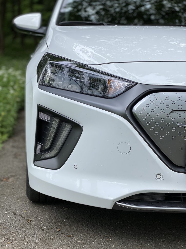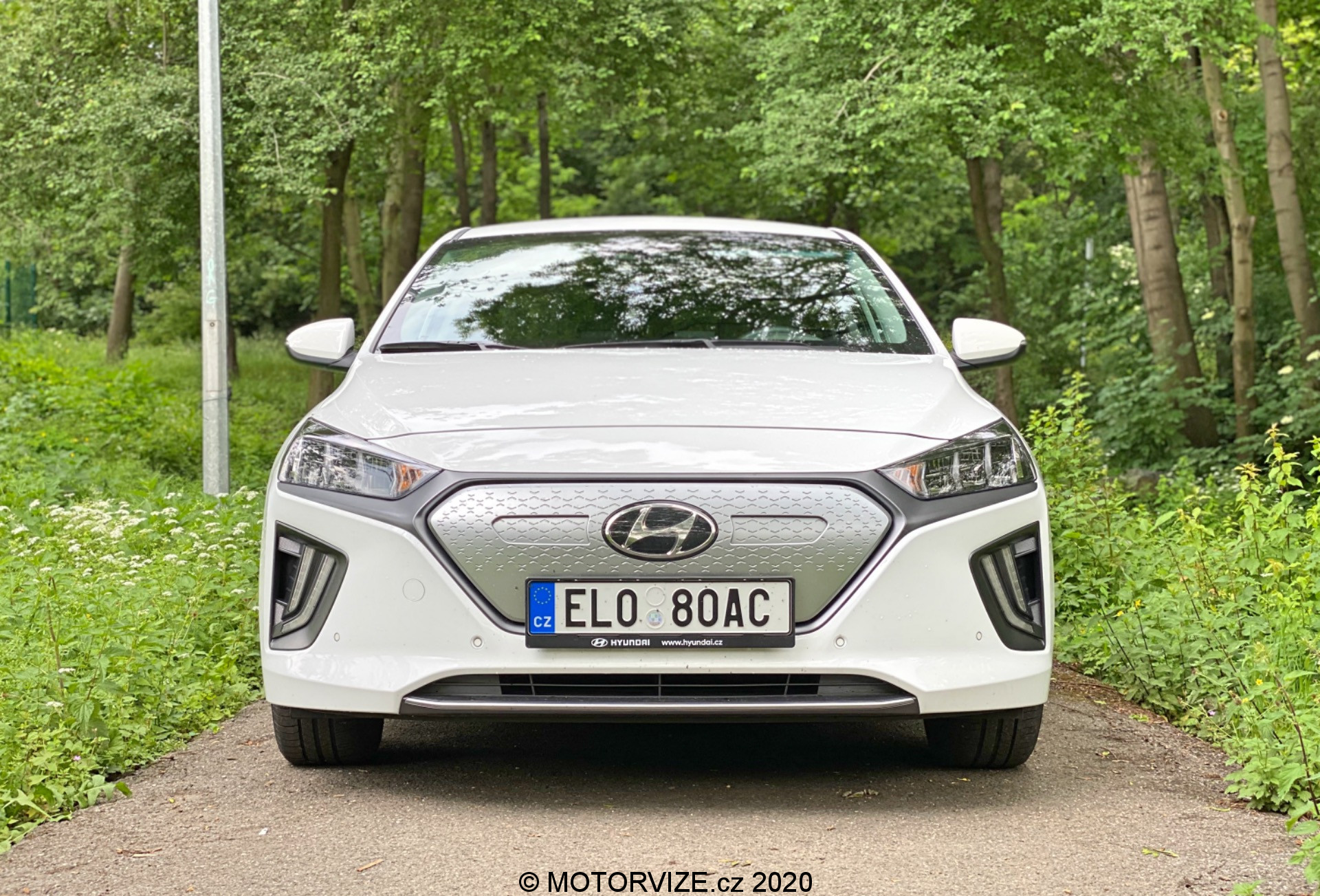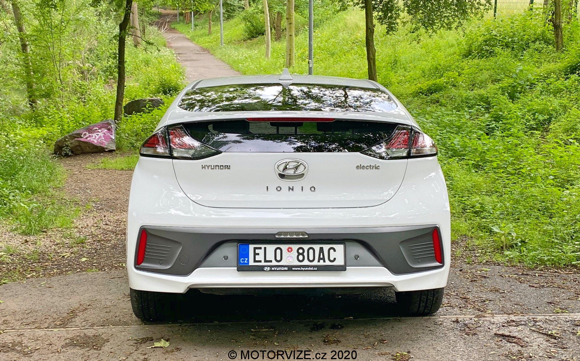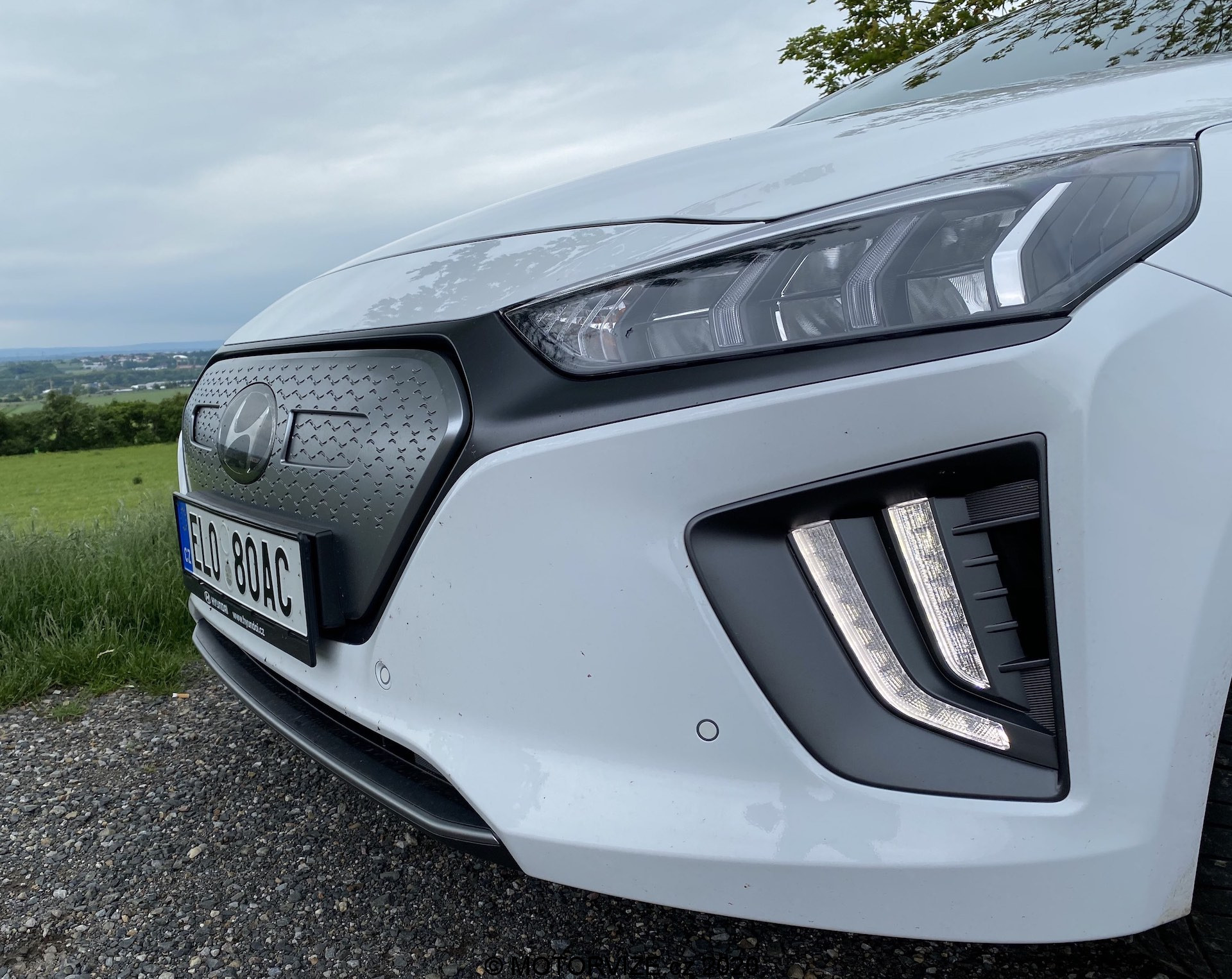 Se stejnojmenným modelem mám již co do činění v hybridní verzi. Tento kousek jsem hodnotil vždy velice pozitivně, hybrid vás dokázal za rozumné peníze odvézt kamkoliv. Jeho spotřeba díky kombinování elektřiny a benzínu byla velmi rozumná. Co se týče jízdních vlastností, nemohu si stěžovat, Ioniqa jsem si vždy chválil. Teď tu je před námi plně elektrický model. Přebírám si auto, které na mě v bílé barvě působí tentokrát poněkud obyčejně. Co bych také od elektrického auta chtěl, že? Jeho „maska chladiče“ v šedivé barvě na mě prvním dojmem působí netaktně a nemohu mu přijít na chuť. Na druhou stranu rozpoznávám na SPZ/RZ zkratku EL0. Co to znamená? Parkování zdarma všude po Praze, dálnice bez dálniční známky zcela zdarma a třeba i nižší silniční daň či sazbu povinného ručení. Záď auta odkazuje svými nápisy na médium určené k pohonu – elektřinu. Zadní část vozu mi trochu připomíná „DuckFace,“ na který si postupem času zvykám. Jak jste si mohli všimnout, exteriér mě tolik nenadchl. Ocenil bych v rámci modernizace pozměněné FULL-LED světlomety, které plní svoji funkci na jedničku a přidávají i estetickému dojmu. Dost možná pro mě po těch (i společných) letech začíná být Ioniq okoukaný – co se modernizace týče, k zásadním změnám v exteriéru totiž nedošlo. To však neznamená, že by byl tento Hyundai nějakým ošklivým káčátkem – to, že šel jeho výrobce odlišným směrem a postavil celou modelovou řadu čisté mobility s hlavním záměrem – dosažení nejvyšší možné efektivity, je úctyhodné. Tomu je pak podřízeno téměř vše, už jen tvar karoserie umožňující dobré proudění vzduchu a nízký aerodynamický odpor, napovídá. V bílé, tak trochu nenápadné barvě mě Ioniq zaujal hlavně v přírodě, kde lakování vyniklo a působilo o několik procent líbivějším dojmem. No, pojďme usednout za volant. Něco mi říká, že právě zde se změn odehrálo více a mé dojmy tak budou pozitivnější…