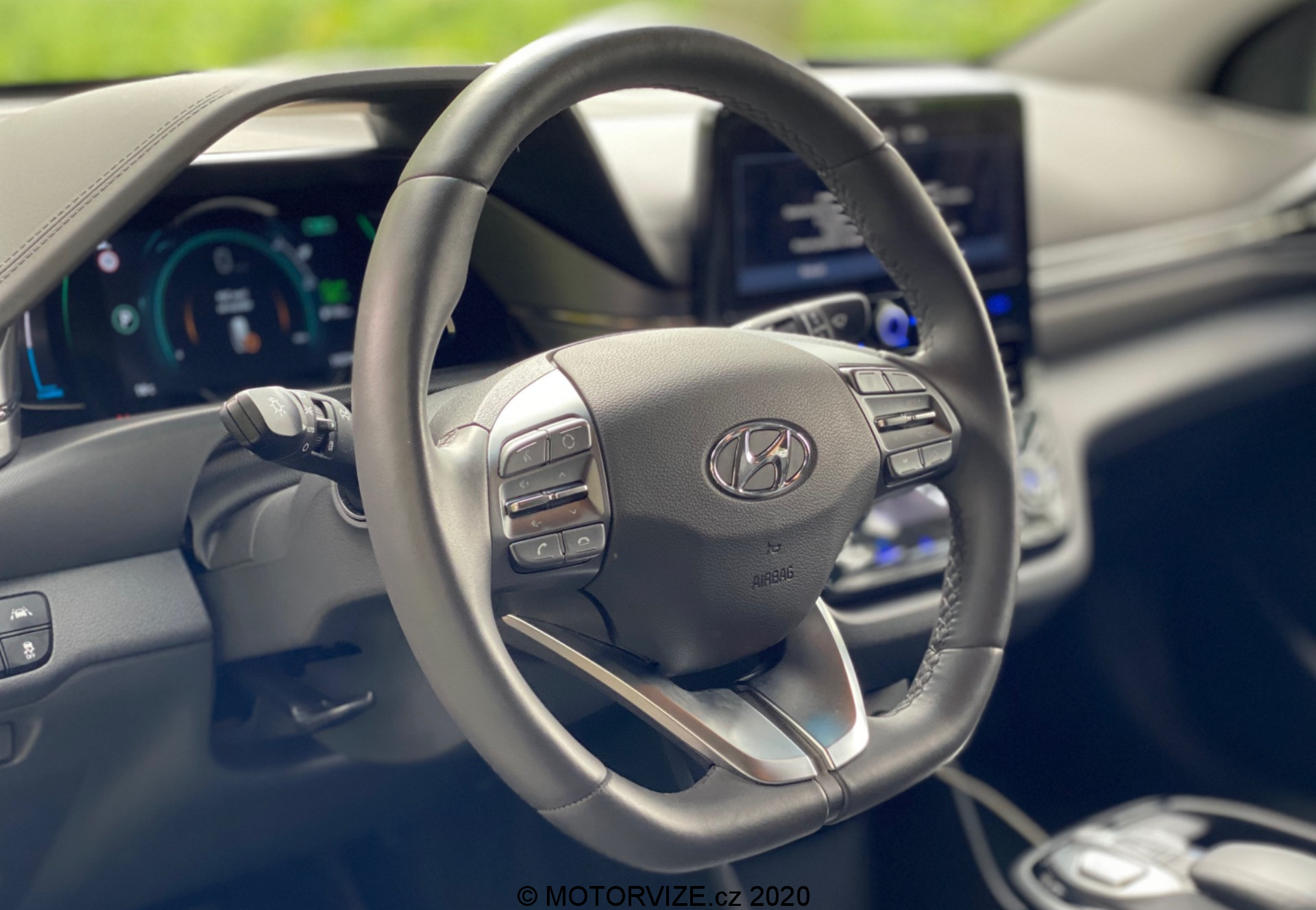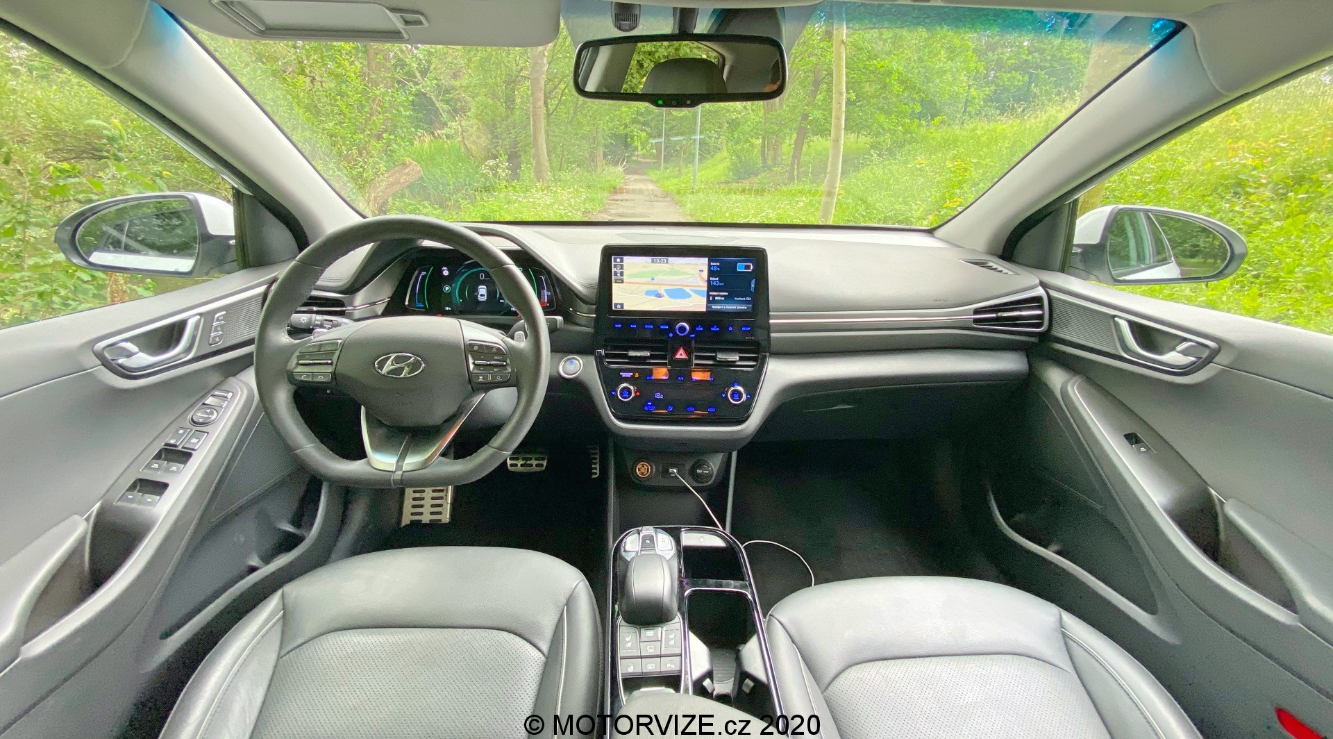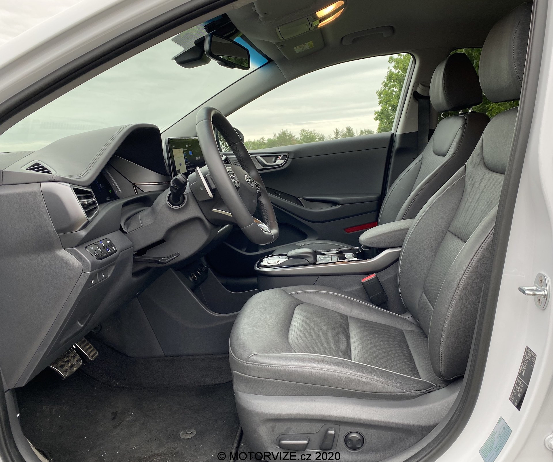 A tady už jsem mnohonásobně spokojenější. Tak to má být! Na první dobrou zaujme jednoduchá středová obrazovka, jenž oplývá intuitivitou a rozlišením na vysoké úrovni. U obrazovky navíc zůstala tlačítka, kterými ovládám vše potřebné. Ano, je to lepší. Nechci dotyková tlačítka, která se hned ušpiní. Mám rád klasické ovládání. Na středovém tunelu najdu nevšední „řadičku“. Na voliči převodovky pouze stisknu D nebo R a můžu jet – jednoduché a efektní řešení, ke všemu na správně zvoleném místě. Dávám bod. Volant je standardní (jako u ostatních modelů značky) a i zde si velice chválím věnec volantu, který příjemně padne do ruky, neklouže. Tlačítky na volantu také ovládám většinu potřebných funkcí a poměrně rychle se orientuji. Sedadla by mě pak mohla lépe objímat. Mou postavu (spíše hubenější a 180 cm vysokou) příliš objímat totiž nechtějí. Kromě boční opory si ale nemohu na nic stěžovat. I úložného prostoru je v Ioniqu dostatek. Vše jsem schopný schovat do přihrádek a mám dokonce možnost bezdrátově si dobít mobil v přihrádce, v níž neklouže a pevně drží. Konečně se nemusím bát, že „ten bezdrát“ nebude fungovat. Dalo by se sice polemizovat, zda-li jsou použité materiály a zpracování adekvátní vůči pořizovací ceně, ale to Hyundai musíme jen tiše prominout, neb u elektromobilů není jednoduché hodnotit „value for money“ index, i proto si dovolím hodnotit kabinu modernizovaného Ioniqu spíše pozitivně.