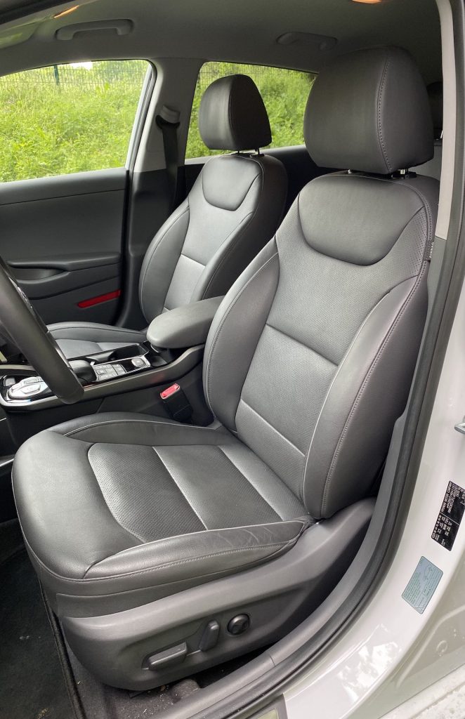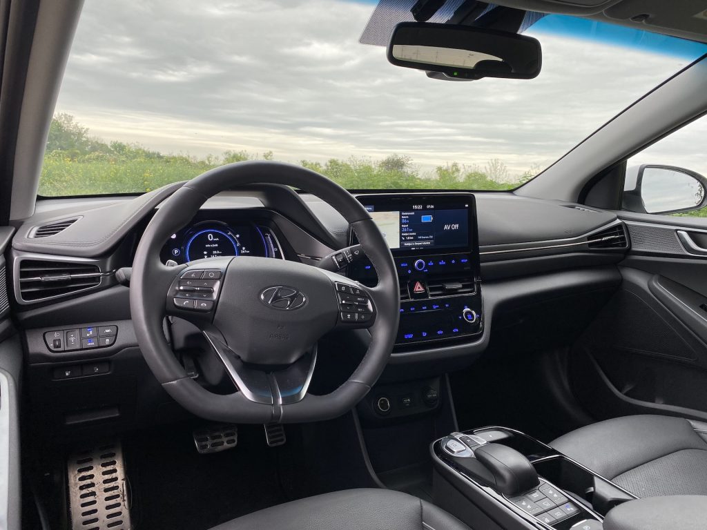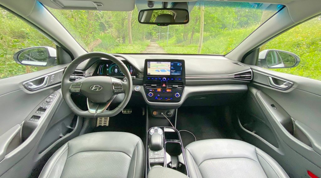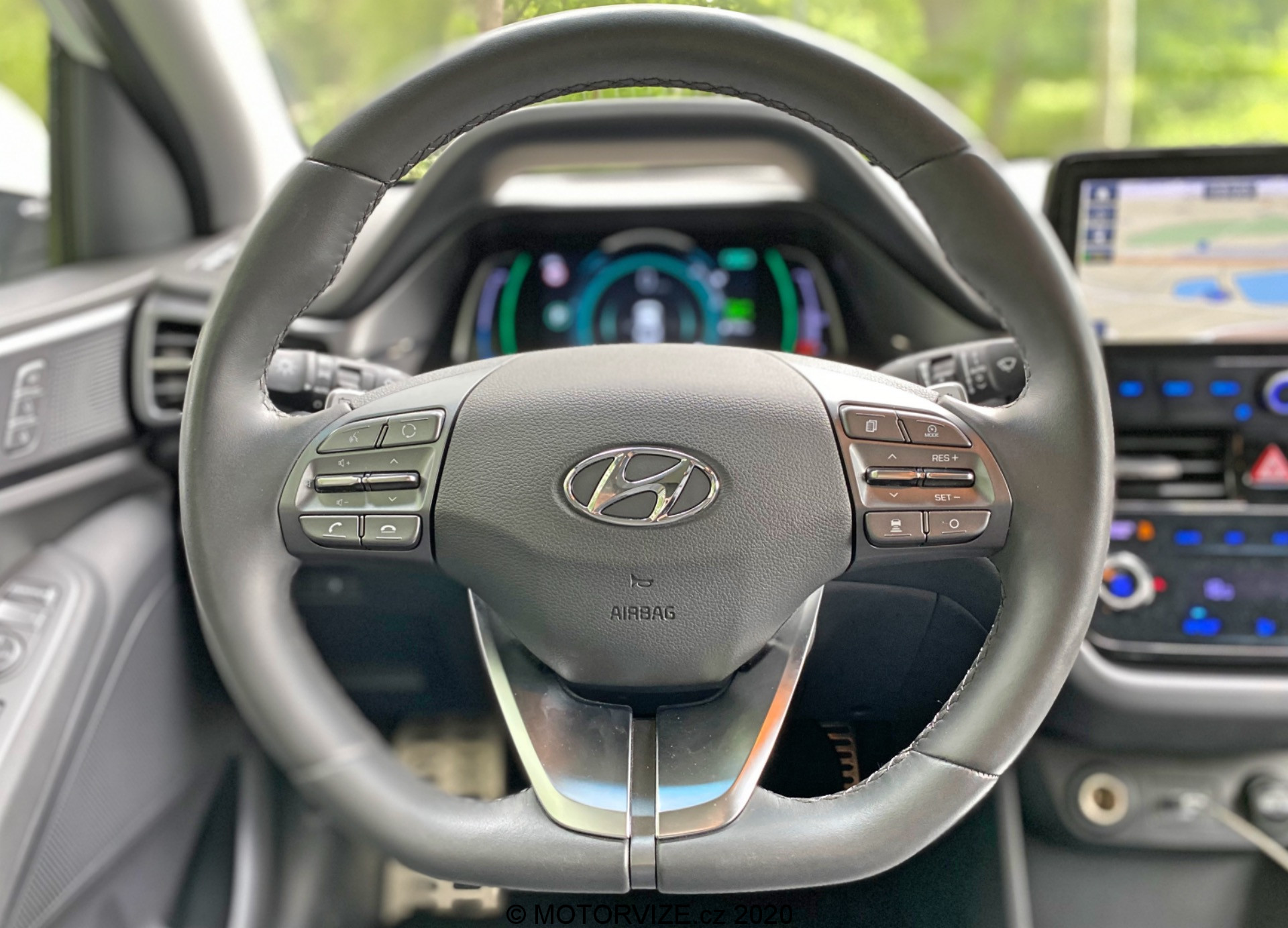 A tady už jsem mnohonásobně spokojenější. Tak to má být! Na první dobrou zaujme jednoduchá středová obrazovka, jenž oplývá intuitivitou a rozlišením na vysoké úrovni. U obrazovky navíc zůstala tlačítka, kterými ovládám vše potřebné. Ano, je to lepší. Nechci dotyková tlačítka, která se hned ušpiní. Mám rád klasické ovládání. Na středovém tunelu najdu nevšední „řadičku“. Na voliči převodovky pouze stisknu D nebo R a můžu jet – jednoduché a efektní řešení, ke všemu na správně zvoleném místě. Dávám bod. Volant je standardní (jako u ostatních modelů značky) a i zde si velice chválím věnec volantu, který příjemně padne do ruky, neklouže. Tlačítky na volantu také ovládám většinu potřebných funkcí a poměrně rychle se orientuji. Sedadla by mě pak mohla lépe objímat. Mou postavu (spíše hubenější a 180 cm vysokou) příliš objímat totiž nechtějí. Kromě boční opory si ale nemohu na nic stěžovat. I úložného prostoru je v Ioniqu dostatek. Vše jsem schopný schovat do přihrádek a mám dokonce možnost bezdrátově si dobít mobil v přihrádce, v níž neklouže a pevně drží. Konečně se nemusím bát, že „ten bezdrát“ nebude fungovat. Dalo by se sice polemizovat, zda-li jsou použité materiály a zpracování adekvátní vůči pořizovací ceně, ale to Hyundai musíme jen tiše prominout, neb u elektromobilů není jednoduché hodnotit „value for money“ index, i proto si dovolím hodnotit kabinu modernizovaného Ioniqu spíše pozitivně.