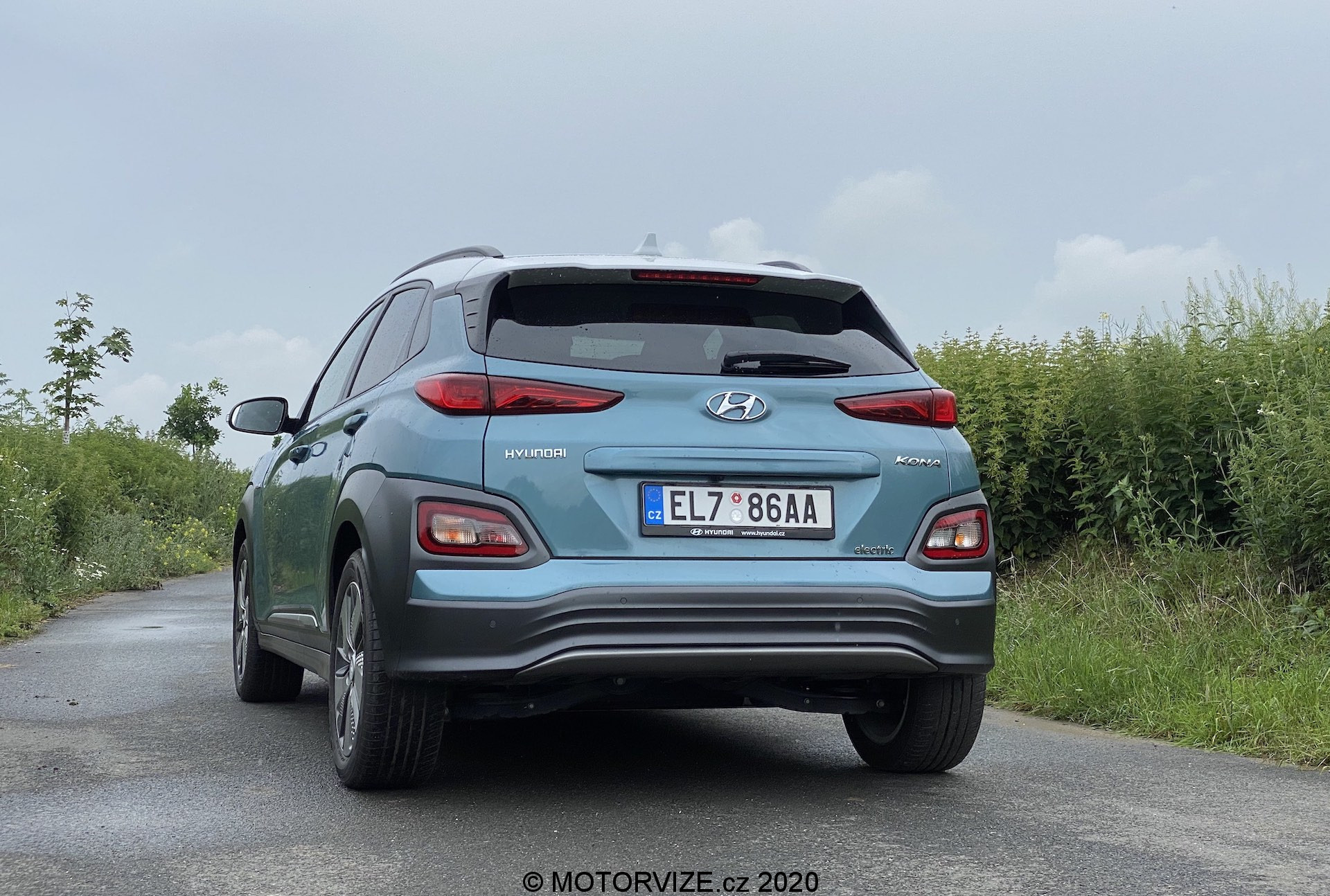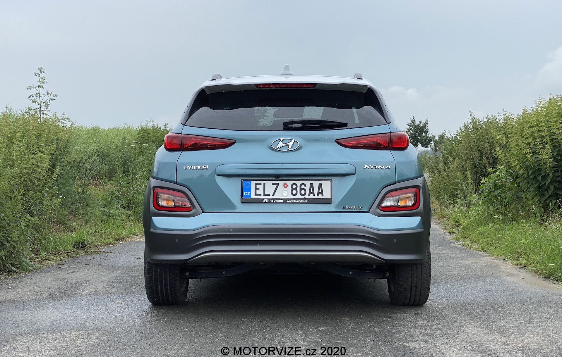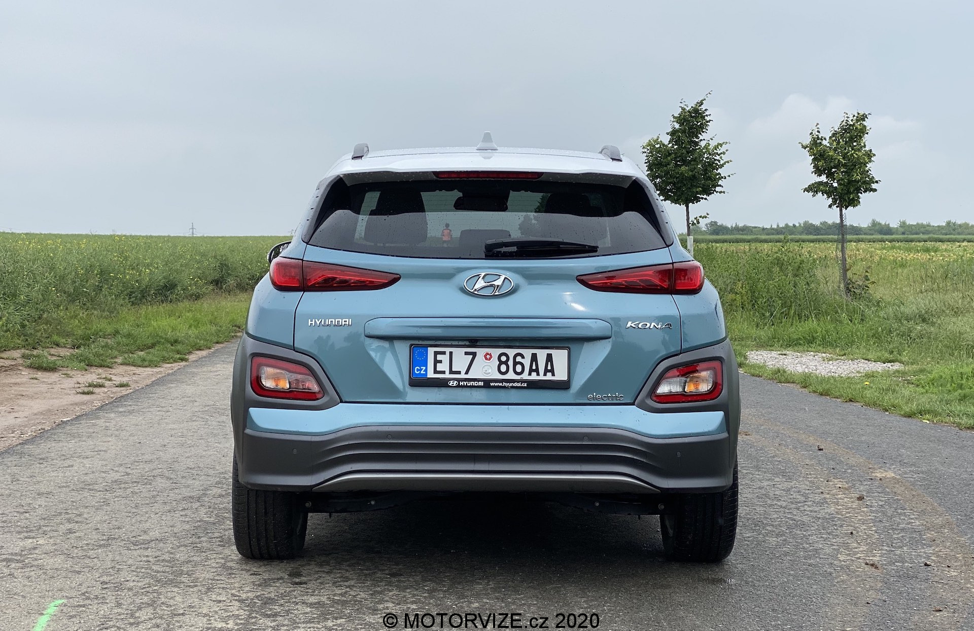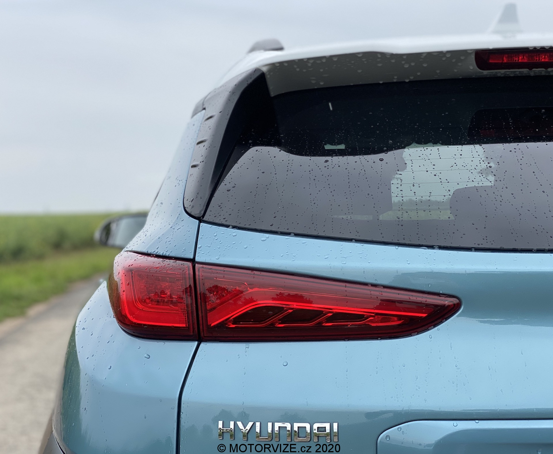 Boční pohled žádné velké překvapení neznamená – Kona tak, jak už ji dobře známe. Na druhou stranu díky odvážné barevné kombinaci exteriéru a doplňků (viz. galerie) vzniká pár zajímavých detailů. Především C-sloupek je ostře tvarovaný a velmi výrazný. Dále při bočním pohledu zaujme právě kombinace barev Ceramic Blue (dle barvoslepého oka motoristického redaktora spíše zelená / tyrkysová), bílé střechy a „anthracitových“ doplňků, jednoduše řečeno i v mých očích funguje. Proporčně je auto i díky větším kolům vyvážené a není důvod cokoliv kritizovat. Zadní část na mě působí nejslabším dojmem a příliš „nezaujala“. Na vzhled vozu si ostatně můžete udělat svůj názor poměrně snadno.