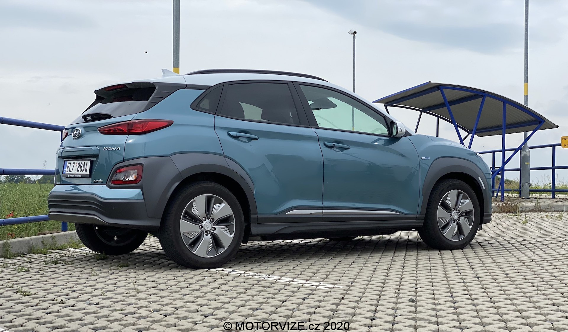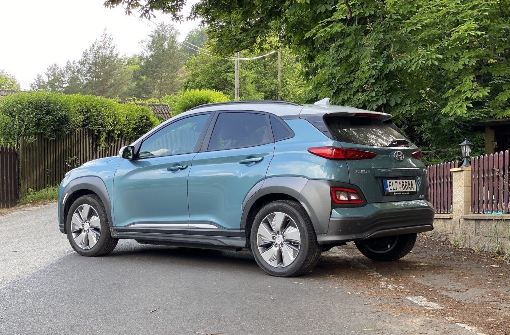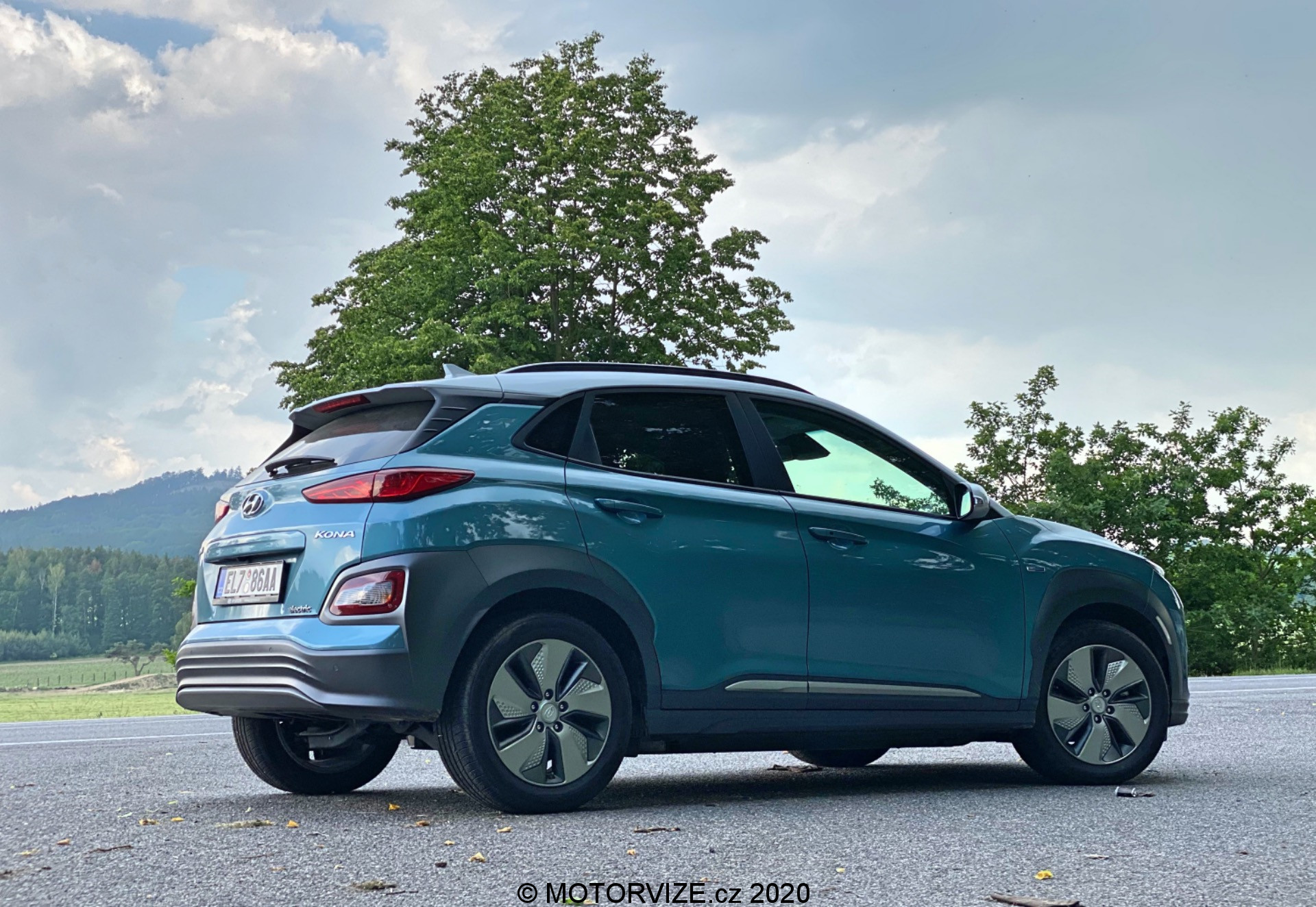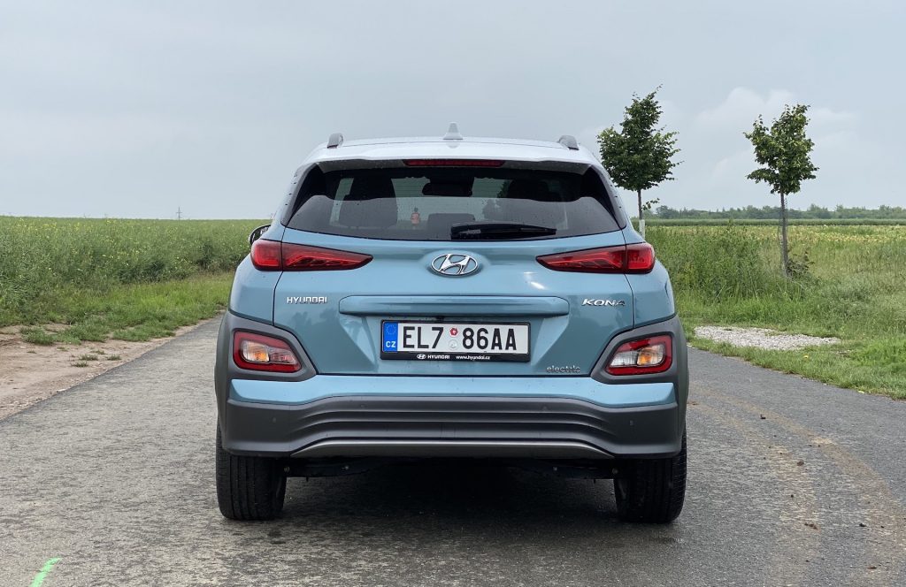 Boční pohled žádné velké překvapení neznamená – Kona tak, jak už ji dobře známe. Na druhou stranu díky odvážné barevné kombinaci exteriéru a doplňků (viz. galerie) vzniká pár zajímavých detailů. Především C-sloupek je ostře tvarovaný a velmi výrazný. Dále při bočním pohledu zaujme právě kombinace barev Ceramic Blue (dle barvoslepého oka motoristického redaktora spíše zelená / tyrkysová), bílé střechy a „anthracitových“ doplňků, jednoduše řečeno i v mých očích funguje. Proporčně je auto i díky větším kolům vyvážené a není důvod cokoliv kritizovat. Zadní část na mě působí nejslabším dojmem a příliš „nezaujala“. Na vzhled vozu si ostatně můžete udělat svůj názor poměrně snadno.