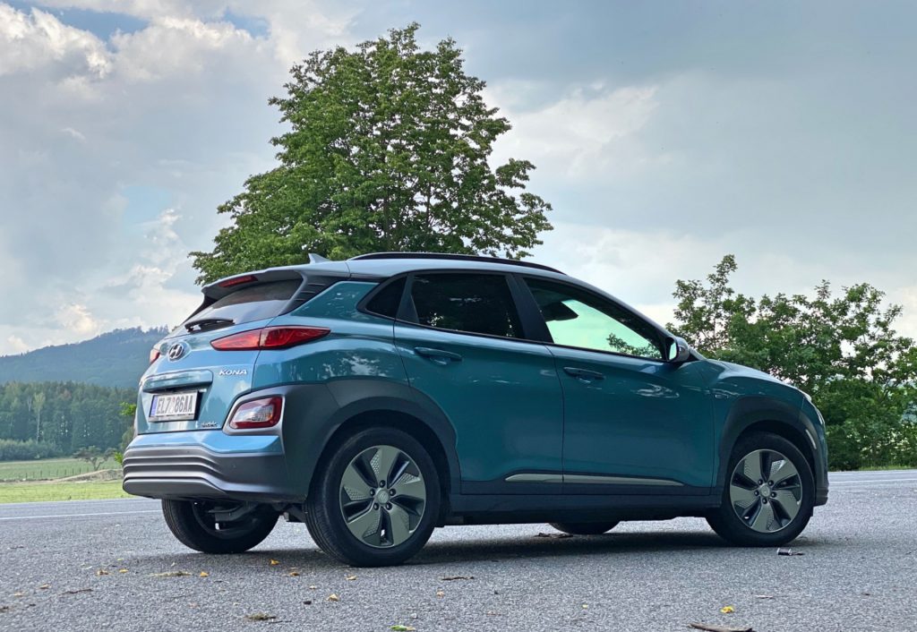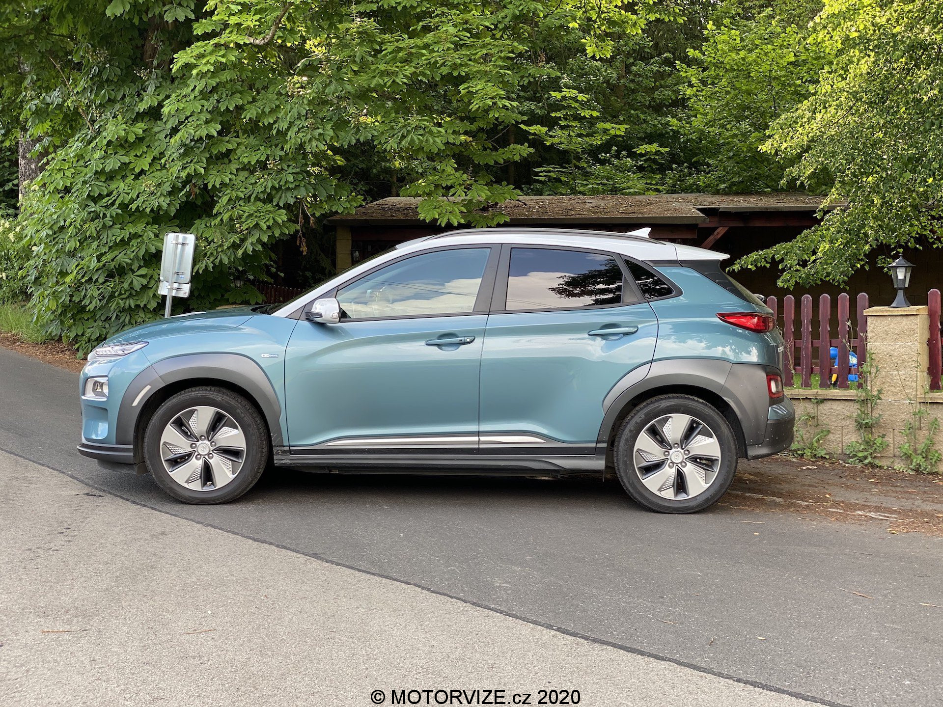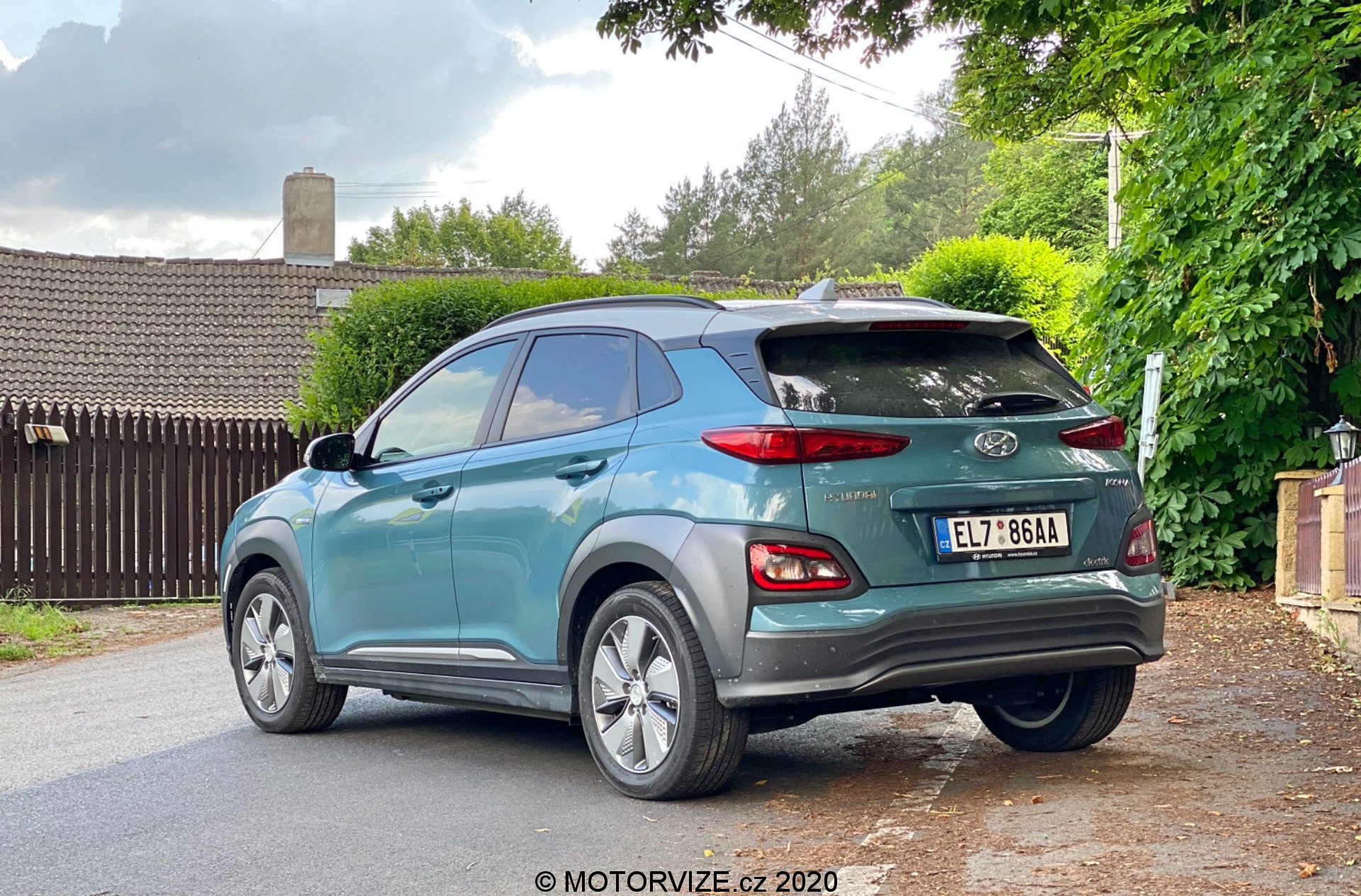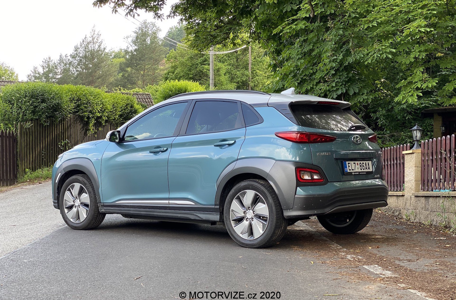 Boční pohled žádné velké překvapení neznamená – Kona tak, jak už ji dobře známe. Na druhou stranu díky odvážné barevné kombinaci exteriéru a doplňků (viz. galerie) vzniká pár zajímavých detailů. Především C-sloupek je ostře tvarovaný a velmi výrazný. Dále při bočním pohledu zaujme právě kombinace barev Ceramic Blue (dle barvoslepého oka motoristického redaktora spíše zelená / tyrkysová), bílé střechy a „anthracitových“ doplňků, jednoduše řečeno i v mých očích funguje. Proporčně je auto i díky větším kolům vyvážené a není důvod cokoliv kritizovat. Zadní část na mě působí nejslabším dojmem a příliš „nezaujala“. Na vzhled vozu si ostatně můžete udělat svůj názor poměrně snadno.