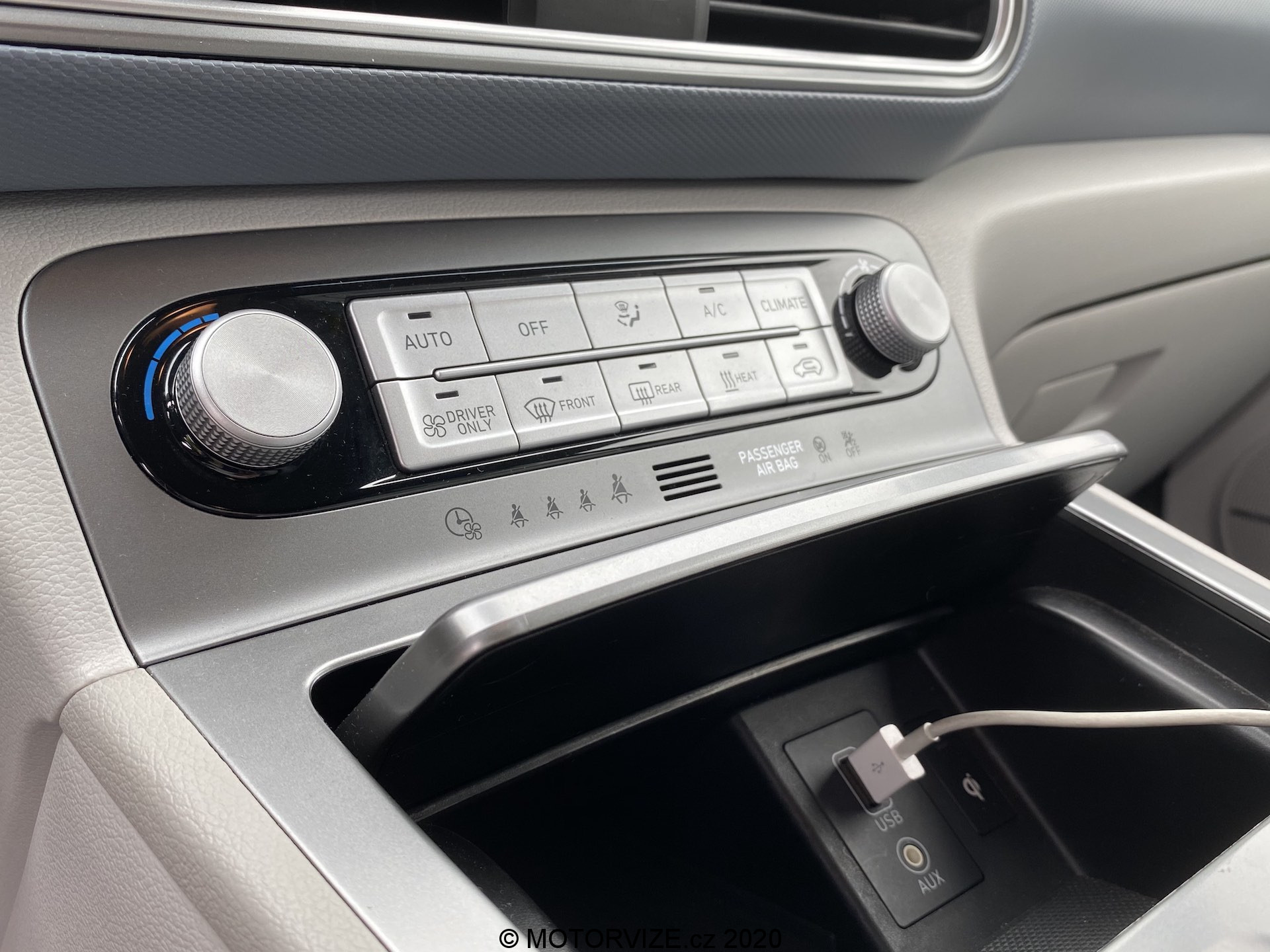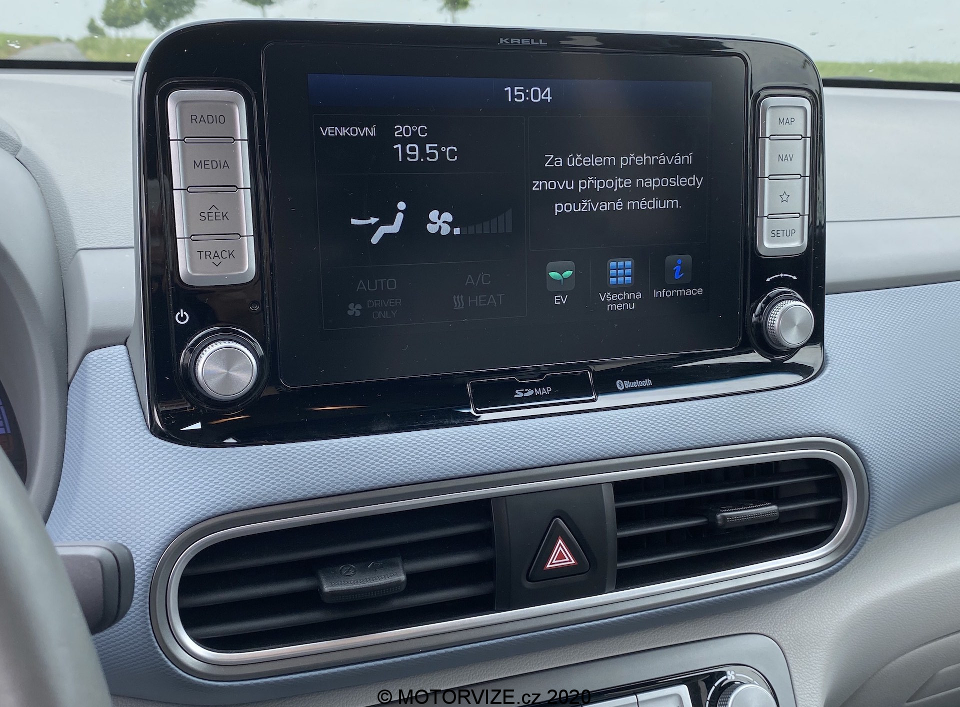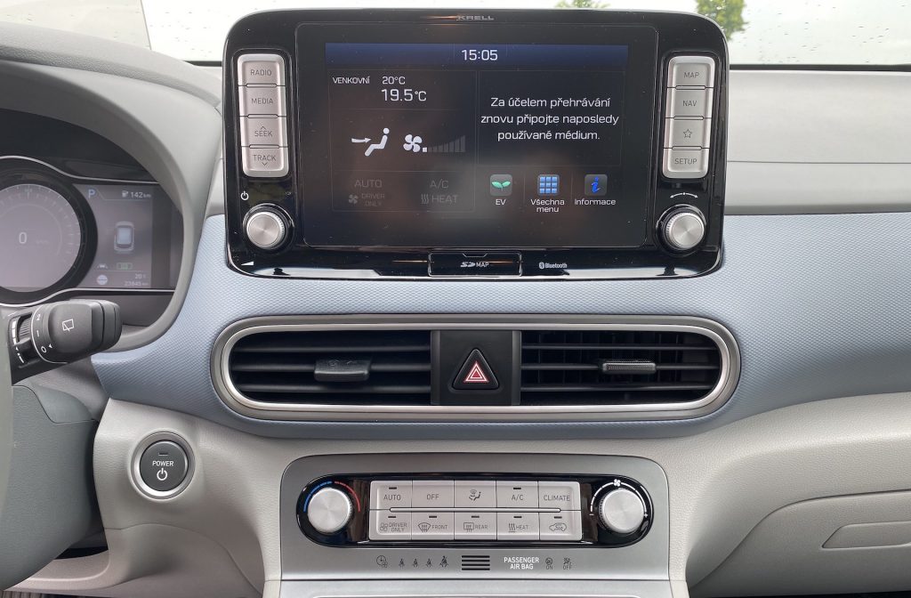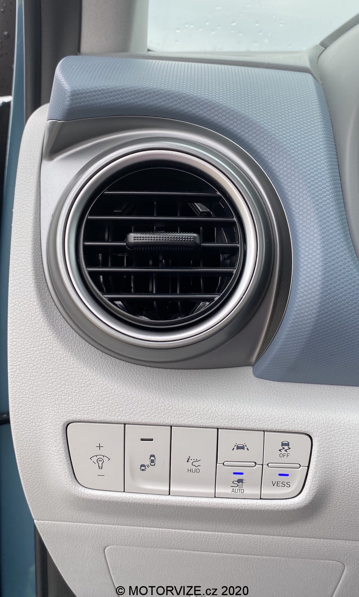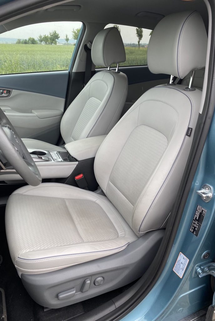 Vybavení KONY možná mnoho zájemců příjemně překvapí. Proběhnu to v rychlosti a poté se vrátím k tomu, co mne nejvíc zaujalo. Klimatizace – samozřejmě ano, dvouzónová, vyhřívané a odvětrávané přední sedačky, adaptivní tempomat – který umí zastavit a znovu ho spustíte buď ťuknutím do pedálu plynu a nebo tlačítkem na volantu, multimediální systém s veškerou konektivitou a soundsystémem Krell s poměrně výraznou basovou linkou, kaplička přístrojů – samozřejmě digitální a v neposlední řadě čtyři jízdní režimy. Uff, a to ještě výčet určitě není kompletní. Jednoduše vzato, je zde vše, co se dnes dá považovat za možné. Kona se také umí drží automaticky v pruhu a je schopná relativně „autonomního“ pohybu v běžném provozu. To všechno považuji za hezké, ale teď přichází jedno velké ALE. A tím je především původ ve standartní Koně. Oni totiž ceny konvenční Kony startují na 369.000 Kč. Tomu samozřejmě mnoho věcí (materiálů) odpovídá a to znamená velké „bohužel“ pro verzi Electric s cenou atakující 1,3 mil Kč. Výplně dveří jsou tvrdé jako kámen, středový panel taktéž, tlačítka ovládání „převodovky“, jízdních režimů atd. mají sice měkký chod, ale rozměr a tvar jak z Dacie Logan. Celkově jediné, co na interiéru působí pěkně, jsou jeho barvy, zbytek zpracování by pro mě osobně byl STOPKOU v uvažování o koupi takového auta. Chápu, že je na baterky, že je to in a eco a nevím co všechno, ale za takovou pořizovací cenu bych přeci neměl sedět v něčem, co odpovídá právě uvedeným cca 400 tis. Kč, ne děkuji. Pokud bych měl být v závěru povídání o interiéru pozitivní, zmíním alespoň příjemná sedadla. Kromě již zmíněného odvětrávání očím lahodí i jejich světlá kůže, která sice k Mercedesu třídy S má daleko, i tak ale spíše potěší.