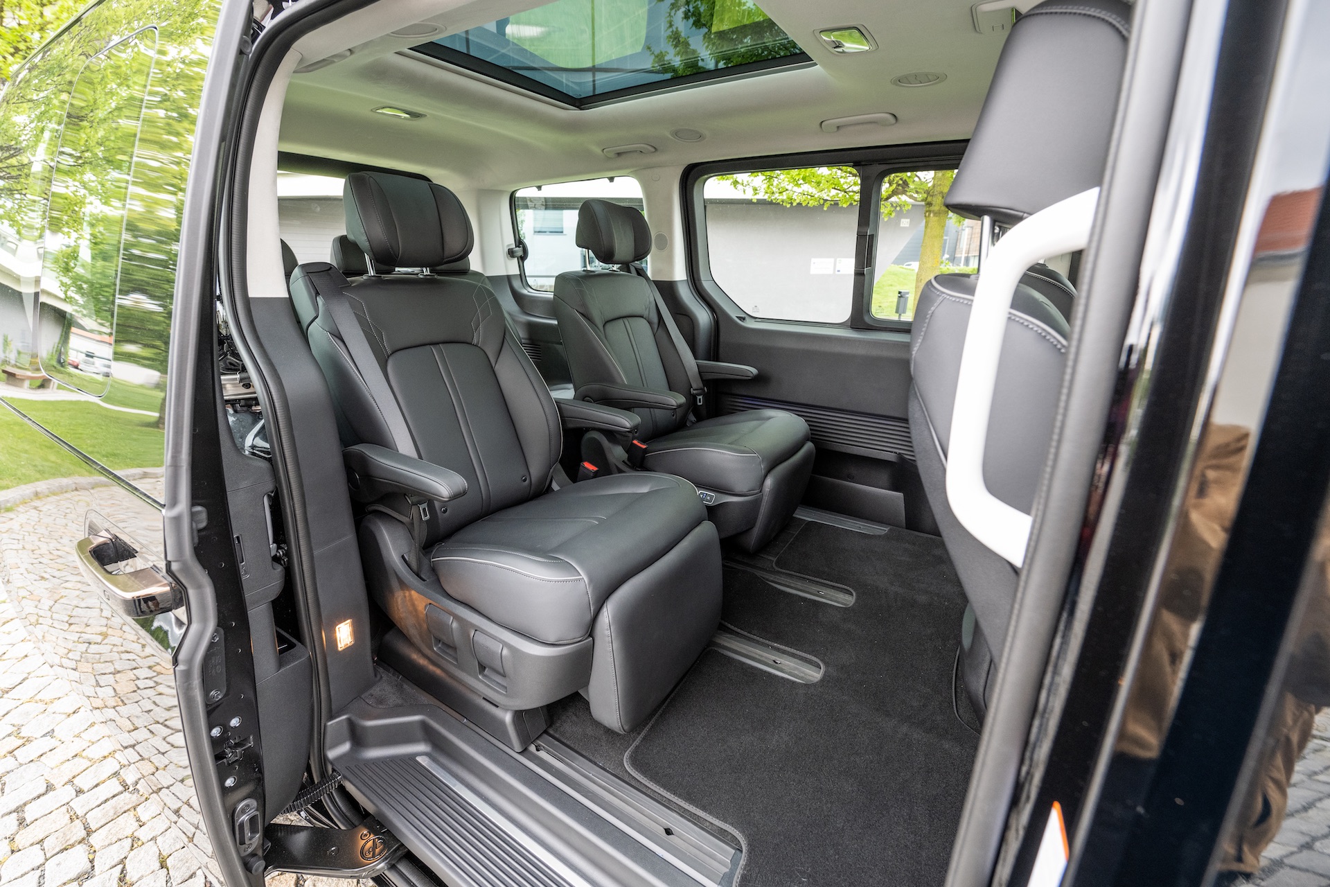 Míra komfortu bude odpovídat potřebám a požadavkům zákazníků. Představený model byl tzv. „v plné polní“ a tady si není na co stěžovat. Centrální infotainment odpovídá současné nabídce korejského výrobce a nabízí pěknou grafiku, rychlou odezvu a intuitivní ovládání. Komu by to nestačilo, má k dispozici Apple CarPlay nebo Android Auto. Kaplička přístrojů je plně digitální, dobře přehledná a nabídne i různé možnosti zobrazení podle jízdního nastavení. Ovládací prvky jsou po ruce, prostoru je zde doslova nadbytek. To pravé ale přichází spíš v zadní části vozu. Především prostřední dvě křesla pocházejí z vlajkové lodi Hyundai Ioniq 5. Jsou to tedy široce nastavitelná, polohovatelná relaxační sedadla. Tyhle sedačky bych rozhodně chtěl, ale ve skrytu duše bych pasažérům vzadu to pohodlí trochu záviděl. Více se budeme všem možnostem věnovat v plnohodnotném testu. Už teď je ale jasné, že se máme na co těšit.